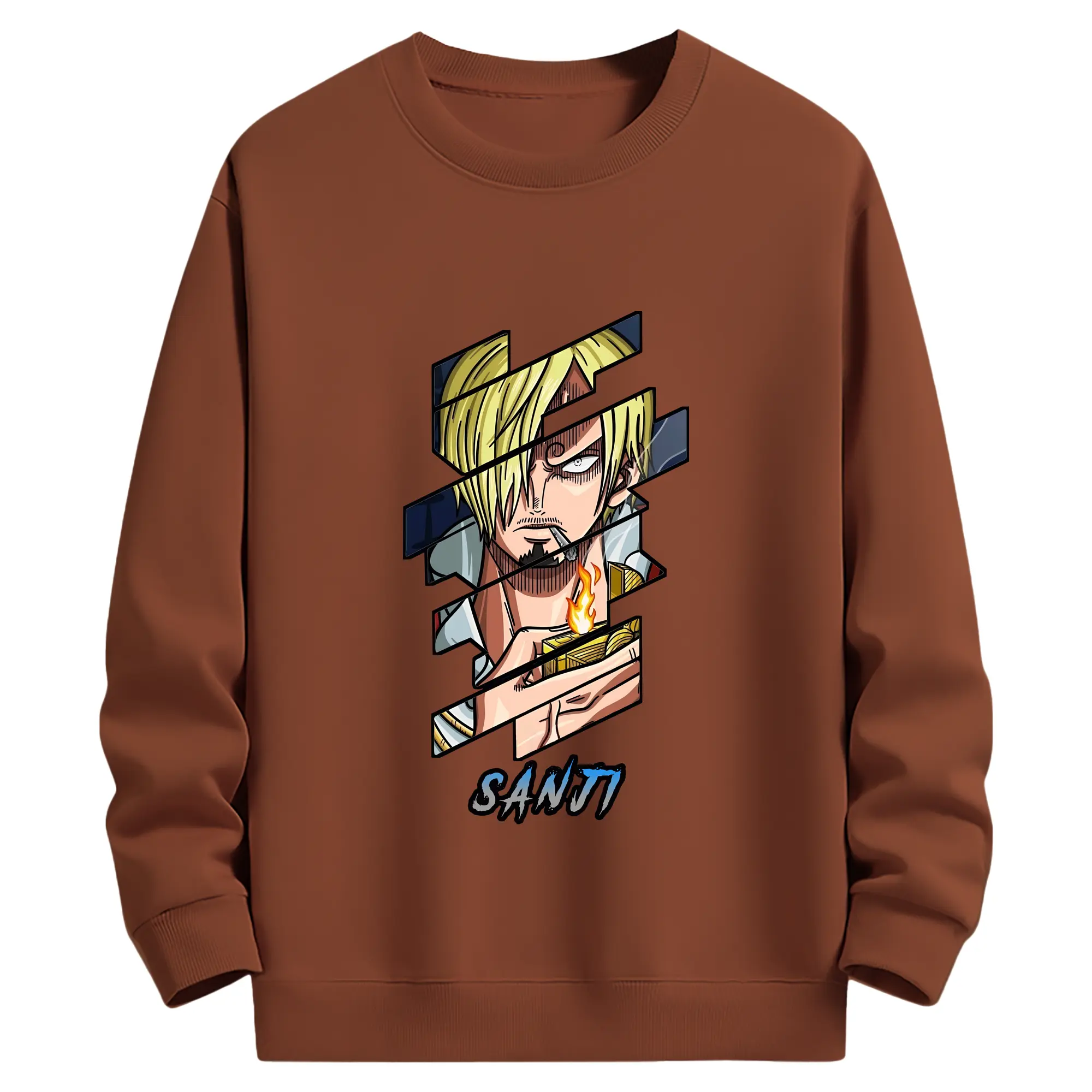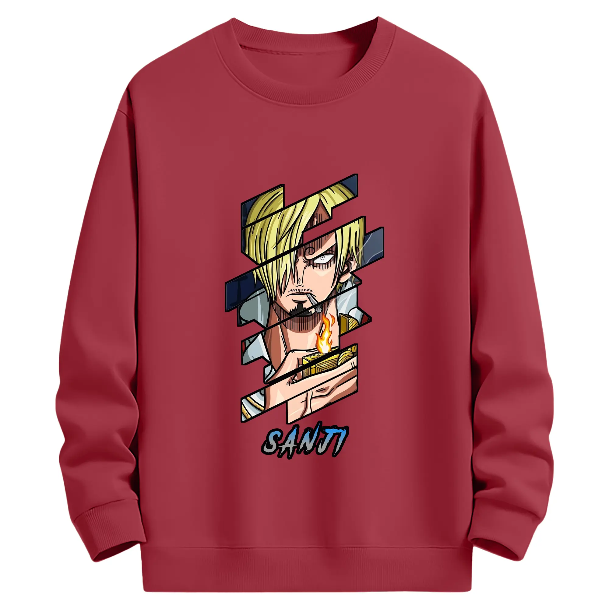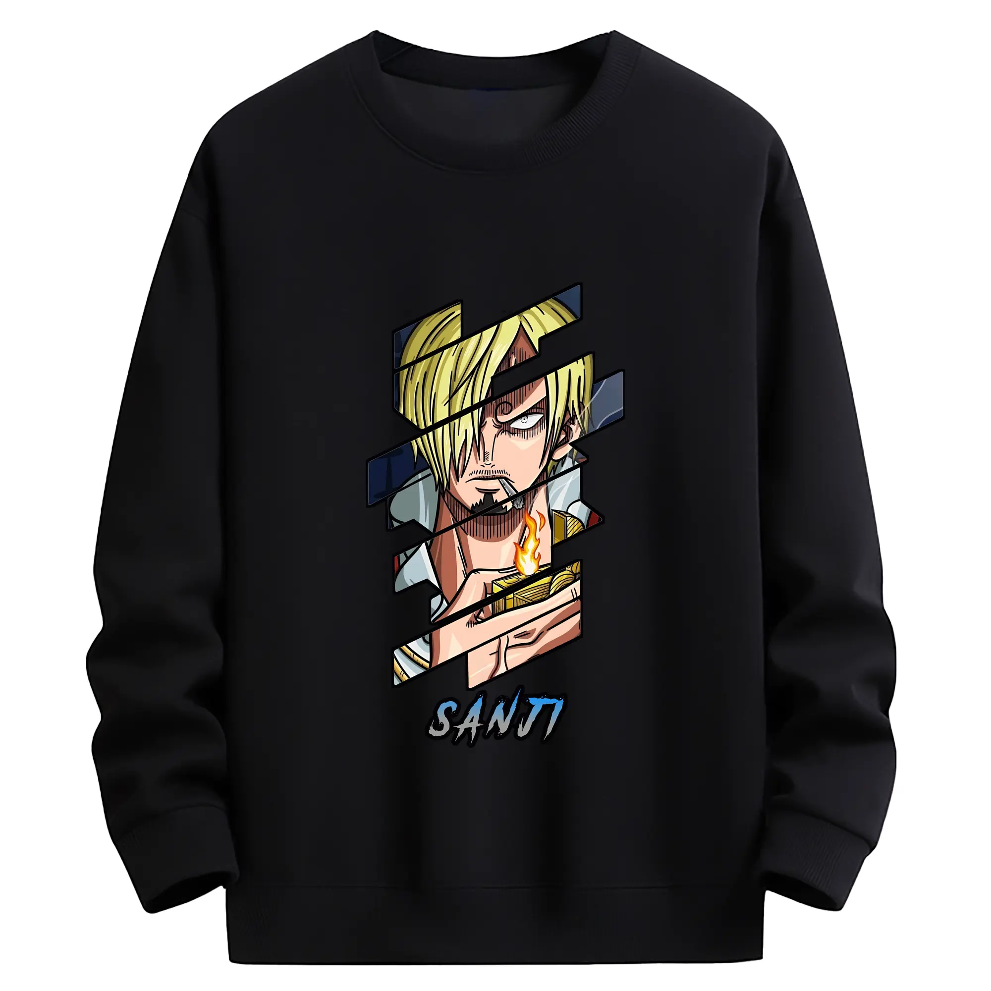 ワンピース グッズ ヴィンスモーク・サンジ - 薄手 クルーネック スウェット 裏毛260g · ポリエステル 春秋向け カジュアル 男女兼用 · トレーナー デイリー スポーツ 散歩に最適