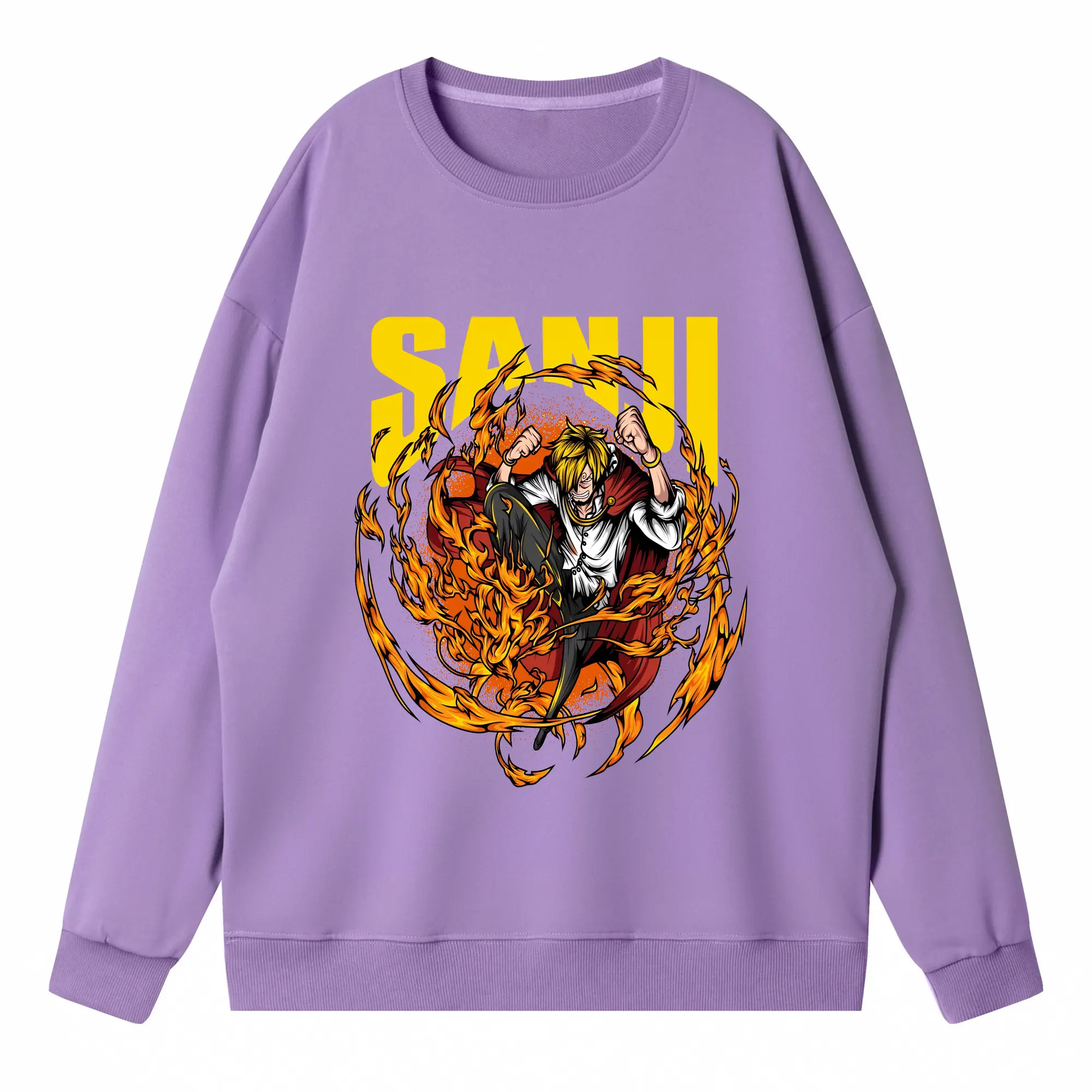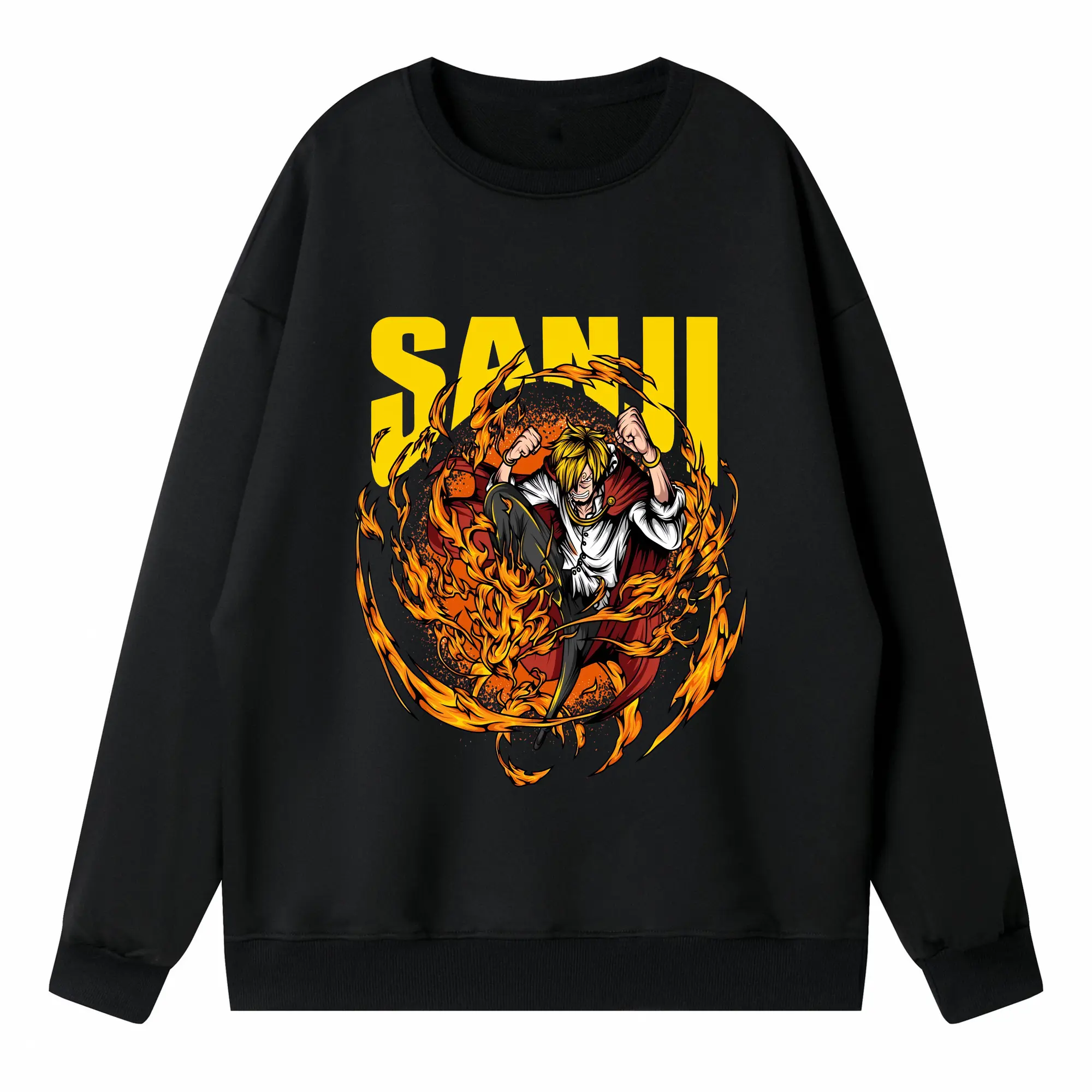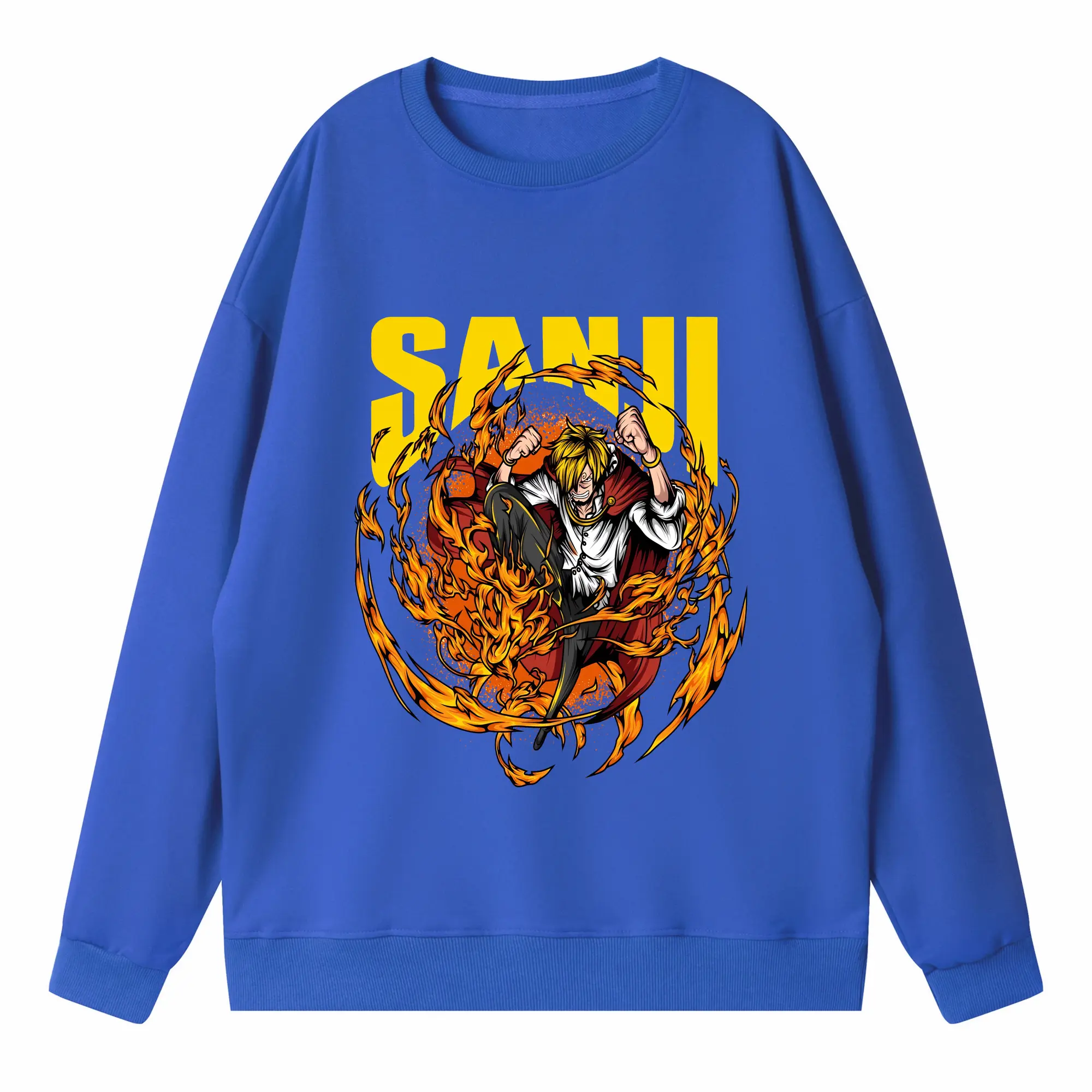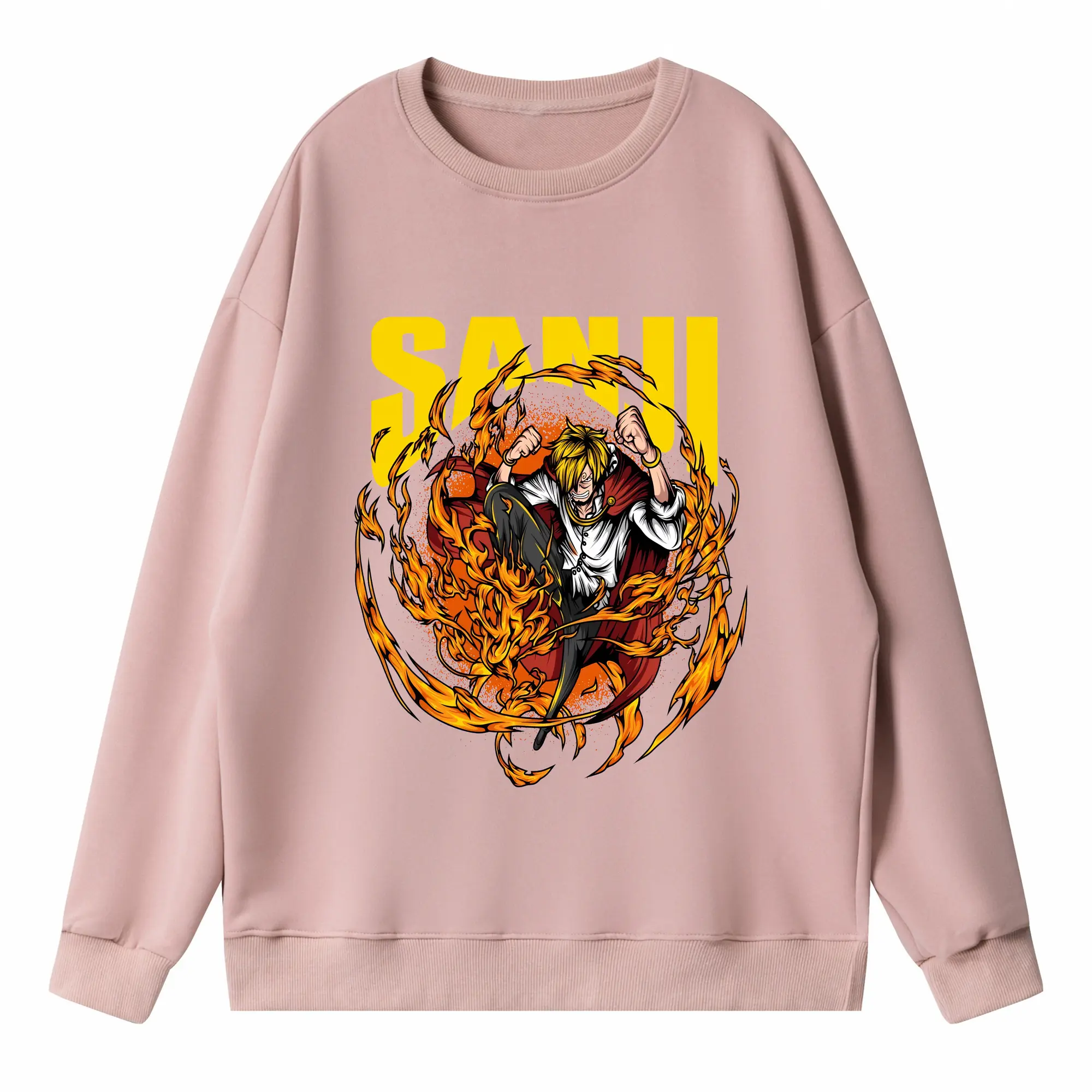 ワンピース グッズ ヴィンスモーク・サンジ - 高品質 クルーネック スウェット ・ コットン59% ポリエステル41% ・ ユニセックス 長袖 トレーナー ・ カジュアル デイリー スポーツ 散歩用