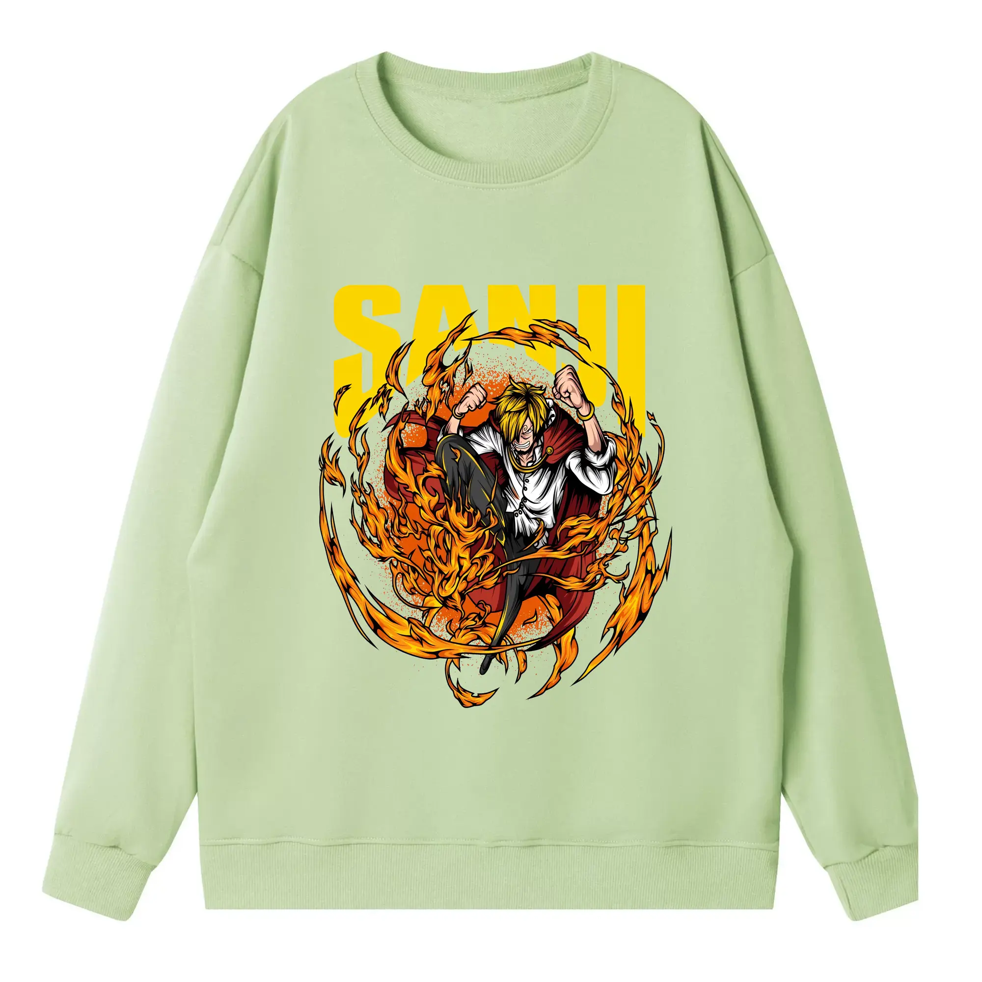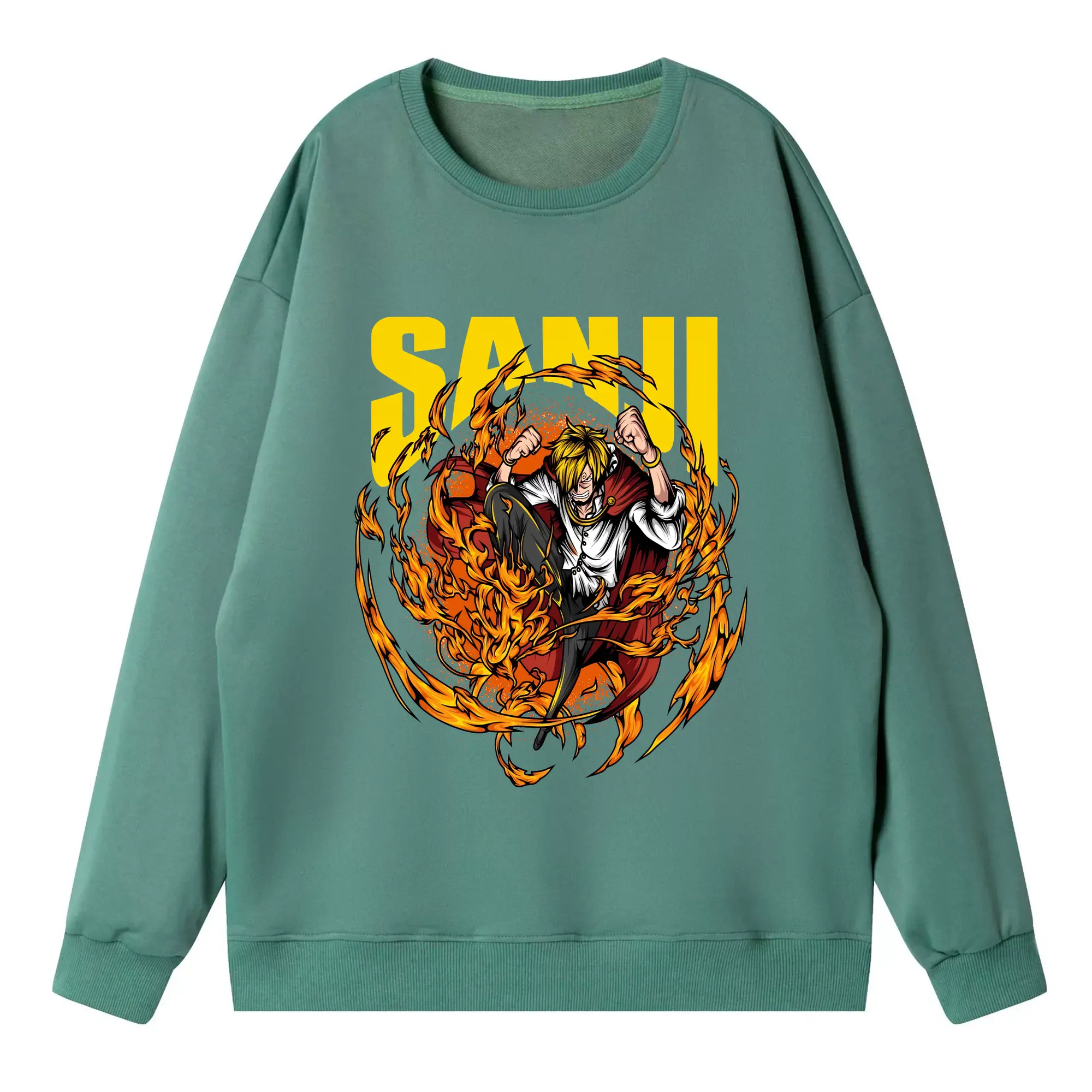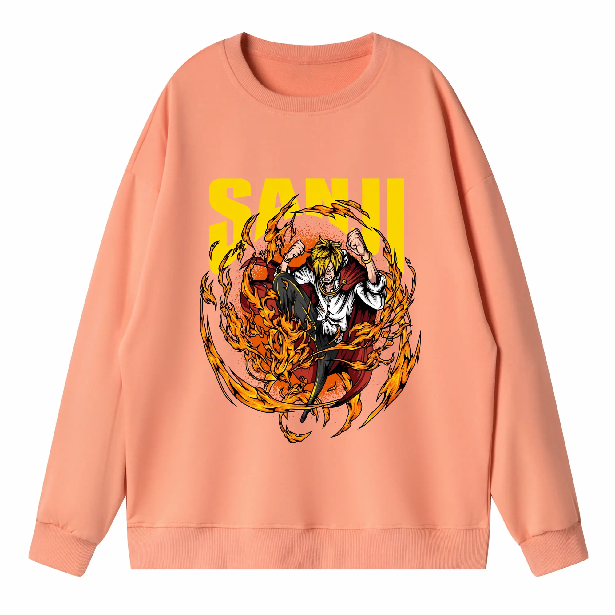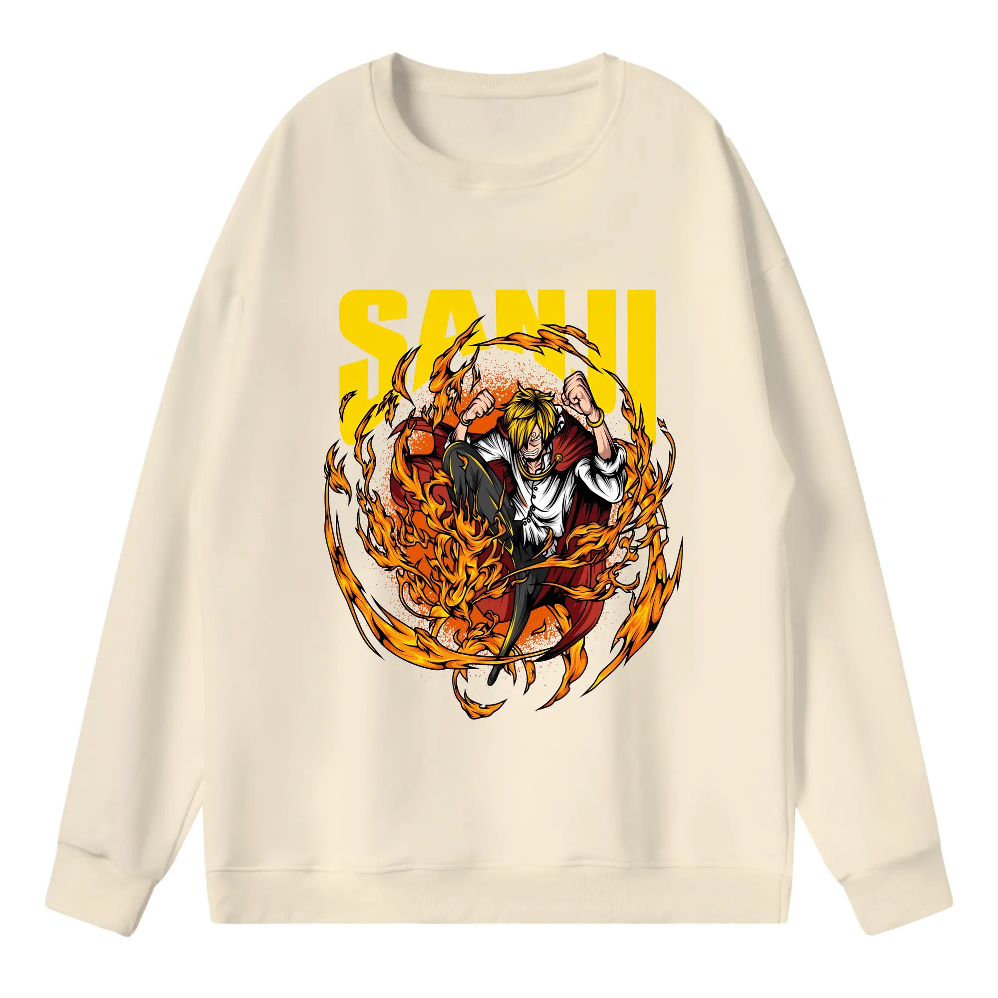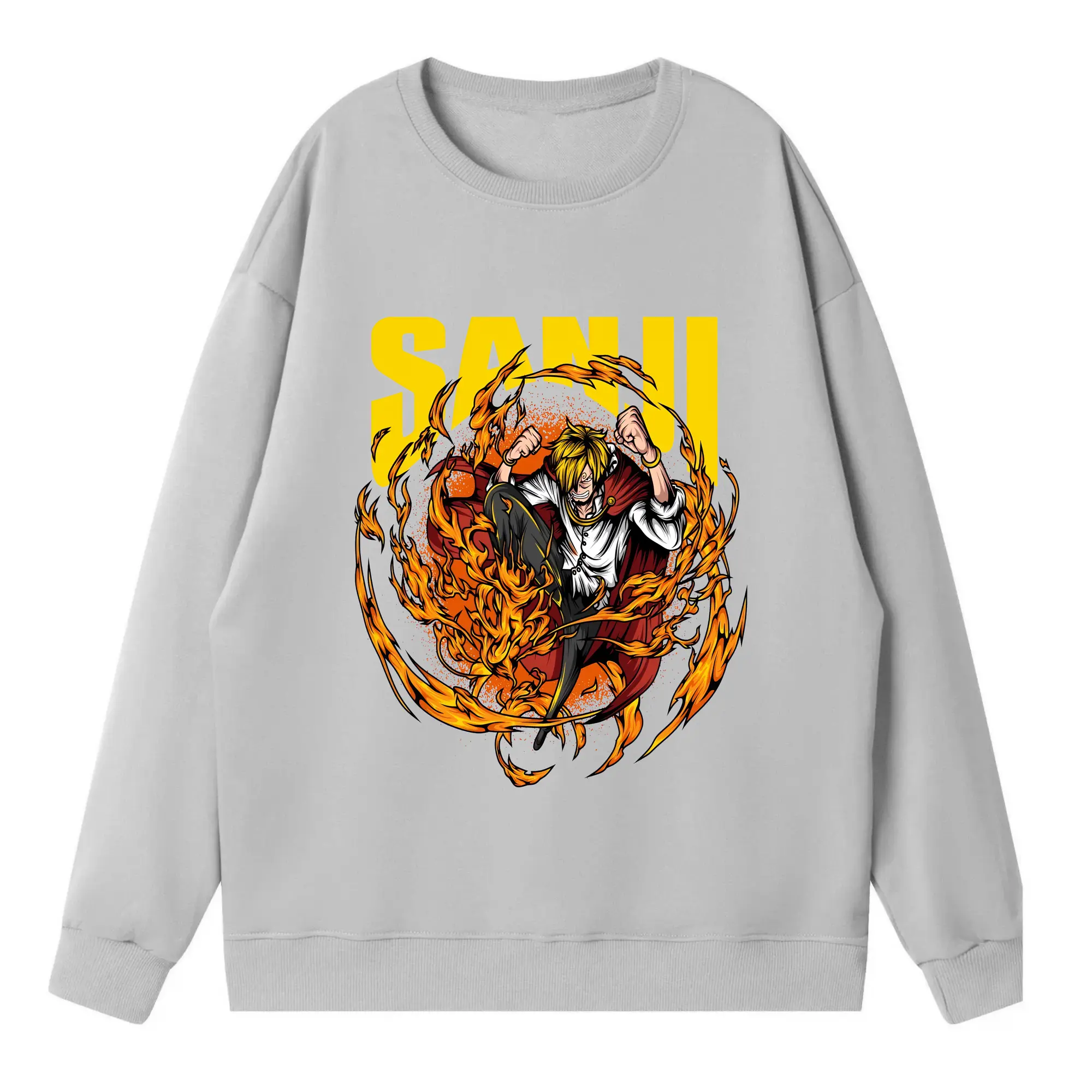 ワンピース グッズ ヴィンスモーク・サンジ - 高品質 クルーネック スウェット ・ コットン59% ポリエステル41% ・ ユニセックス 長袖 トレーナー ・ カジュアル デイリー スポーツ 散歩用