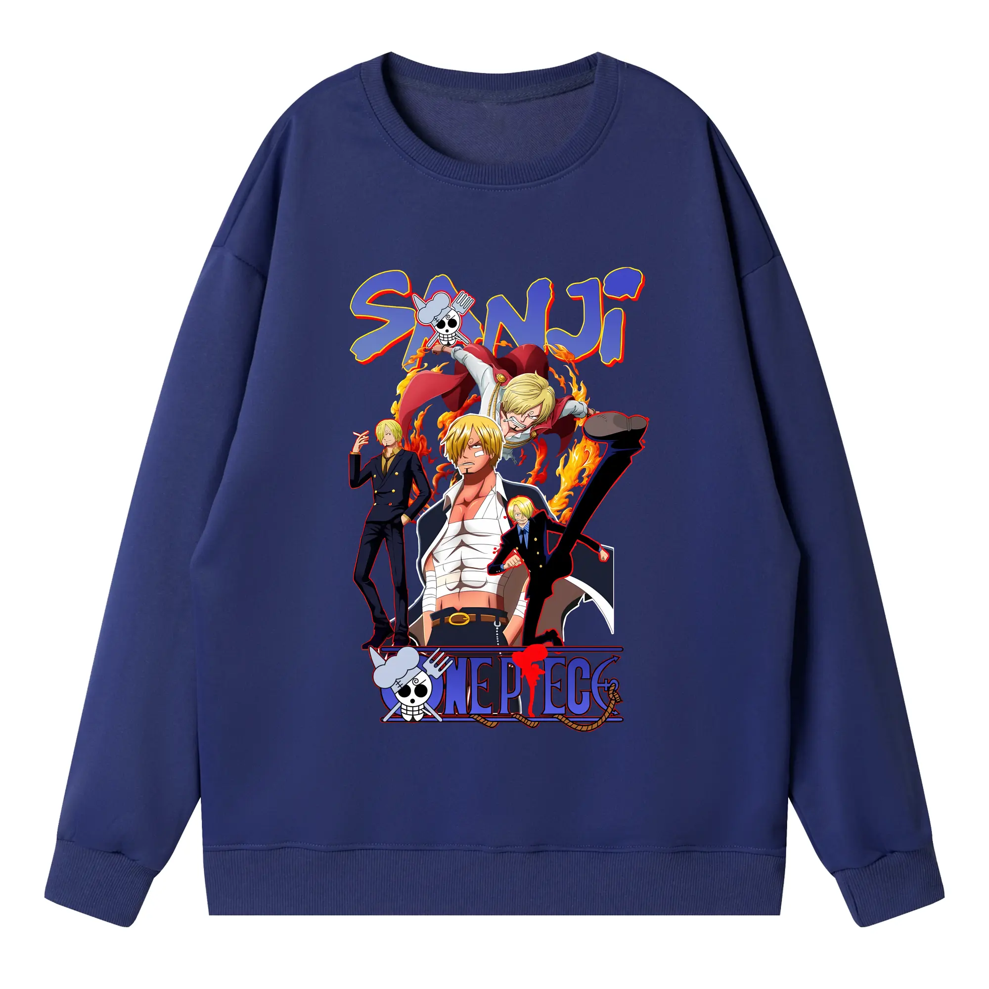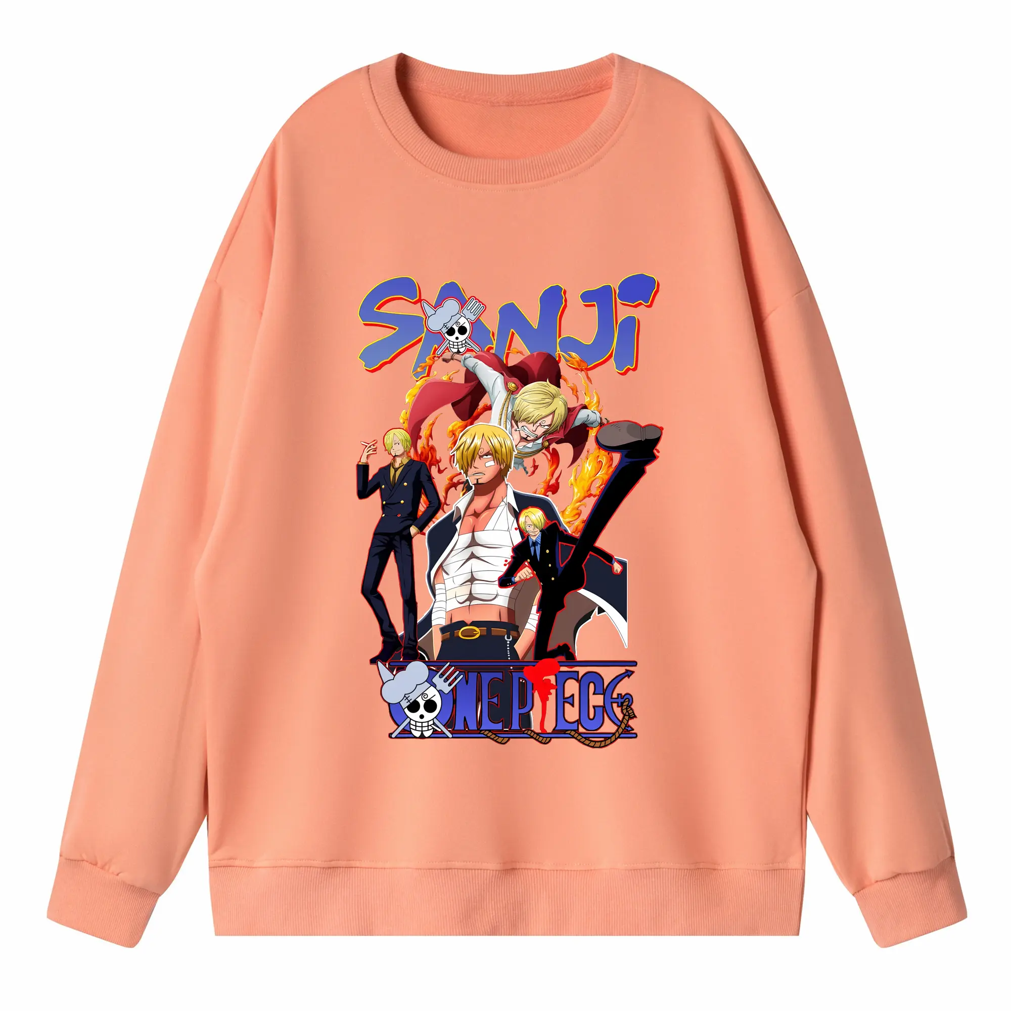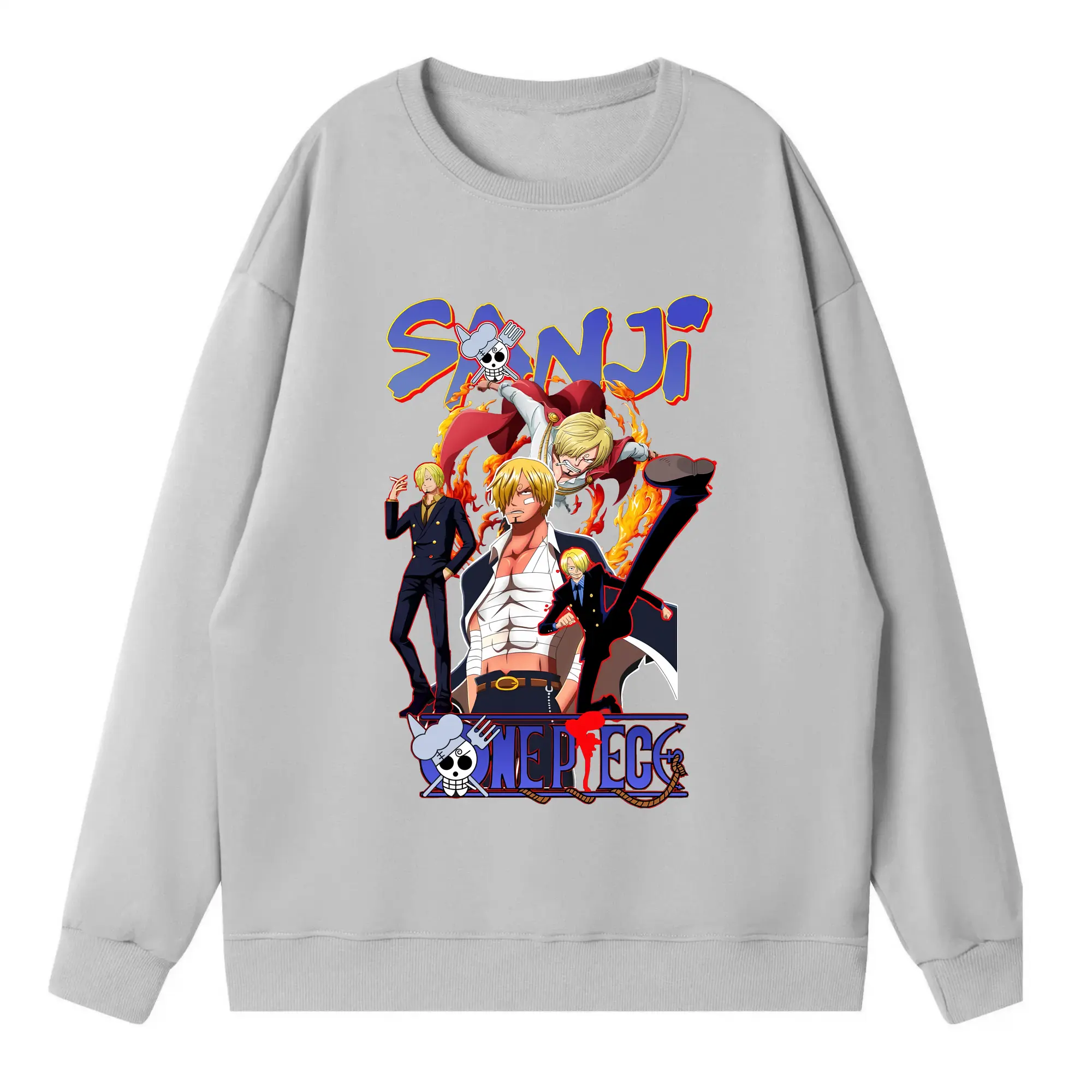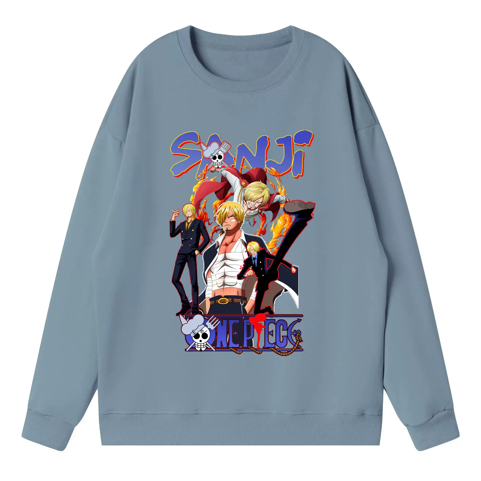 ワンピース グッズ ヴィンスモーク・サンジ - 高品質 クルーネック スウェット ・ コットン59% ポリエステル41% ・ ユニセックス 長袖 トレーナー ・ カジュアル デイリー スポーツ 散歩用