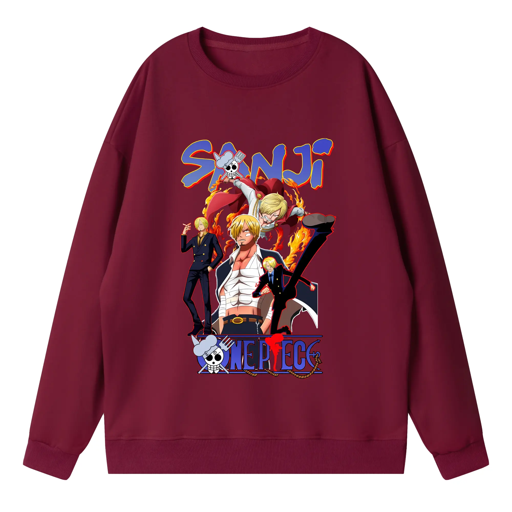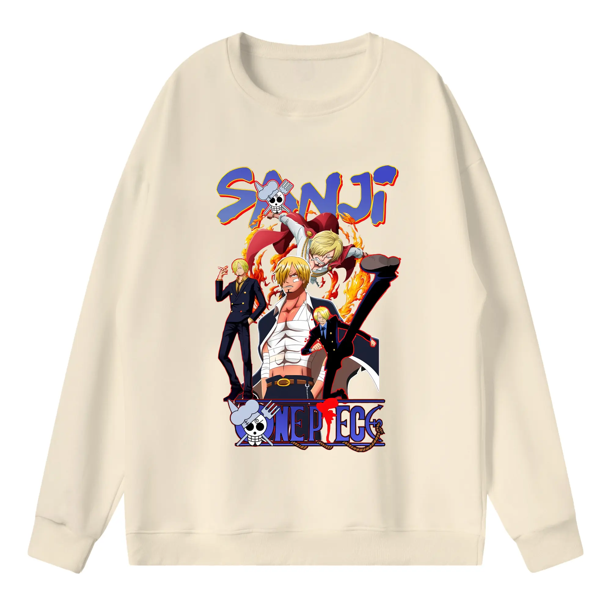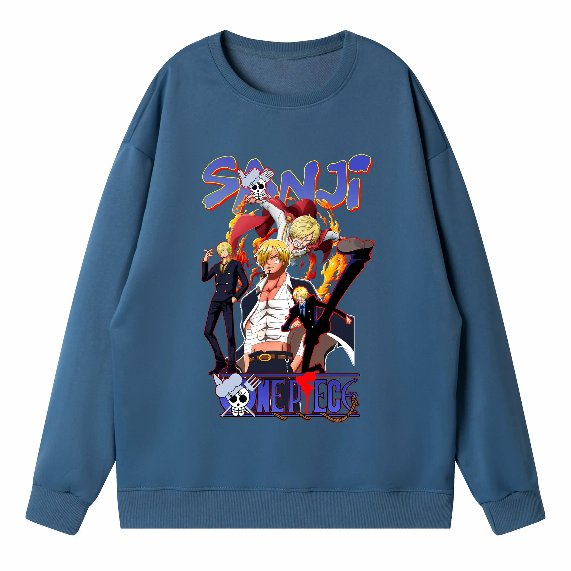 ワンピース グッズ ヴィンスモーク・サンジ - 高品質 クルーネック スウェット ・ コットン59% ポリエステル41% ・ ユニセックス 長袖 トレーナー ・ カジュアル デイリー スポーツ 散歩用