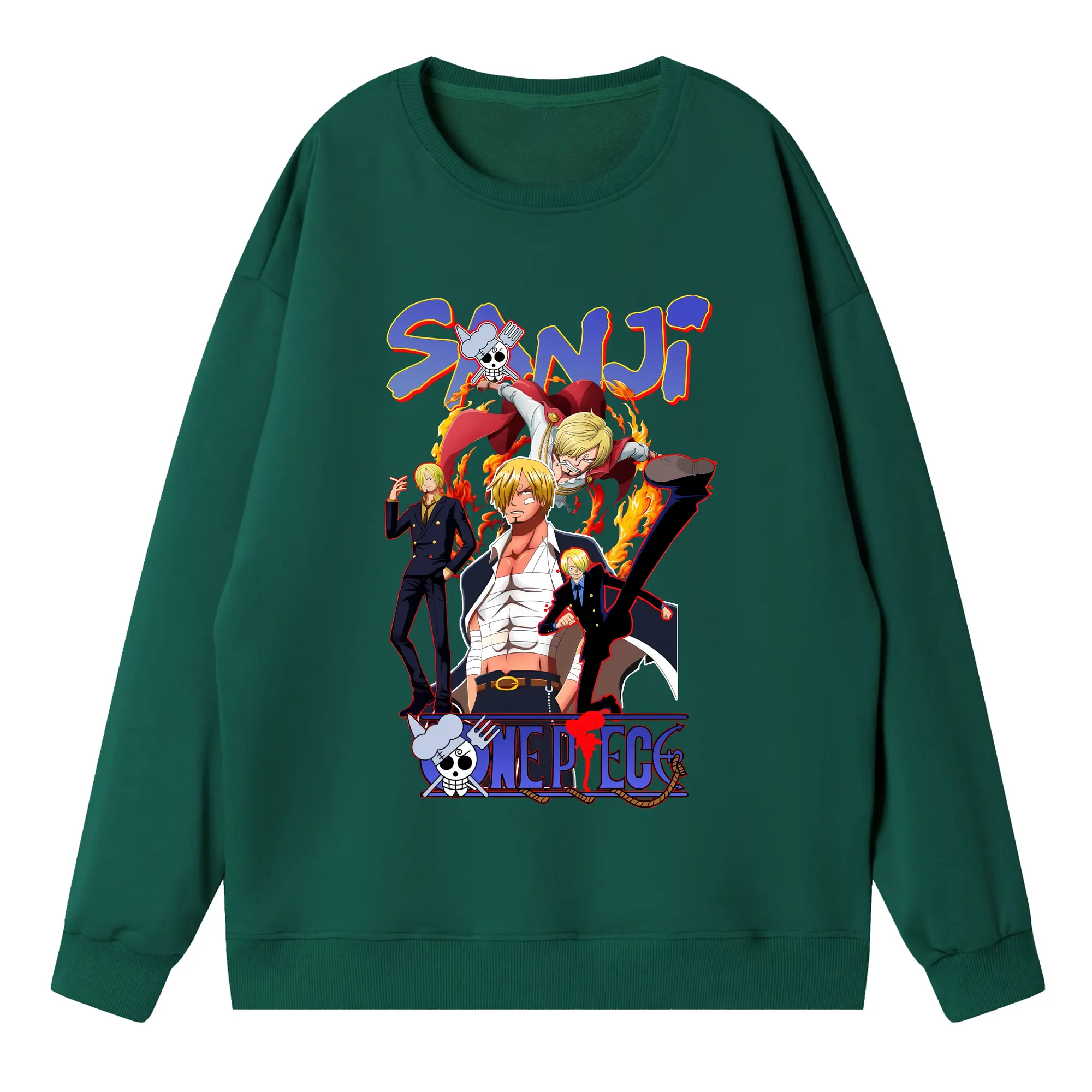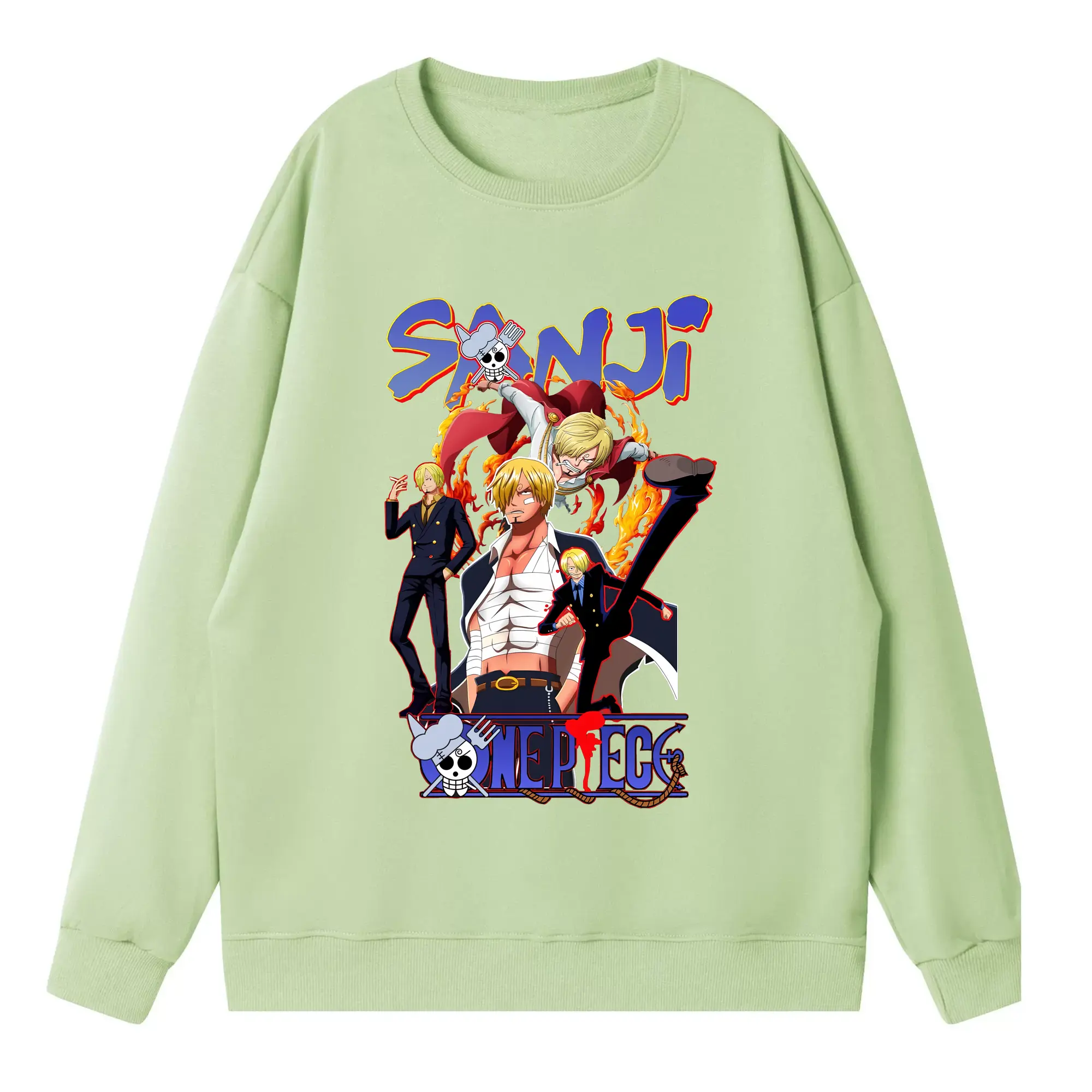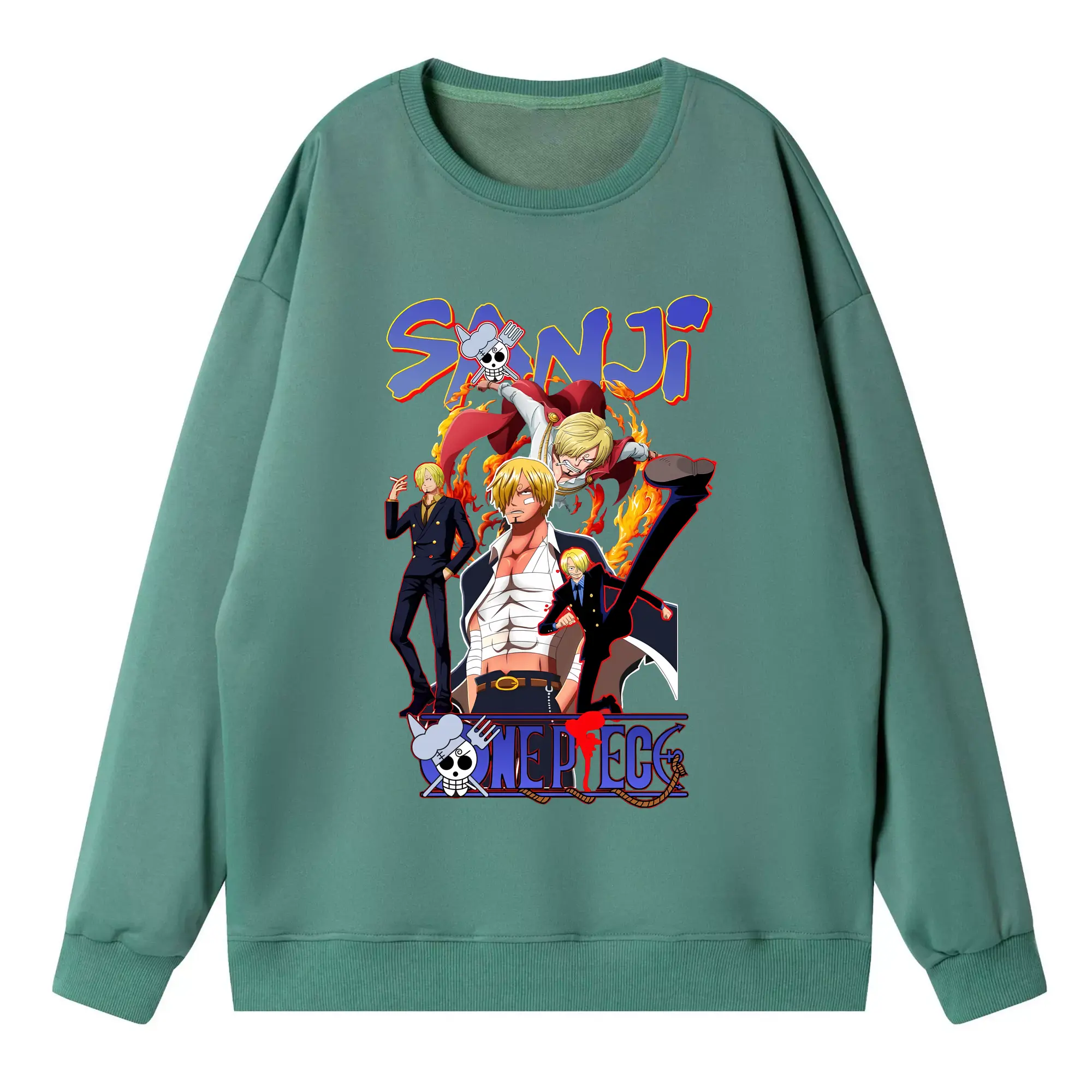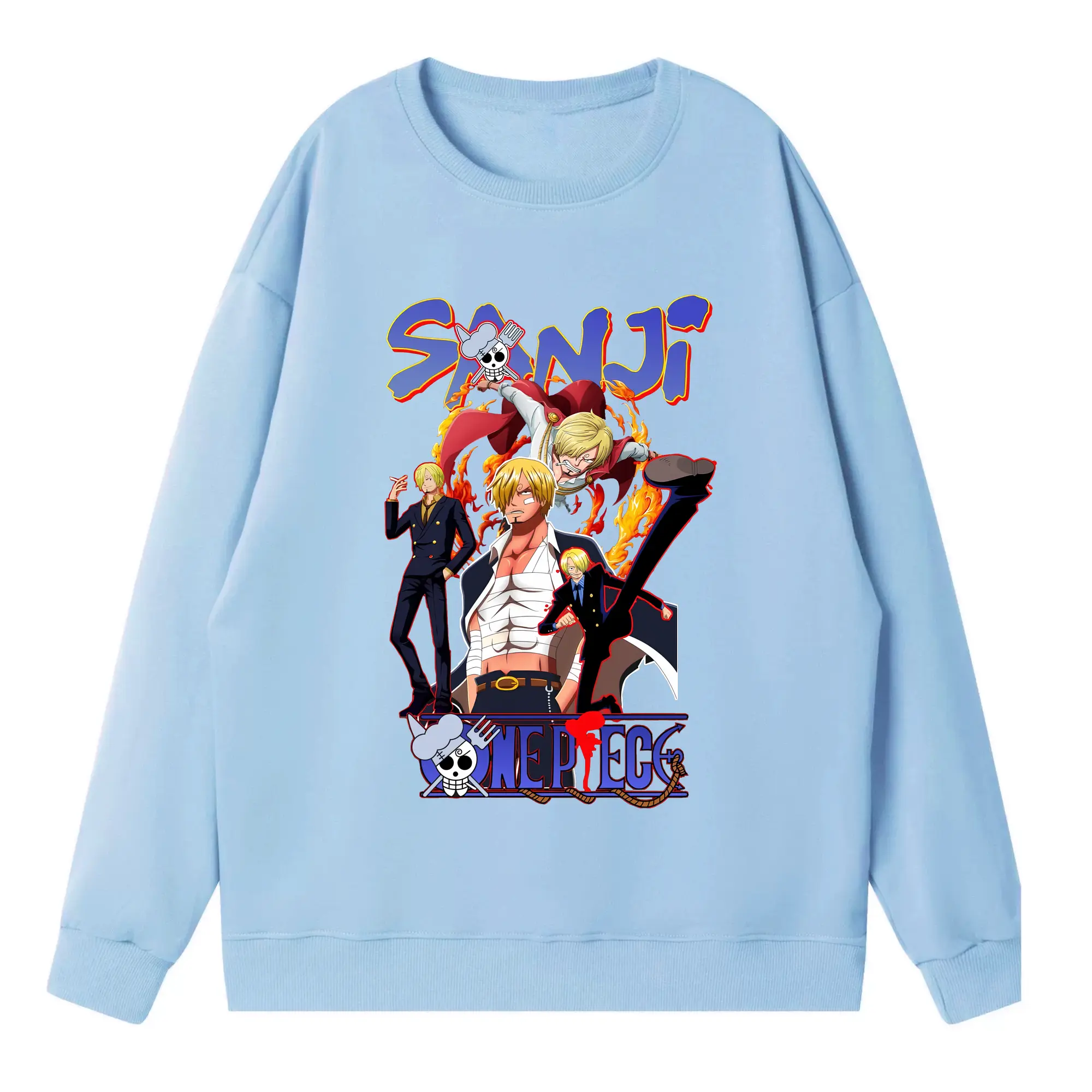 ワンピース グッズ ヴィンスモーク・サンジ - 高品質 クルーネック スウェット ・ コットン59% ポリエステル41% ・ ユニセックス 長袖 トレーナー ・ カジュアル デイリー スポーツ 散歩用