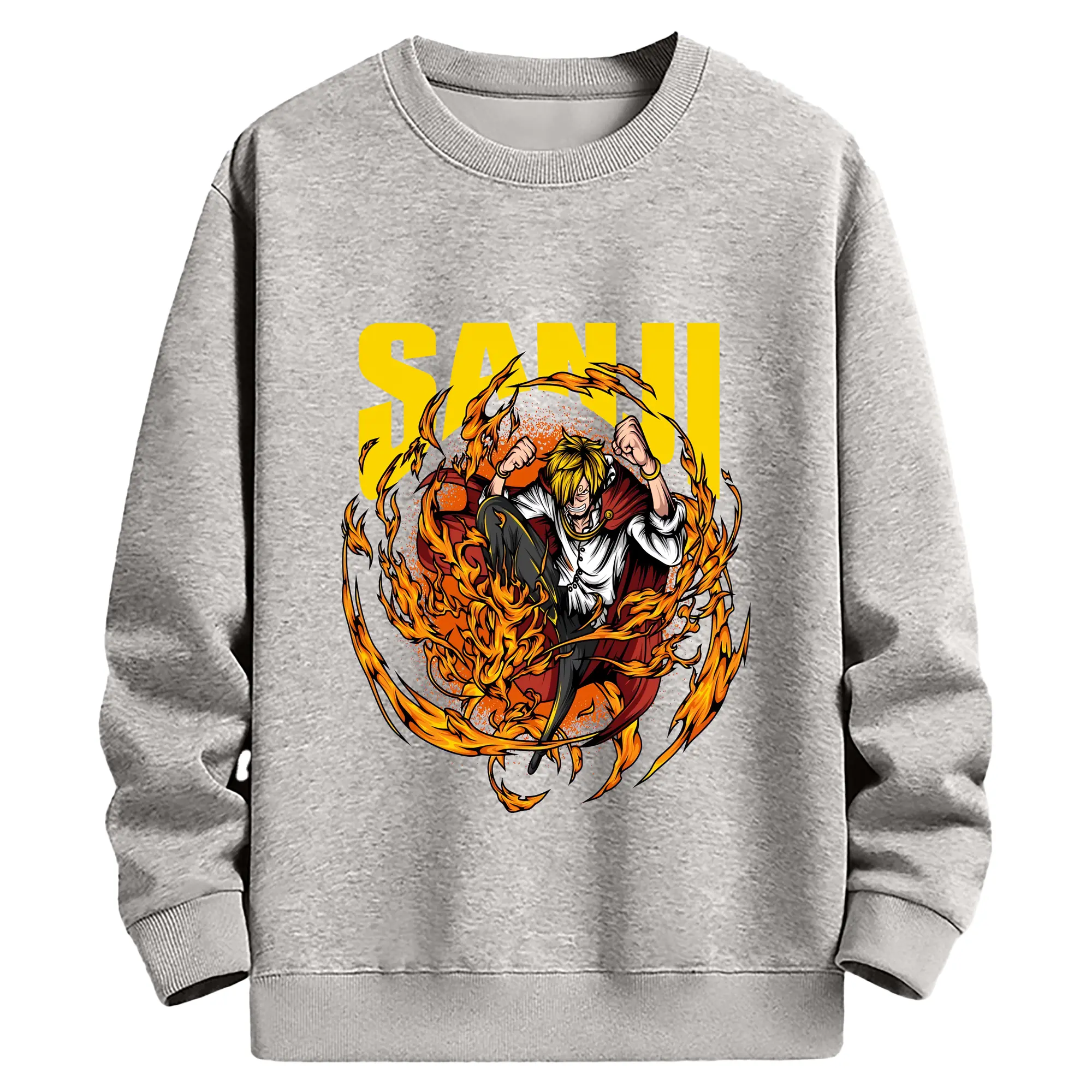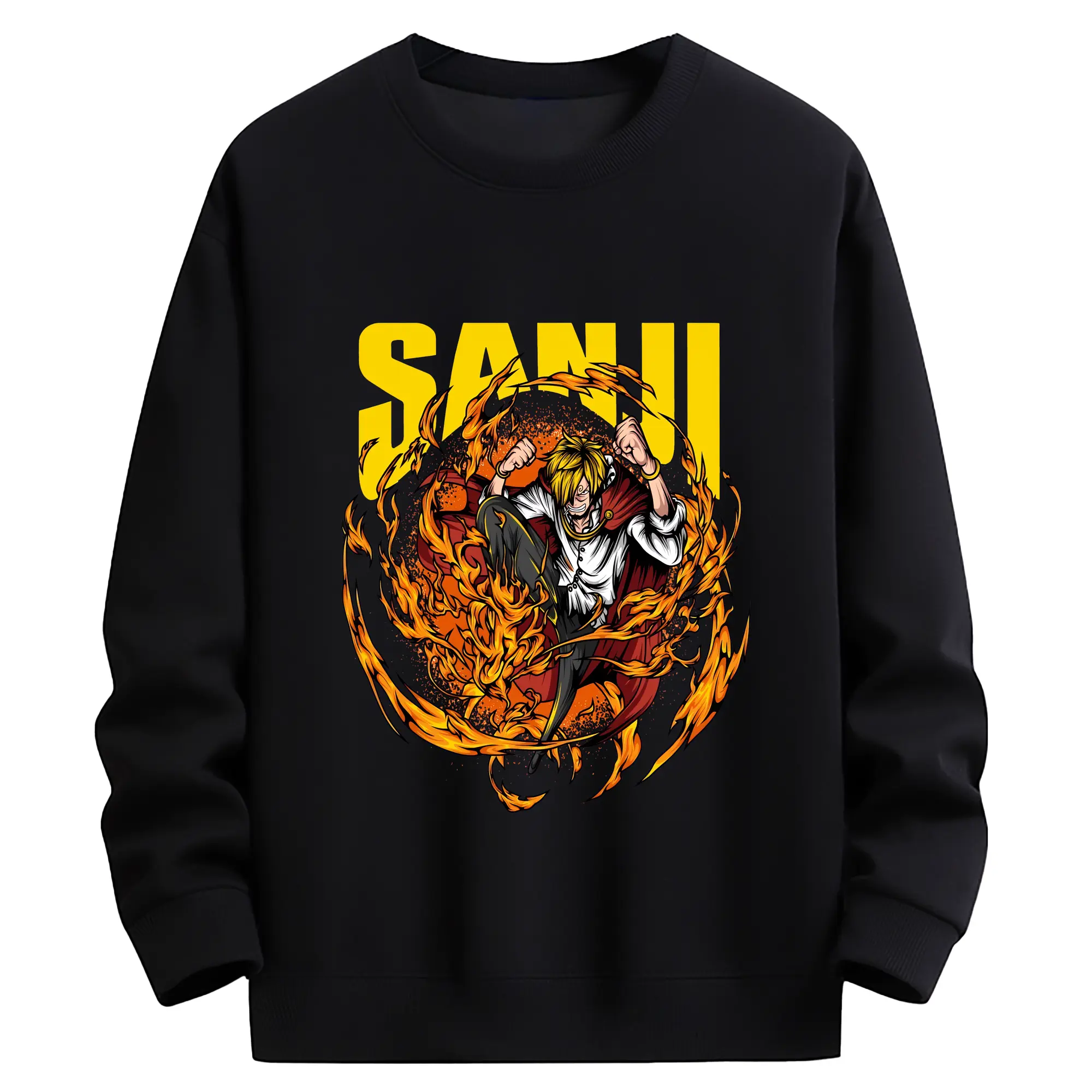 ワンピース グッズ ヴィンスモーク・サンジ - 高品質 クルーネック スウェット ・ コットン59% ポリエステル41% ・ ユニセックス 長袖 トレーナー ・ カジュアル デイリー スポーツ 散歩用