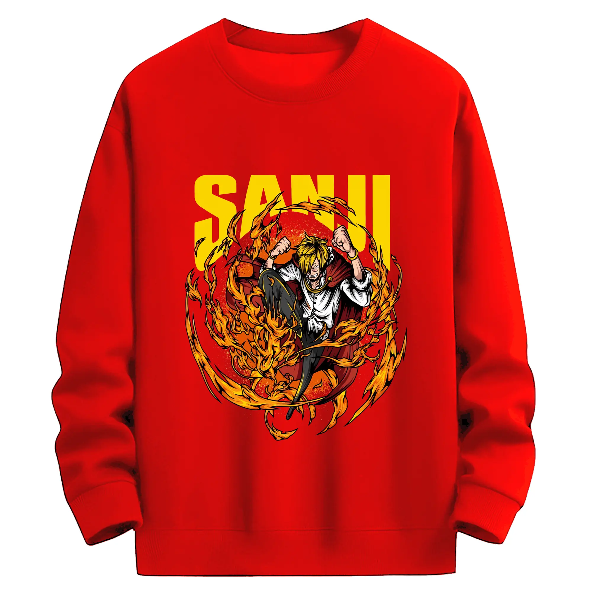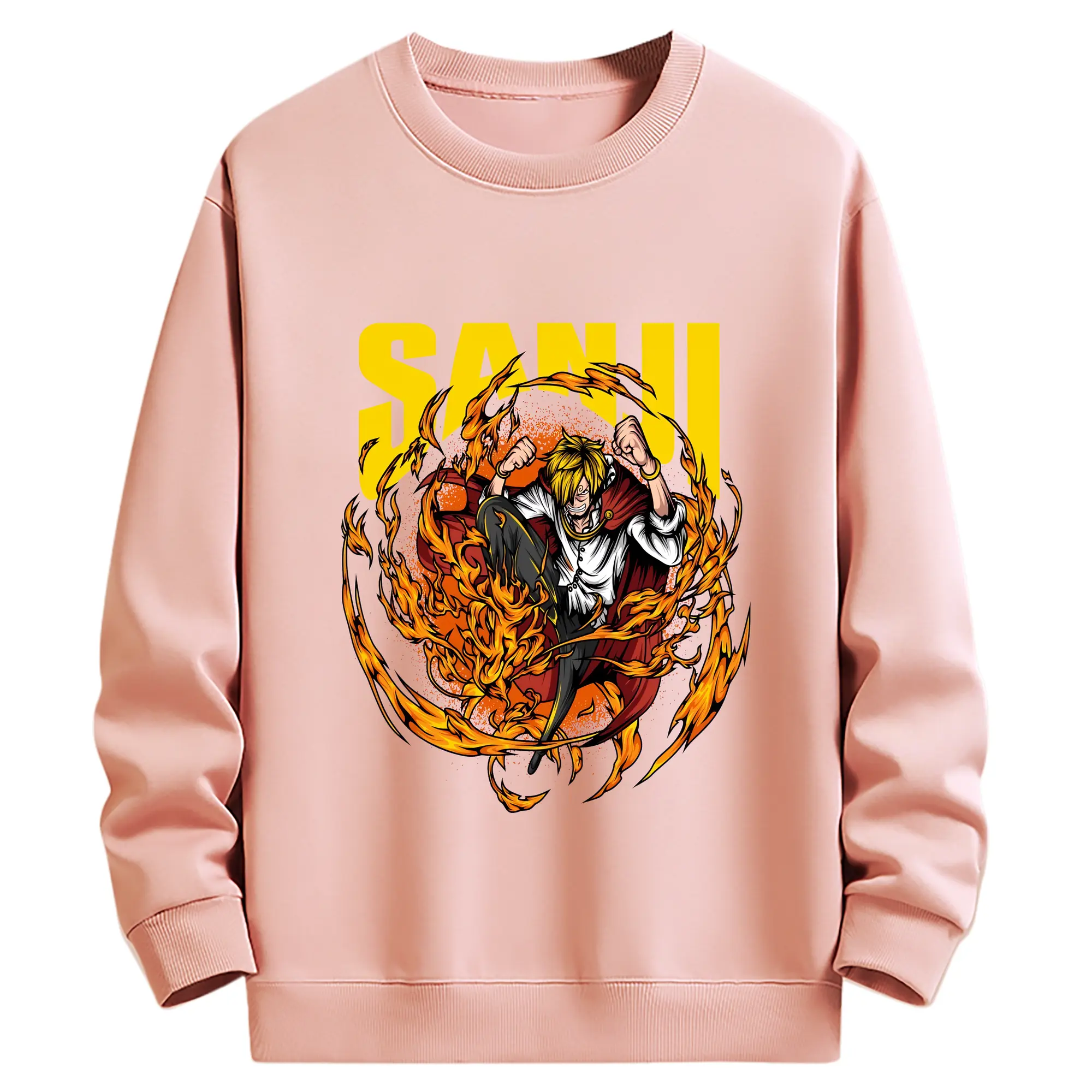 ワンピース グッズ ヴィンスモーク・サンジ - 薄手 クルーネック スウェット 裏毛260g · ポリエステル 春秋向け カジュアル 男女兼用 · トレーナー デイリー スポーツ 散歩に最適