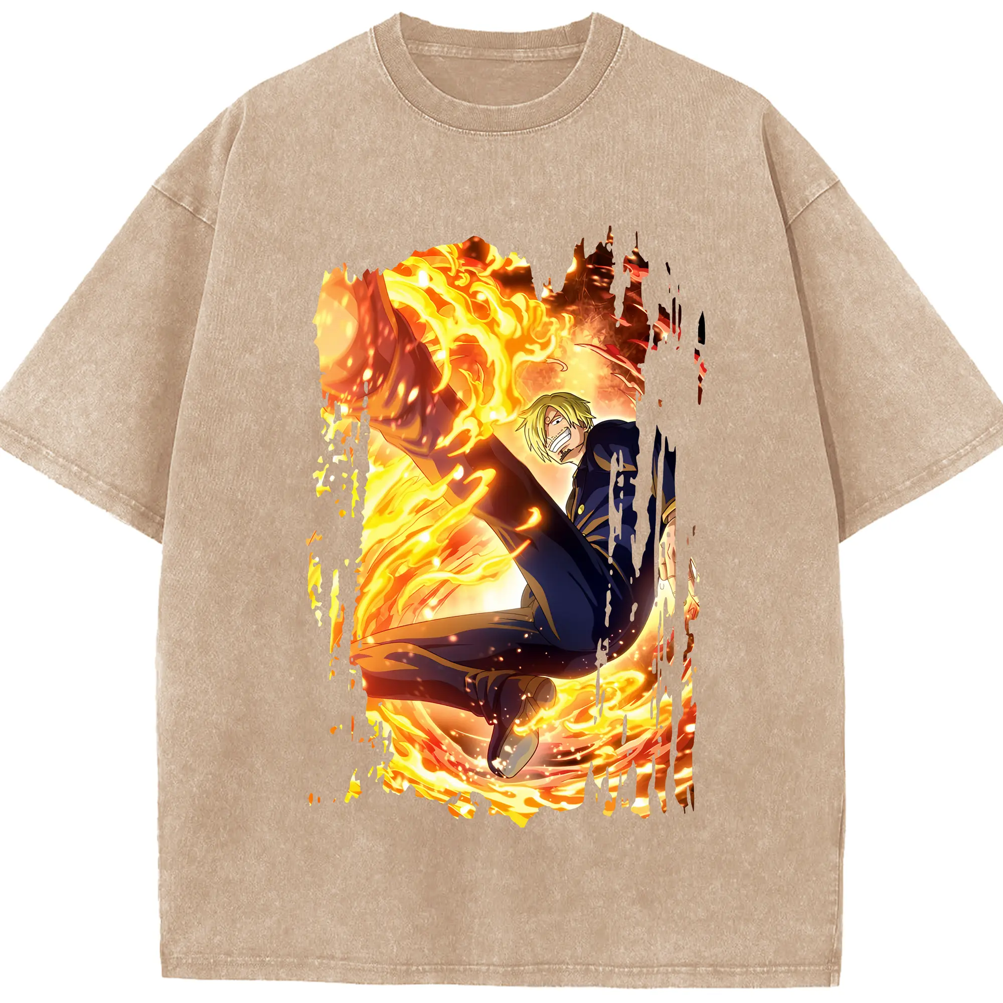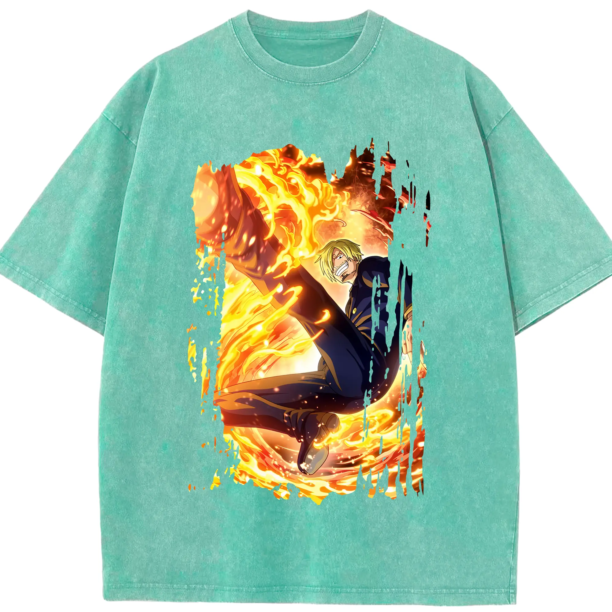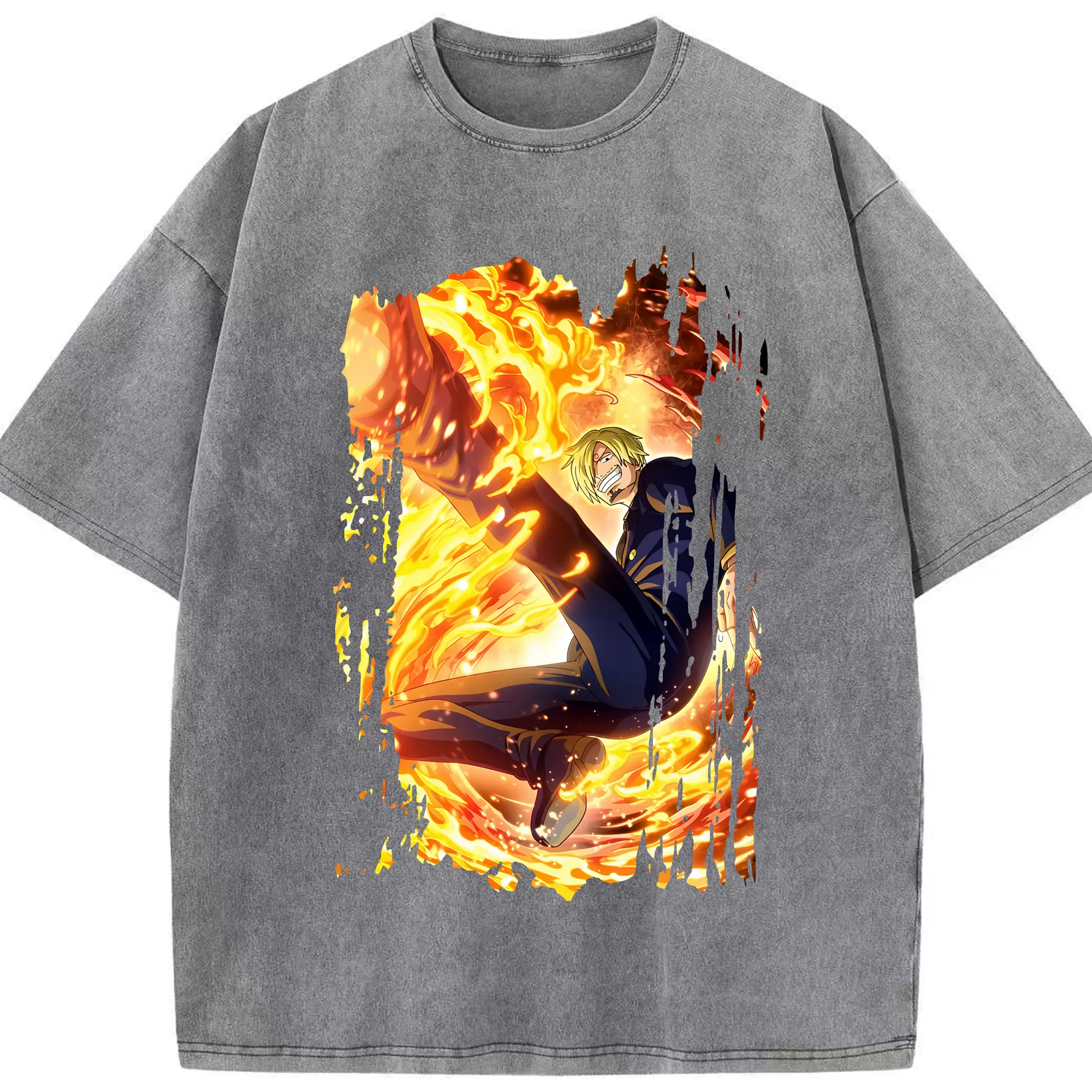 ワンピース グッズ ヴィンスモーク・サンジ - 綿100% ヴィンテージ風 半袖Tシャツ ・ 背面プリント ・ 柔らか肌触り ・ 通気性 快適 ・ スポーツ カジュアル 外出用