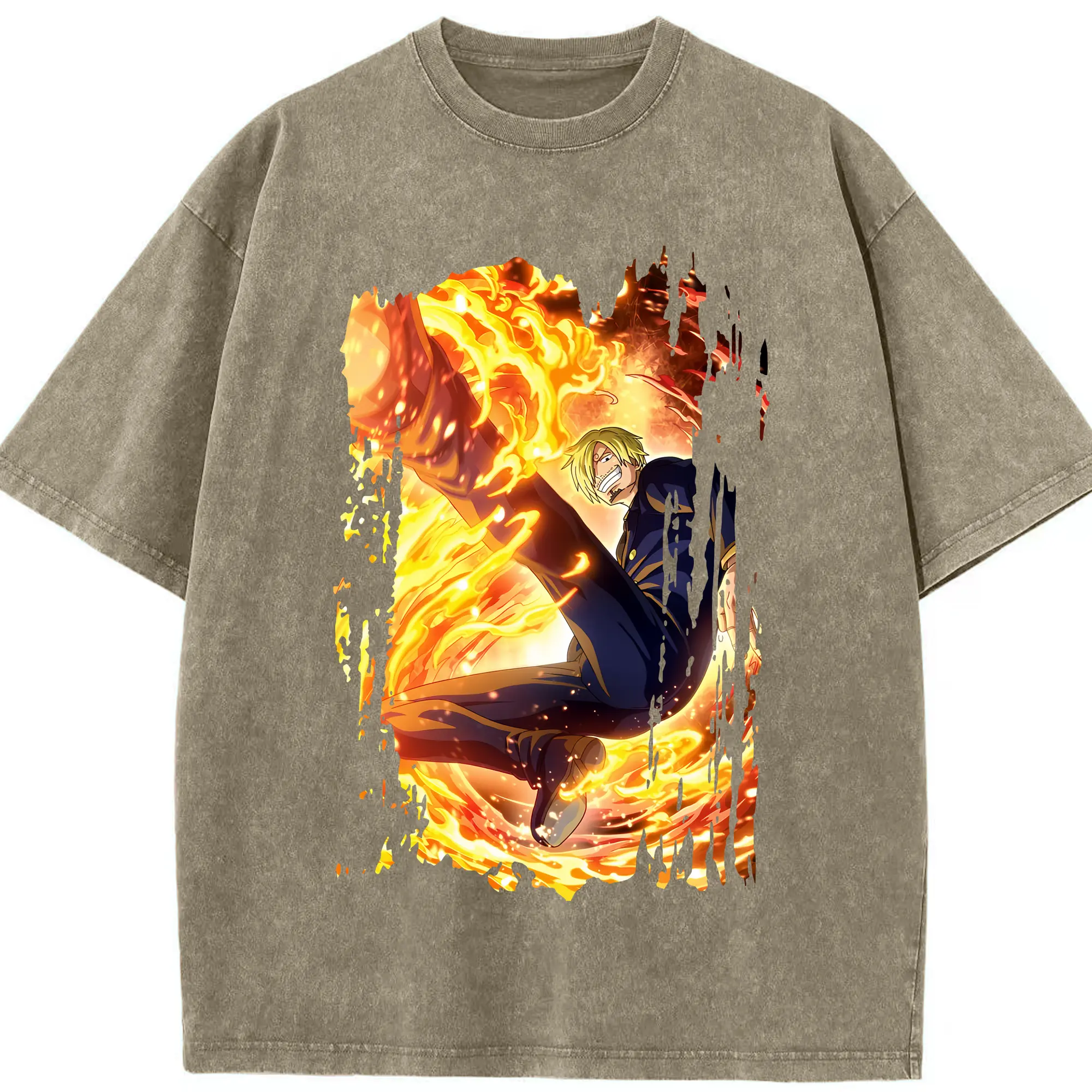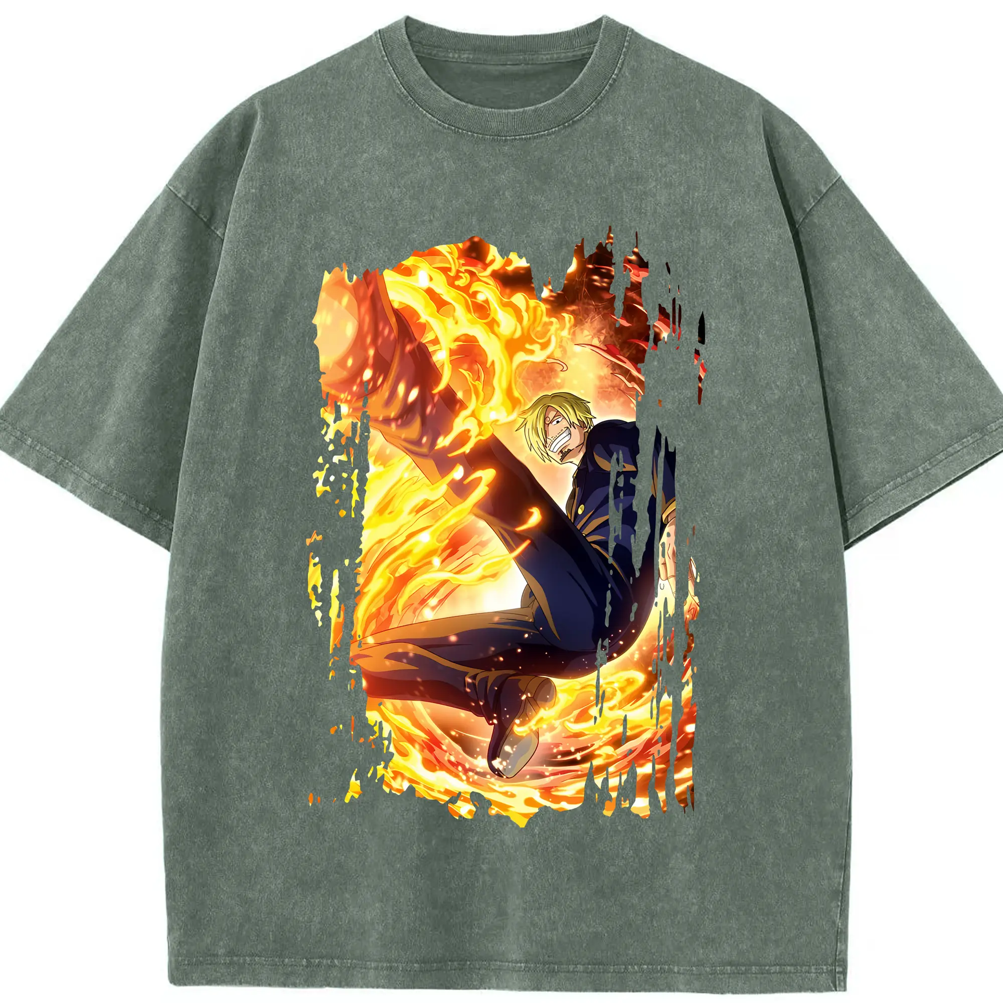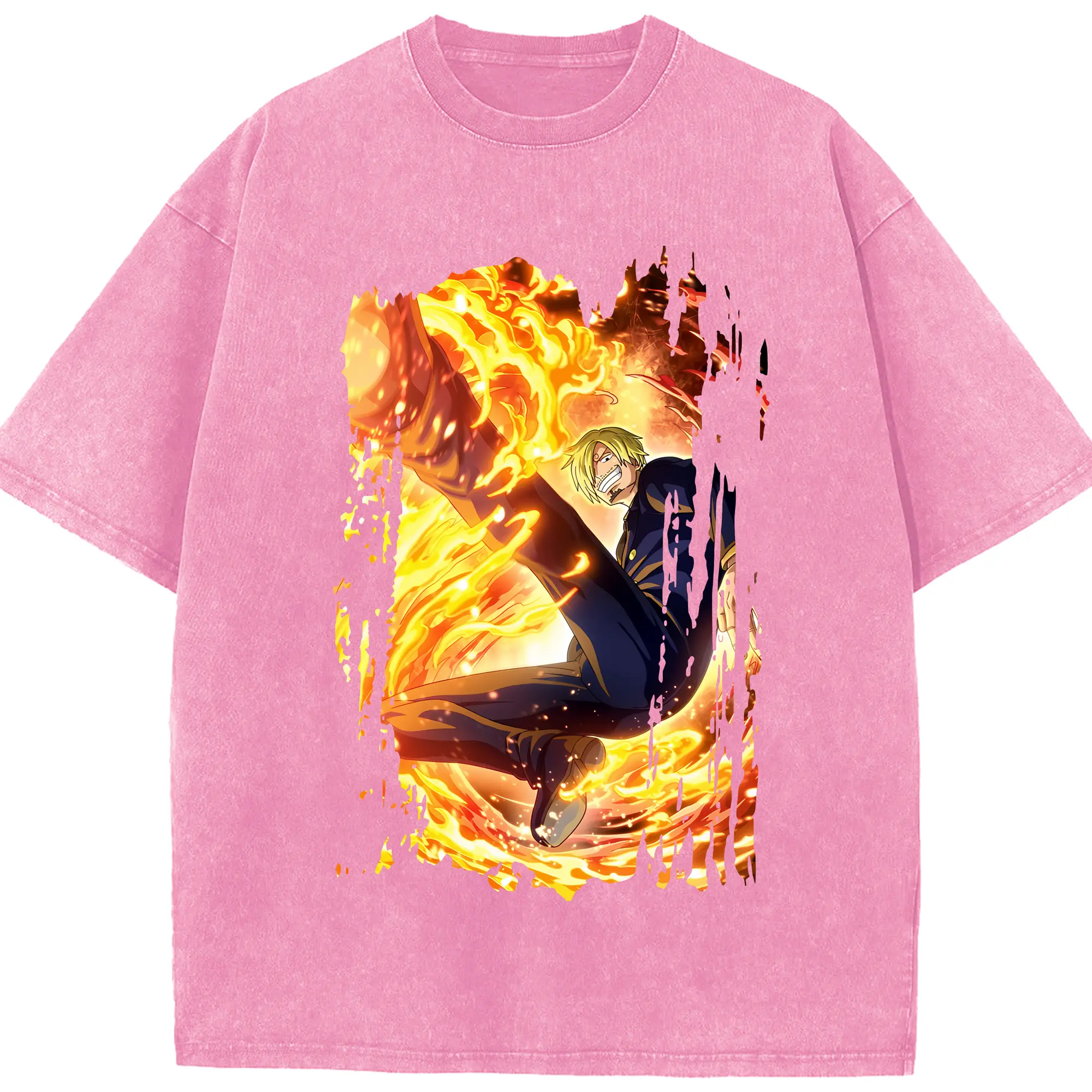 ワンピース グッズ ヴィンスモーク・サンジ - 綿100% ヴィンテージ風 半袖Tシャツ ・ 背面プリント ・ 柔らか肌触り ・ 通気性 快適 ・ スポーツ カジュアル 外出用