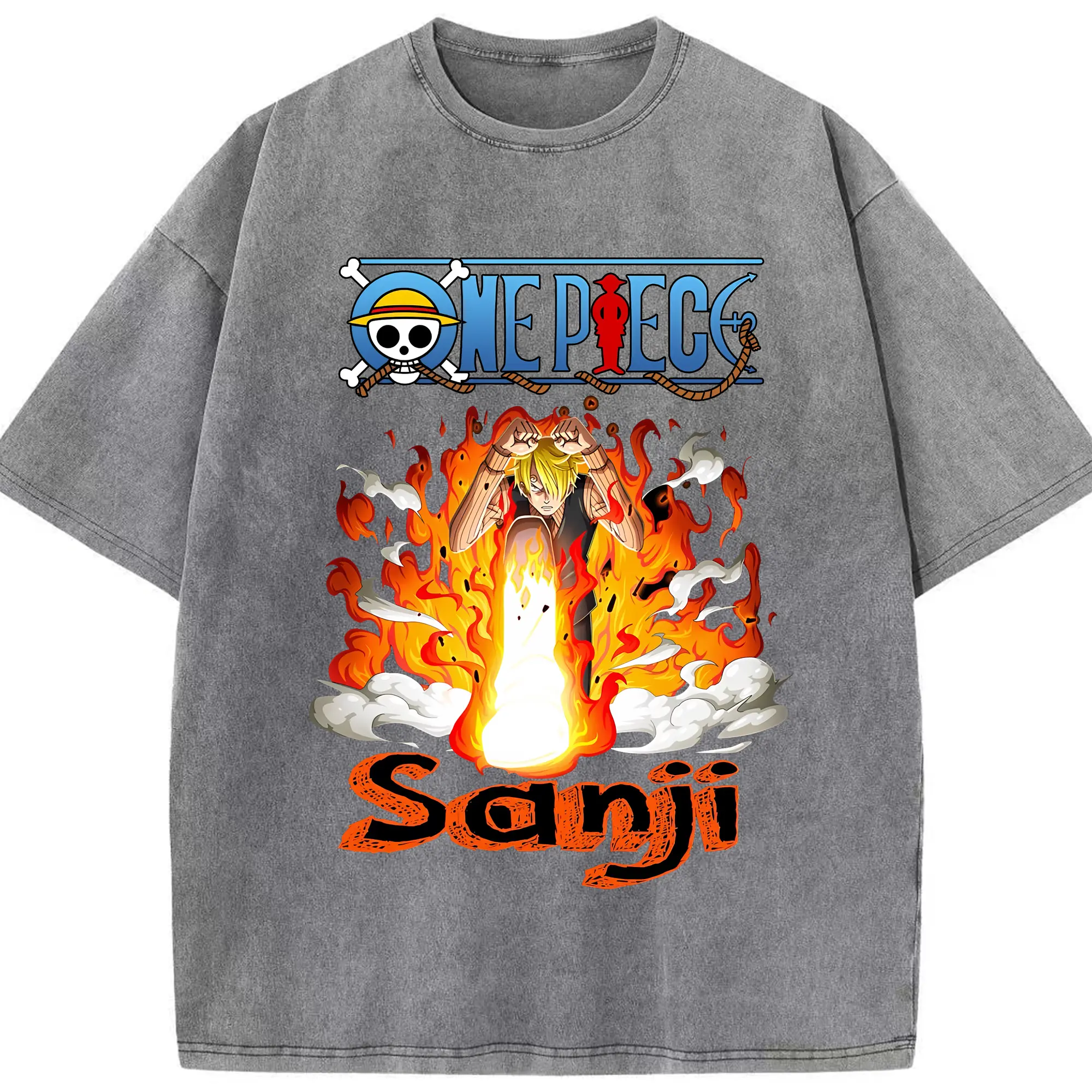 ワンピース グッズ ヴィンスモーク・サンジ - 綿100% ヴィンテージ風 半袖Tシャツ ・ 背面プリント ・ 柔らか肌触り ・ 通気性 快適 ・ スポーツ カジュアル 外出用