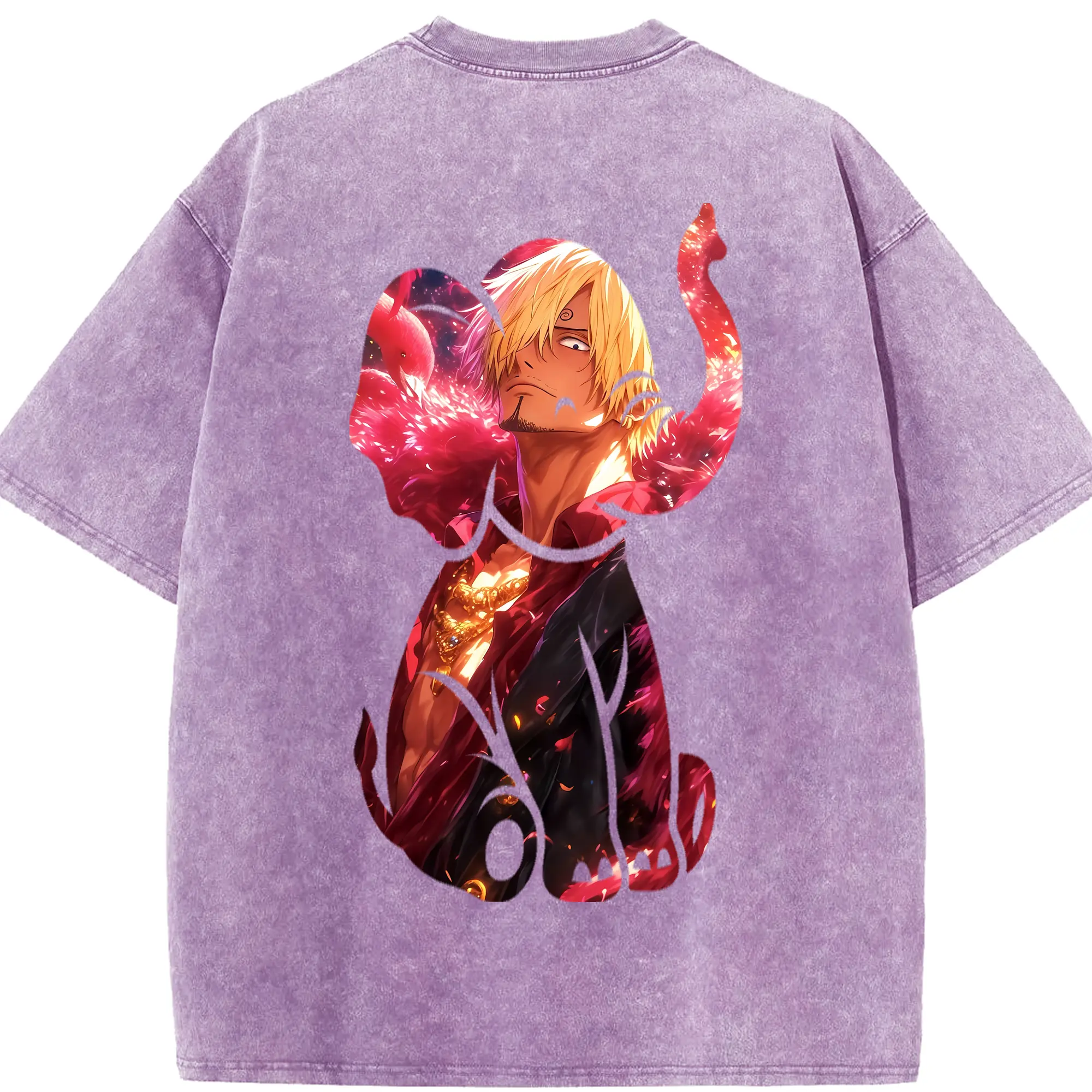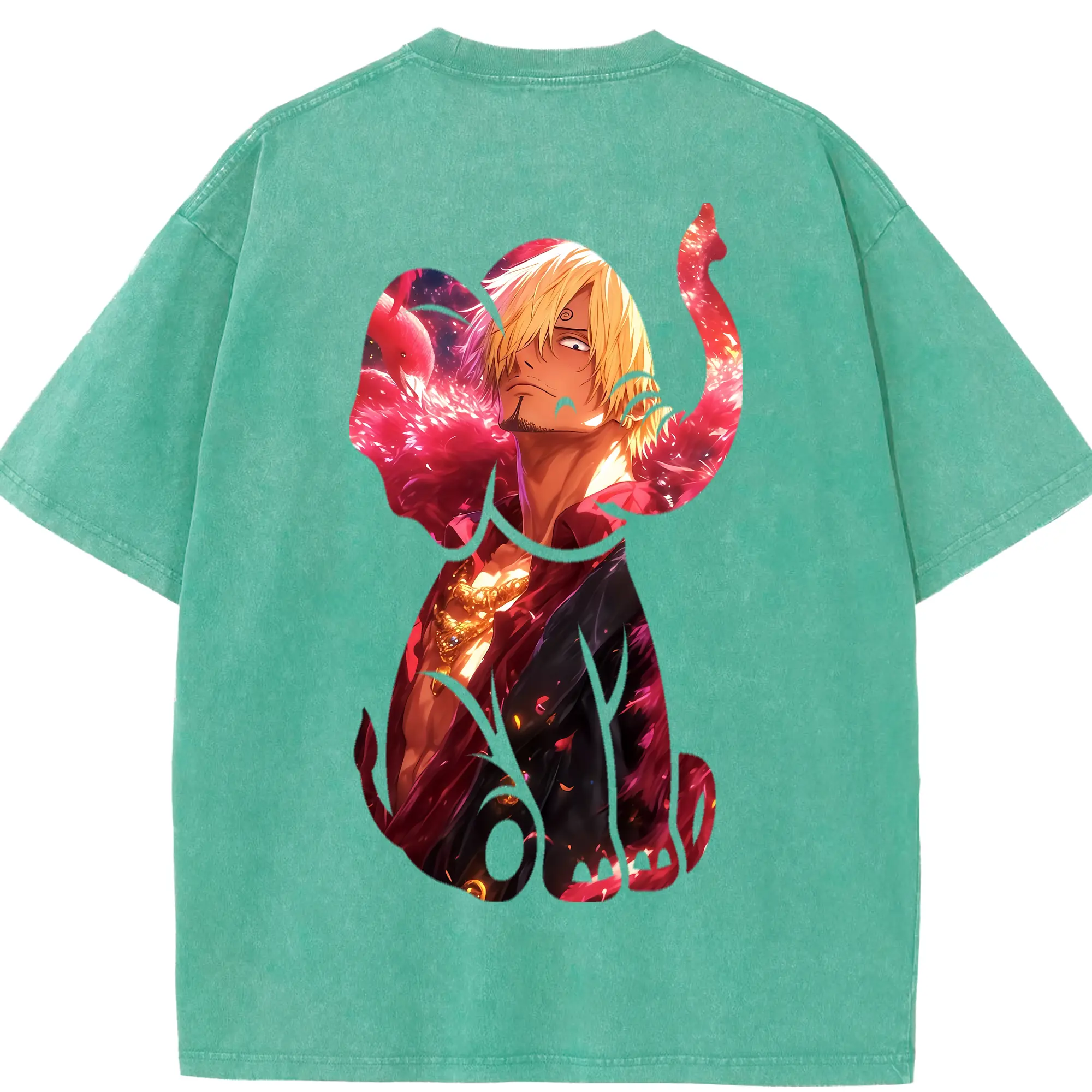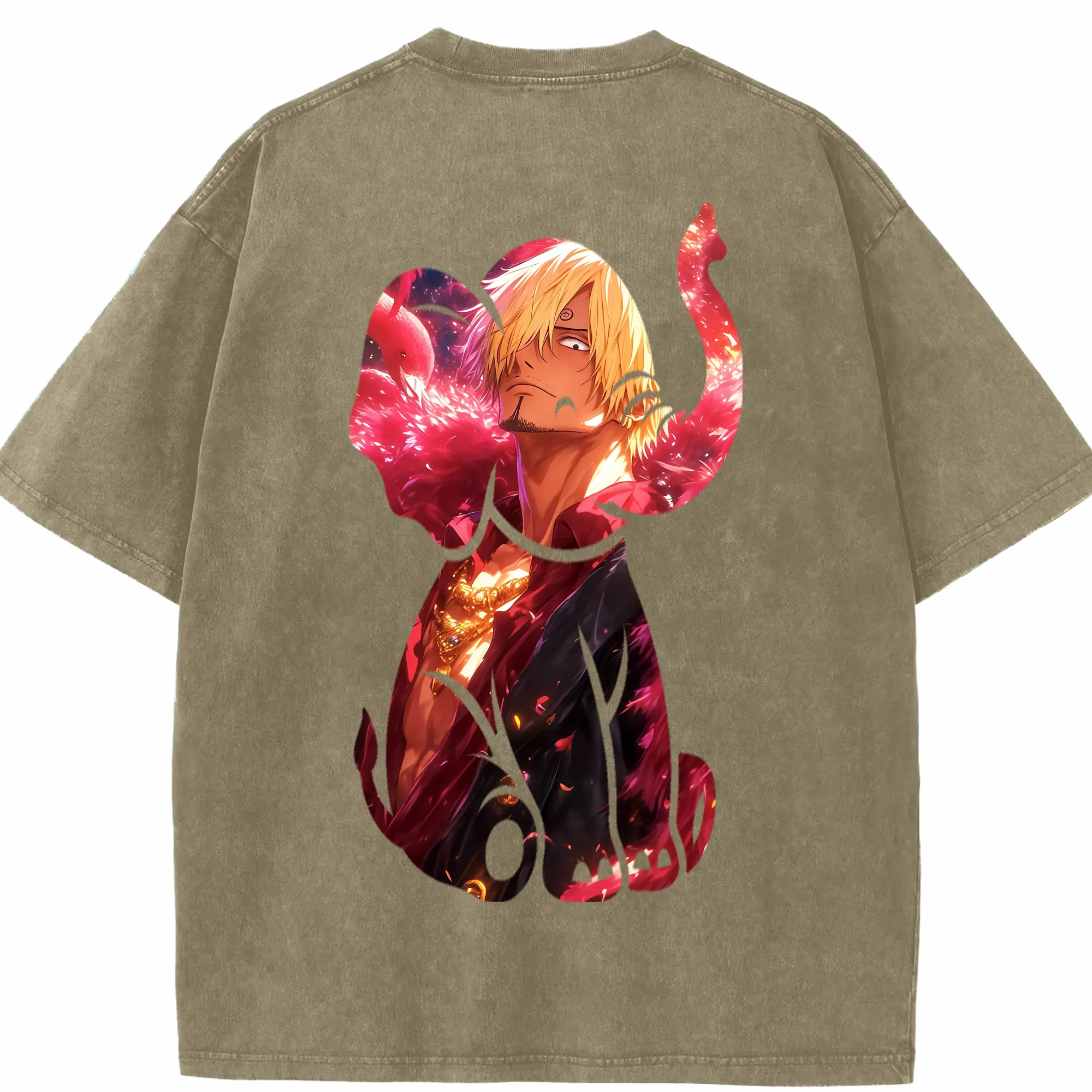ワンピース グッズ ヴィンスモーク・サンジ - 綿100% ヴィンテージ風 半袖Tシャツ ・ フロントプリント ・ 柔らか肌触り ・ 通気性 快適 ・ スポーツ カジュアル 外出用