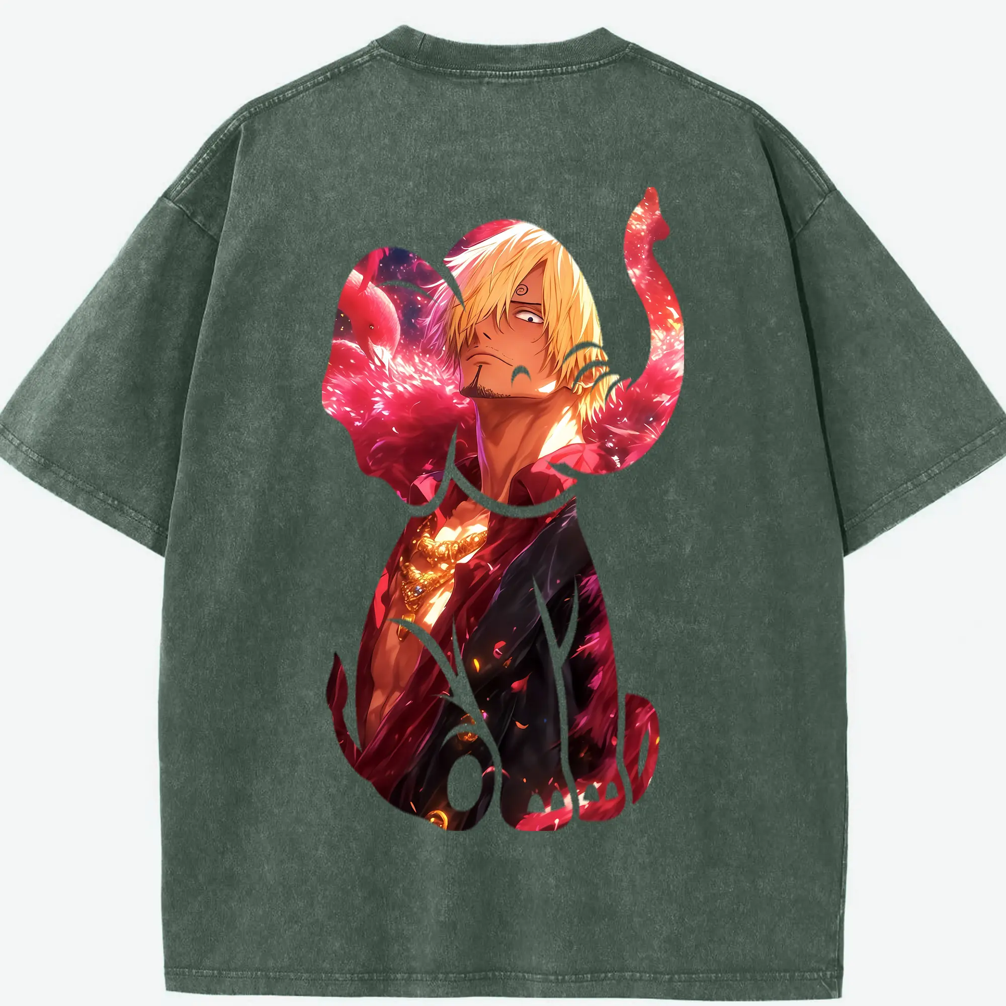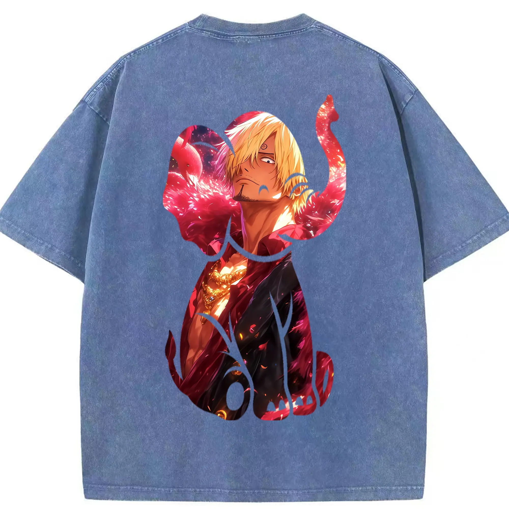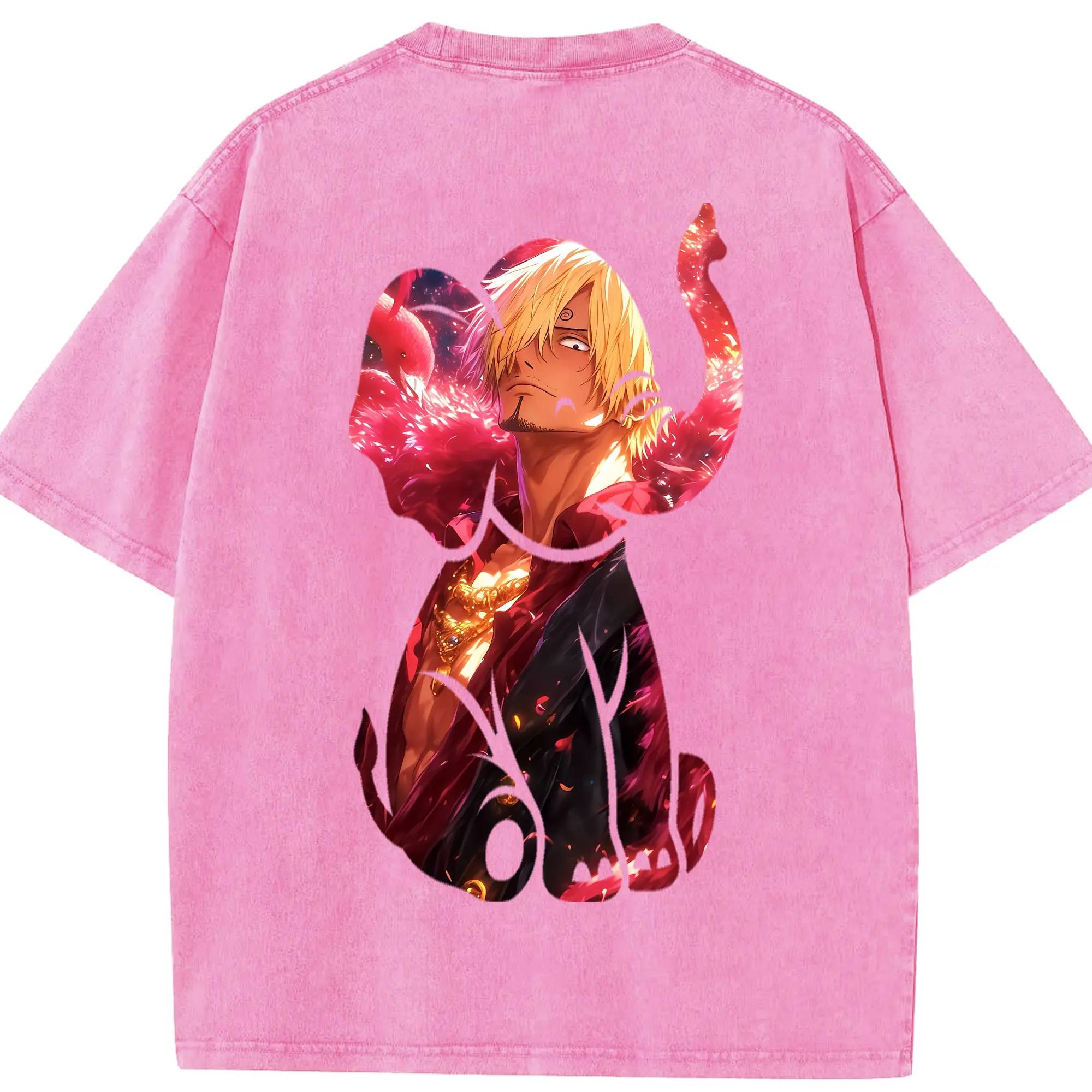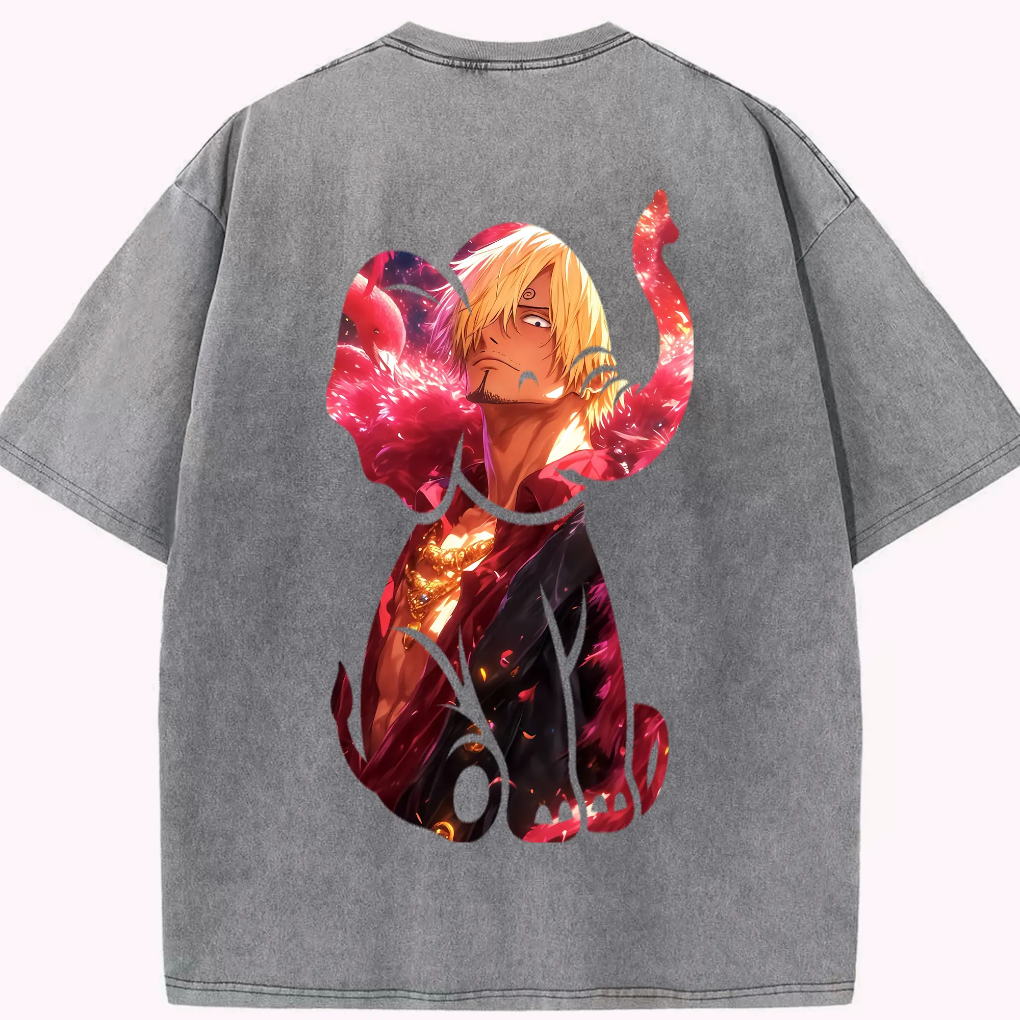 ワンピース グッズ ヴィンスモーク・サンジ - 綿100% ヴィンテージ風 半袖Tシャツ ・ フロントプリント ・ 柔らか肌触り ・ 通気性 快適 ・ スポーツ カジュアル 外出用