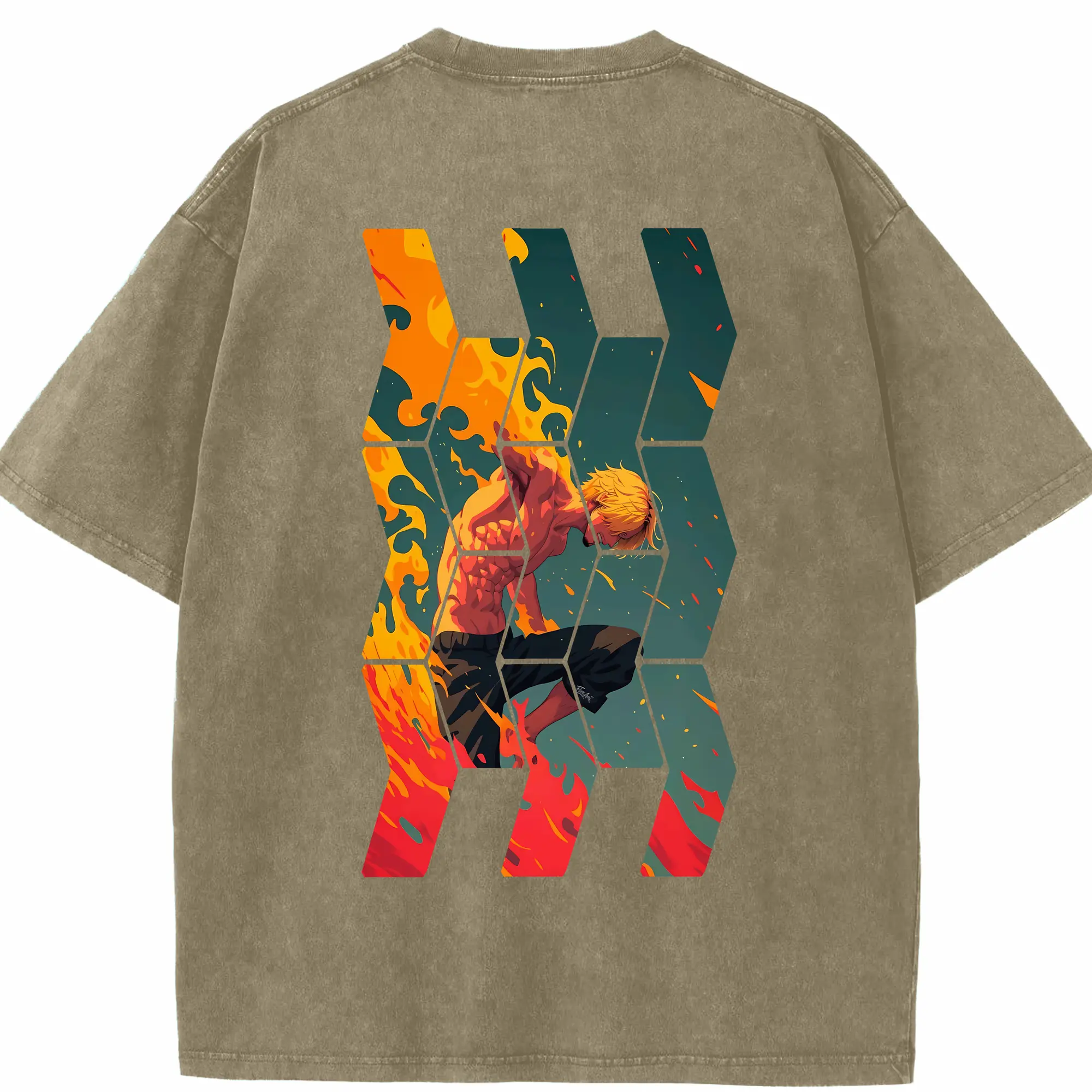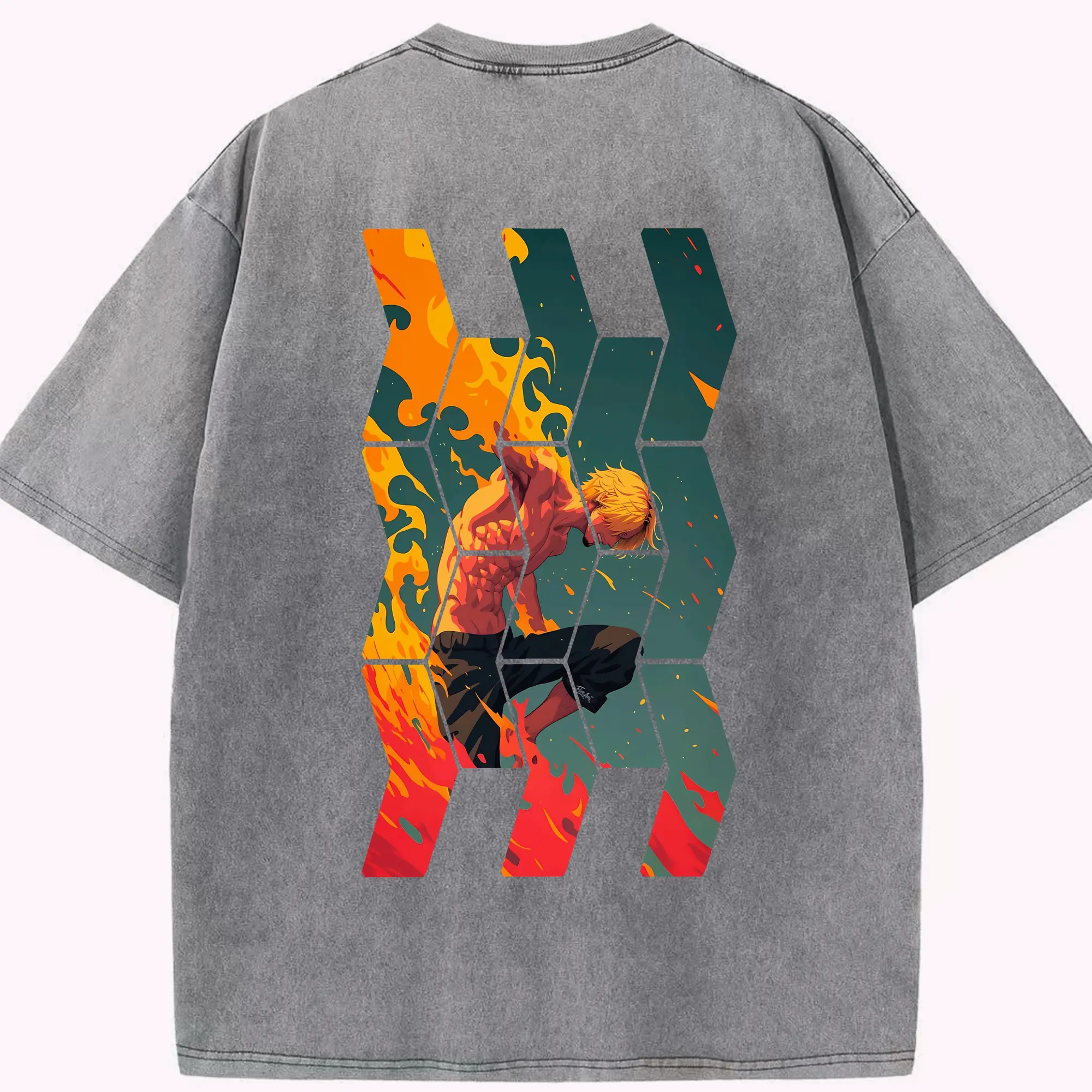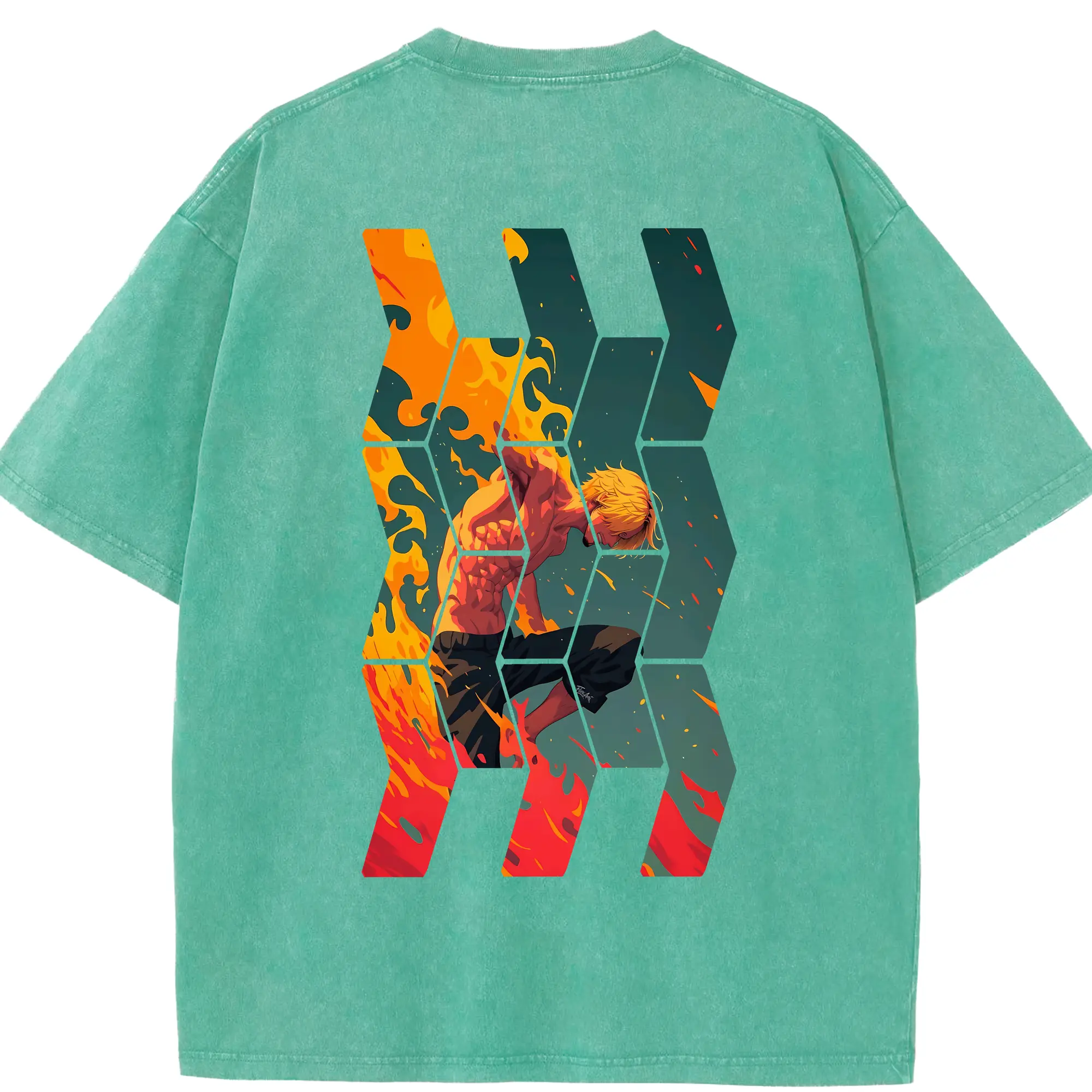 ワンピース グッズ ヴィンスモーク・サンジ - 綿100% ヴィンテージ風 半袖Tシャツ ・ フロントプリント ・ 柔らか肌触り ・ 通気性 快適 ・ スポーツ カジュアル 外出用