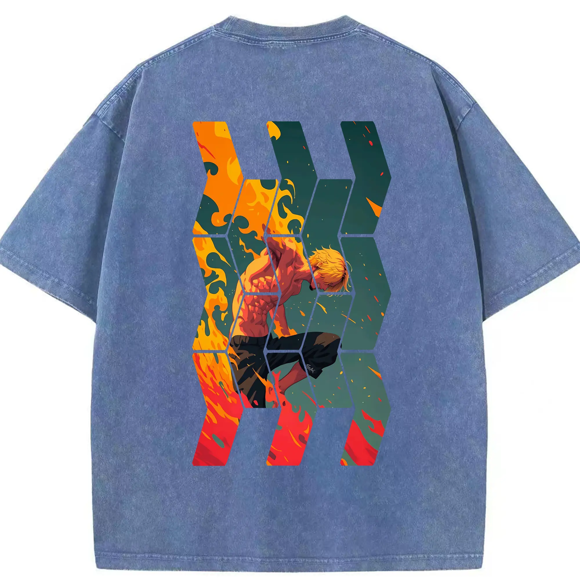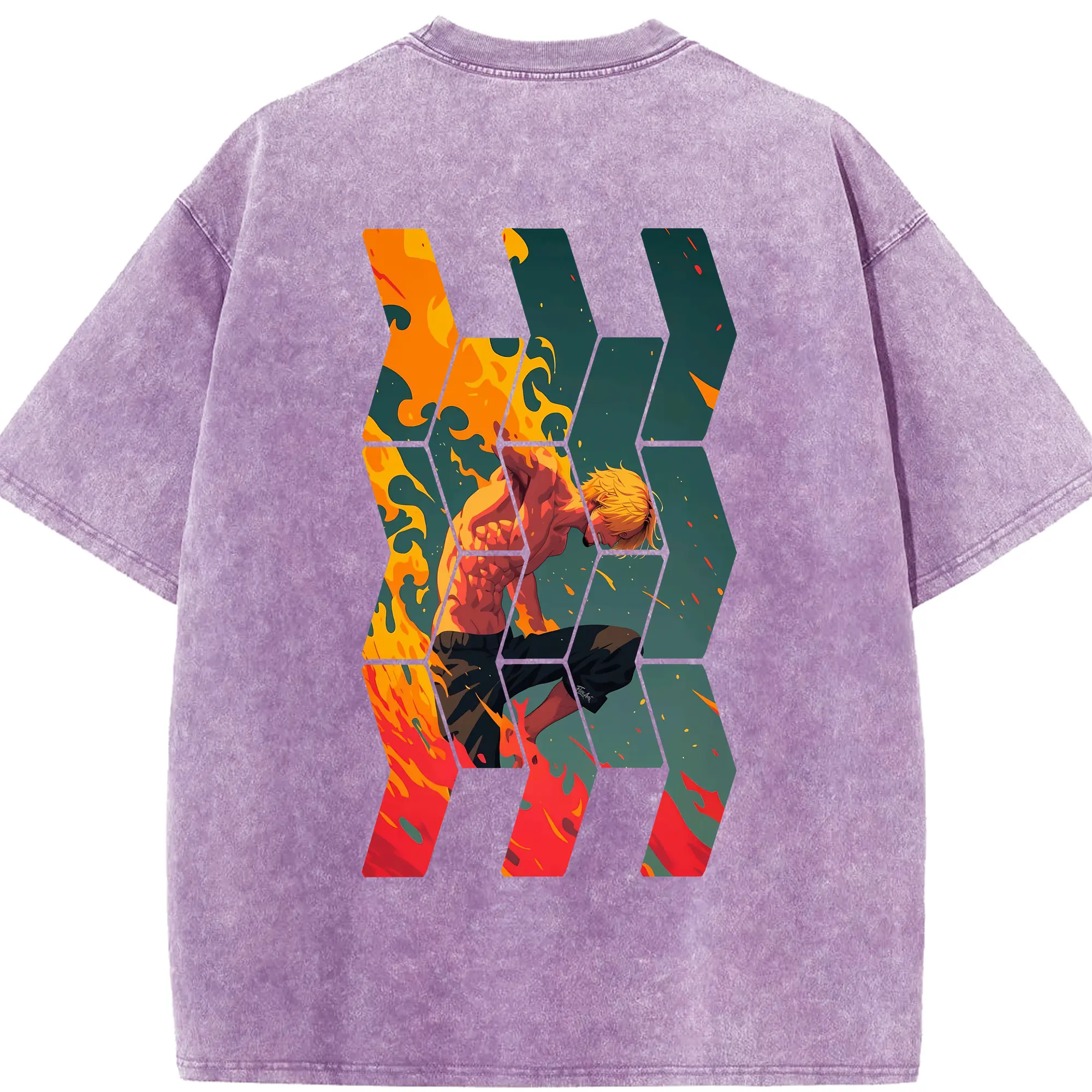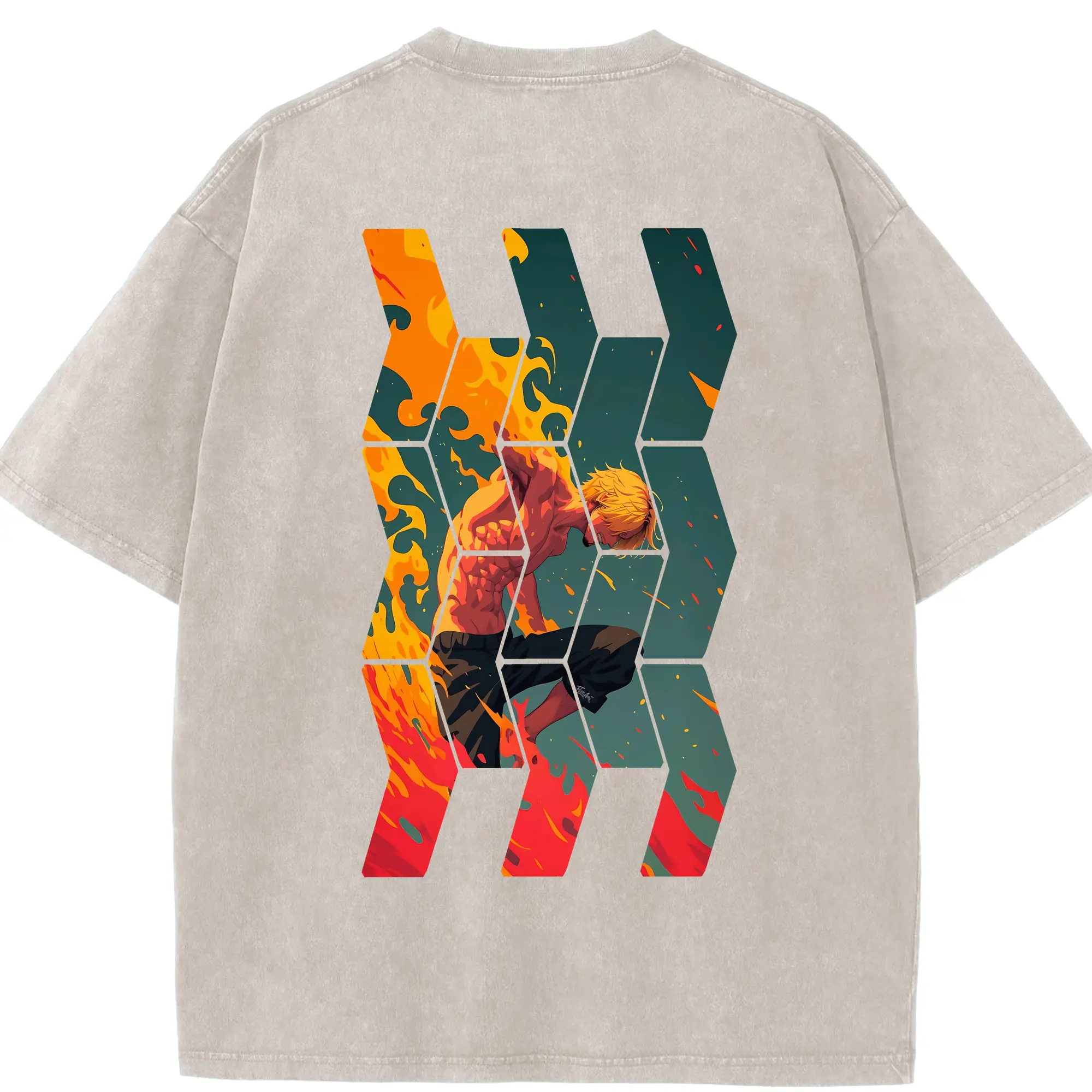 ワンピース グッズ ヴィンスモーク・サンジ - 綿100% ヴィンテージ風 半袖Tシャツ ・ フロントプリント ・ 柔らか肌触り ・ 通気性 快適 ・ スポーツ カジュアル 外出用