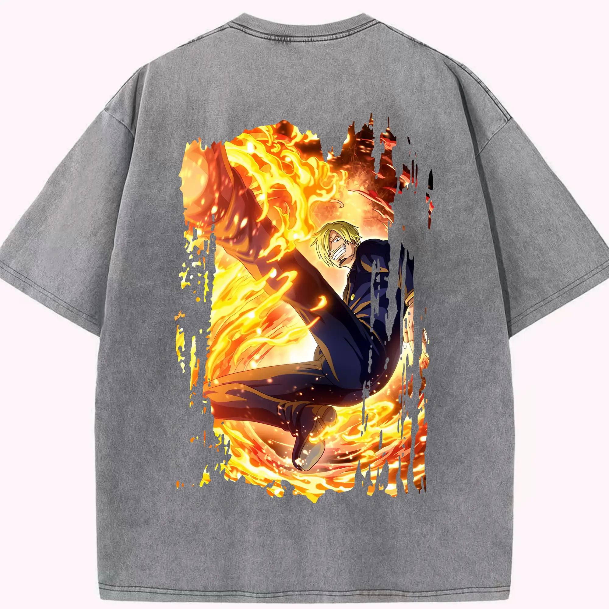 ワンピース グッズ ヴィンスモーク・サンジ - 綿100% ヴィンテージ風 半袖Tシャツ ・ 背面プリント ・ 柔らか肌触り ・ 通気性 快適 ・ スポーツ カジュアル 外出用