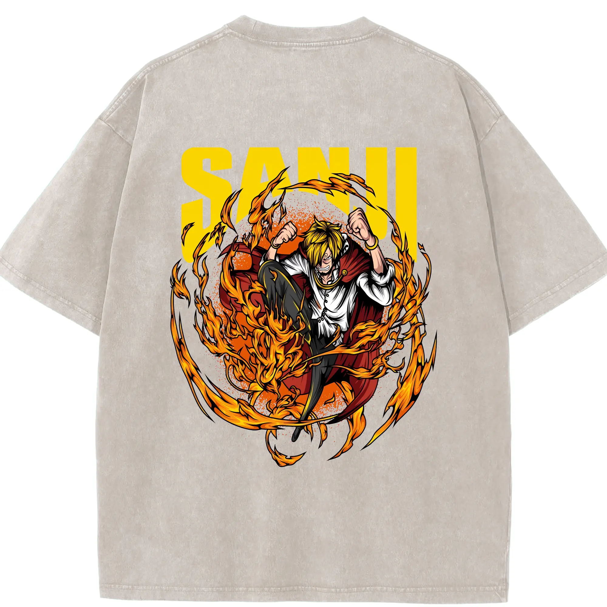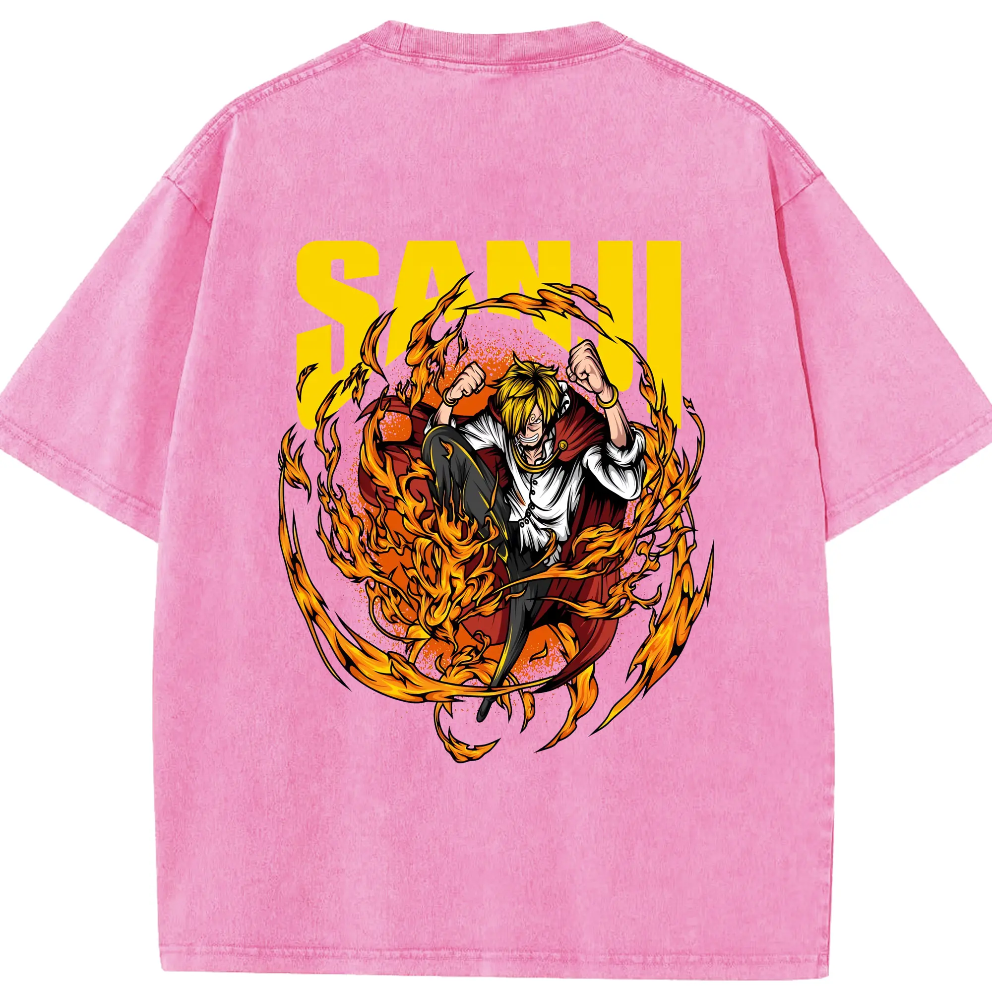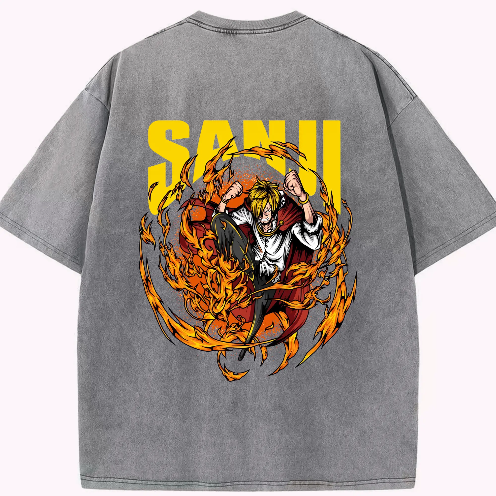 ワンピース グッズ ヴィンスモーク・サンジ - 綿100% ヴィンテージ風 半袖Tシャツ ・ フロントプリント ・ 柔らか肌触り ・ 通気性 快適 ・ スポーツ カジュアル 外出用