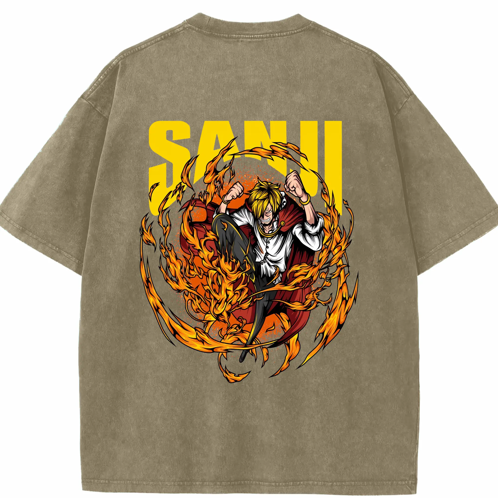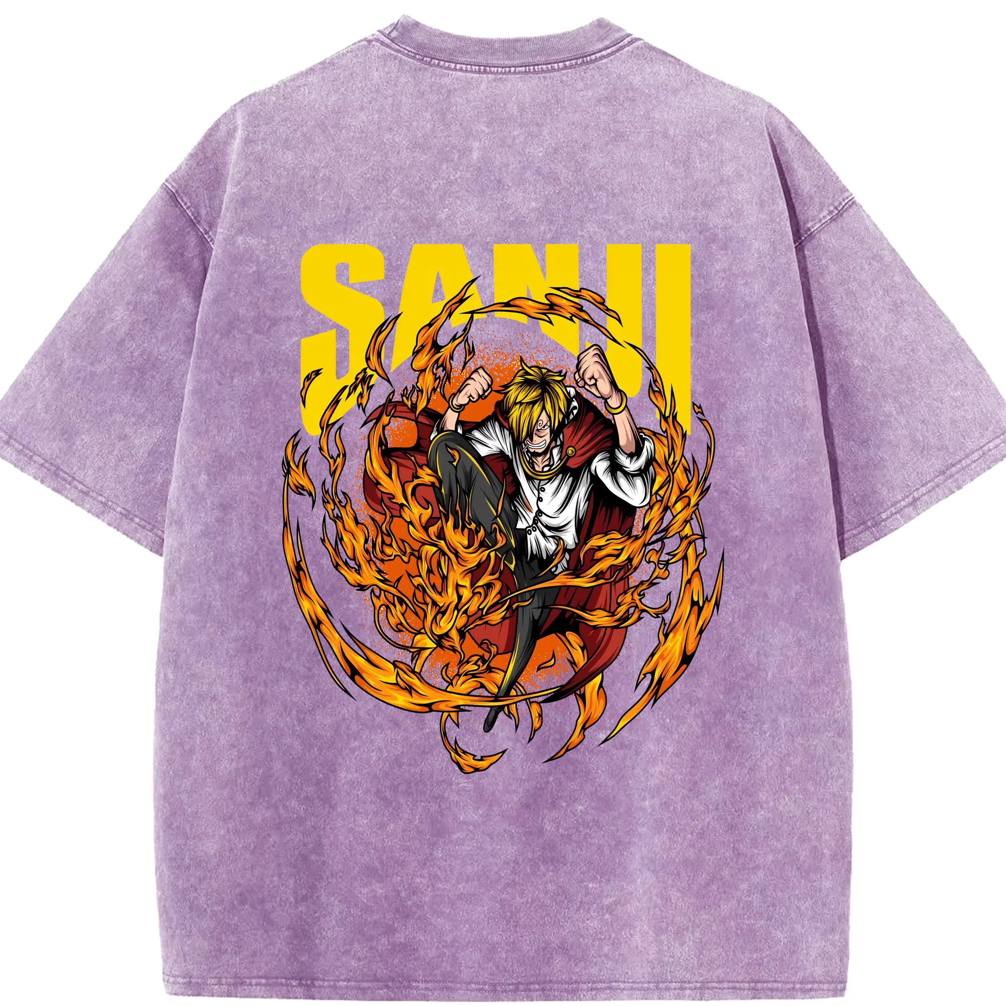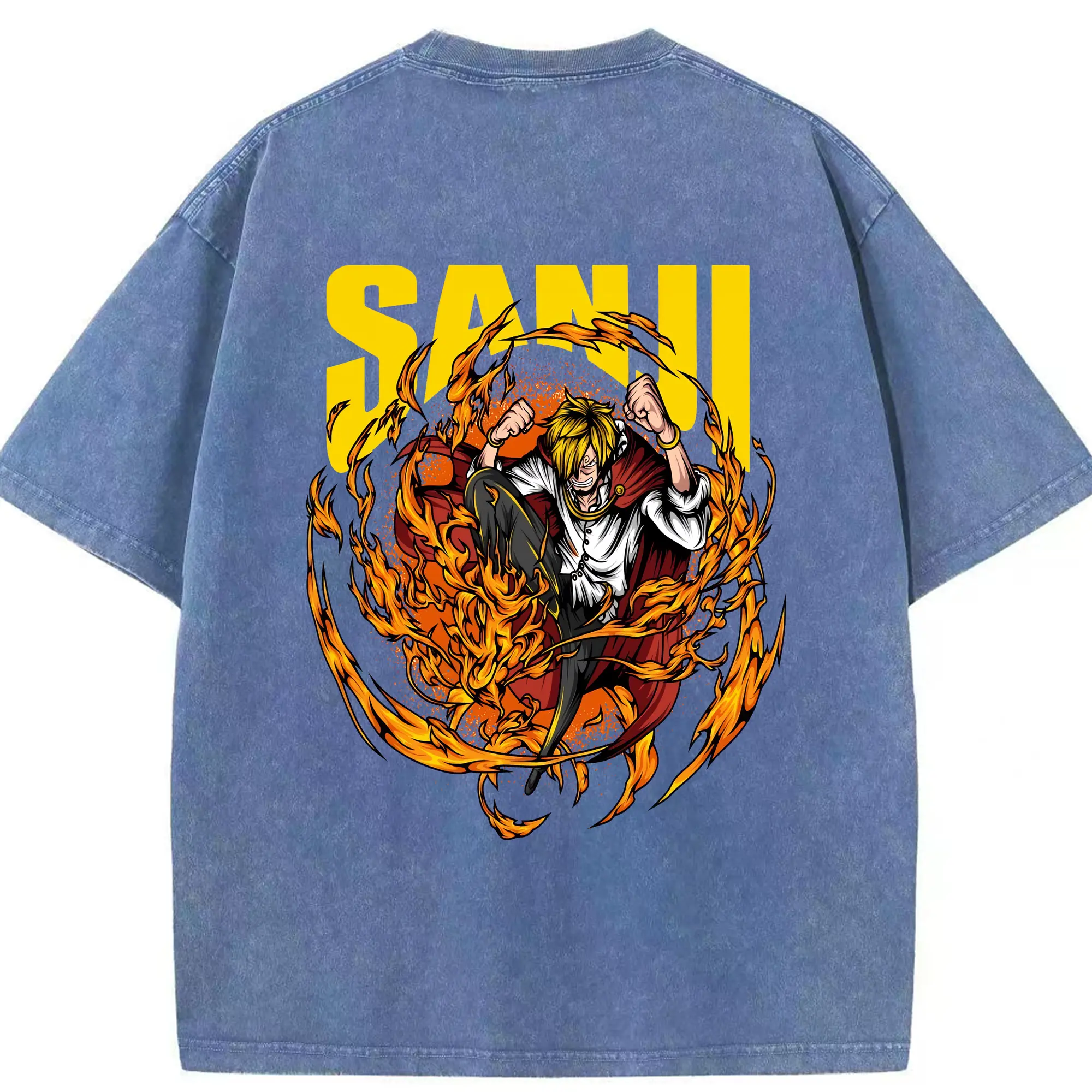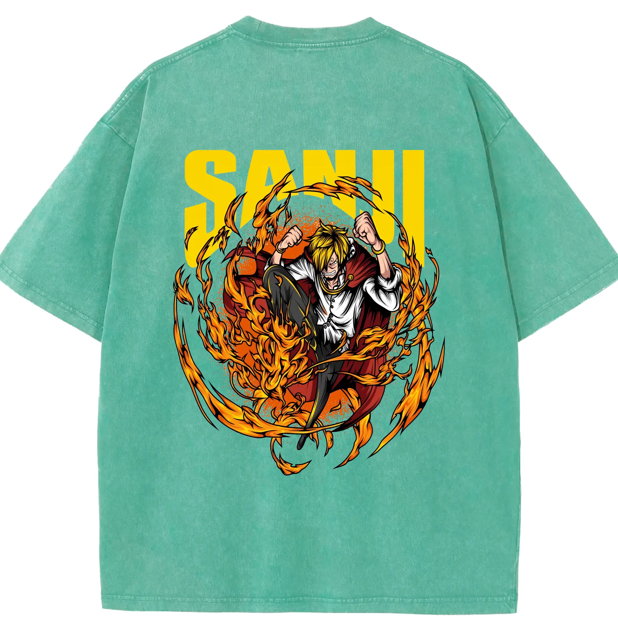 ワンピース グッズ ヴィンスモーク・サンジ - 綿100% ヴィンテージ風 半袖Tシャツ ・ フロントプリント ・ 柔らか肌触り ・ 通気性 快適 ・ スポーツ カジュアル 外出用