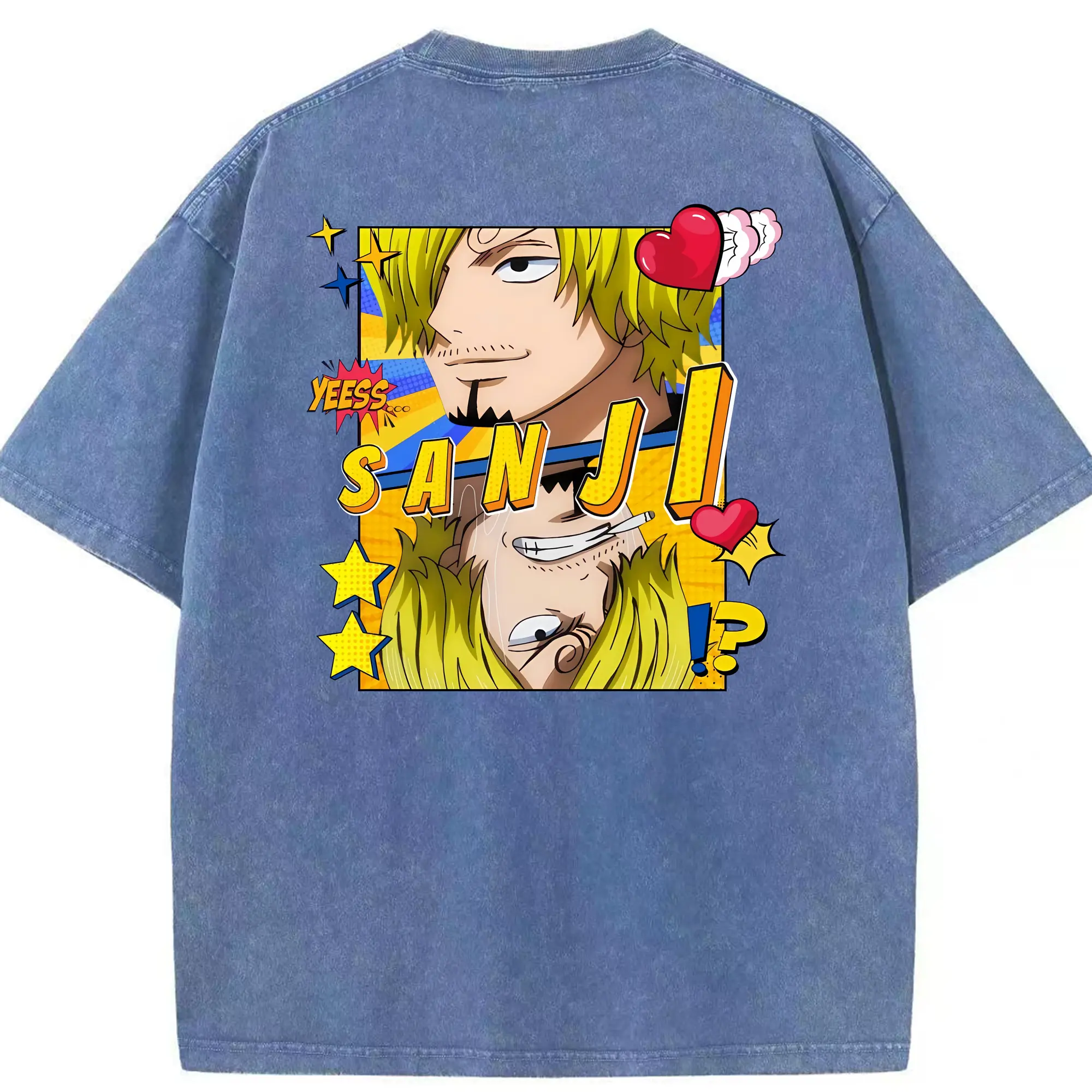 ワンピース グッズ ヴィンスモーク・サンジ - 綿100% ヴィンテージ風 半袖Tシャツ ・ フロントプリント ・ 柔らか肌触り ・ 通気性 快適 ・ スポーツ カジュアル 外出用