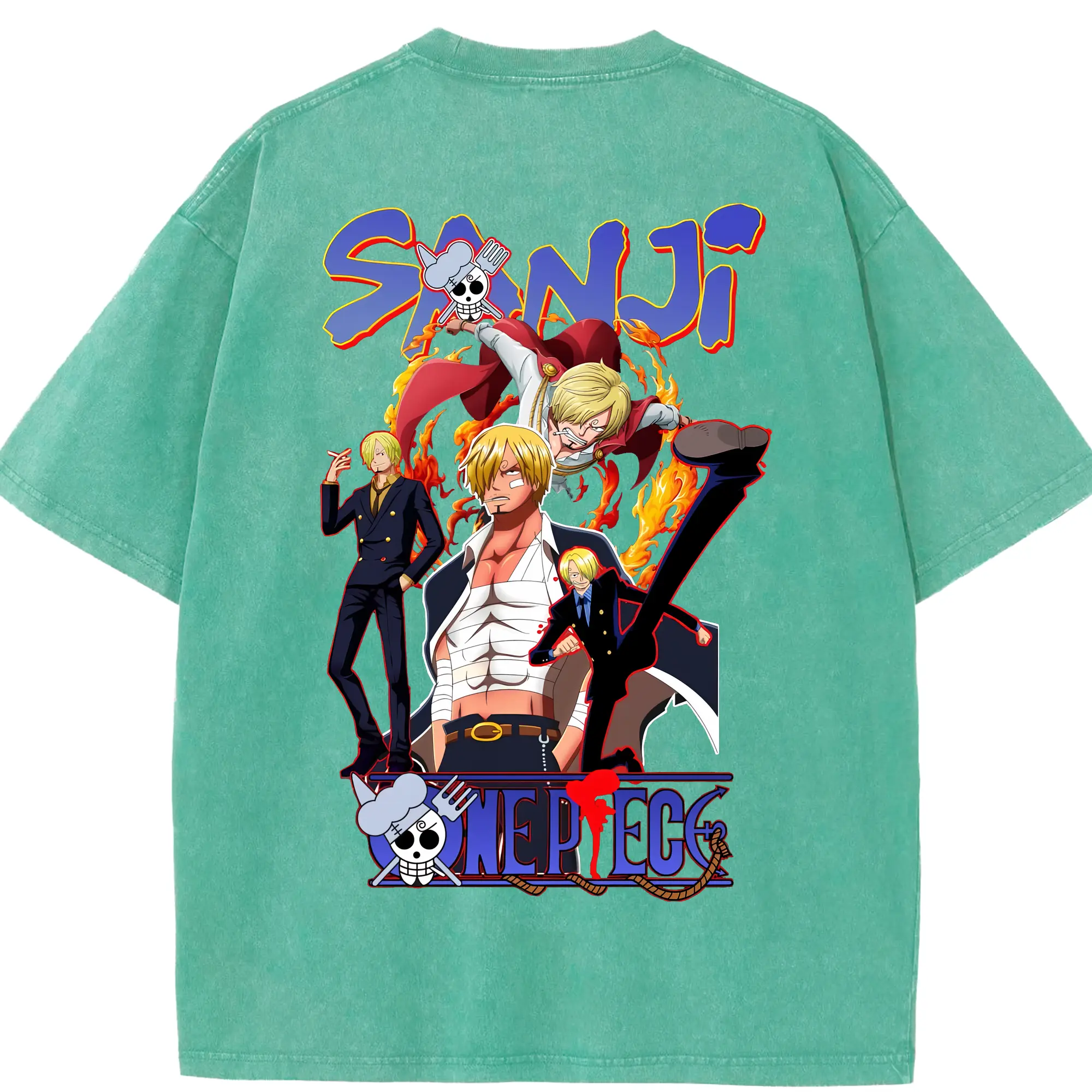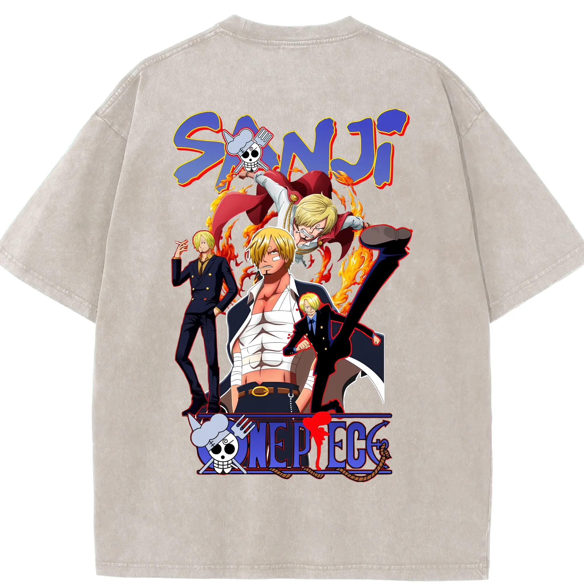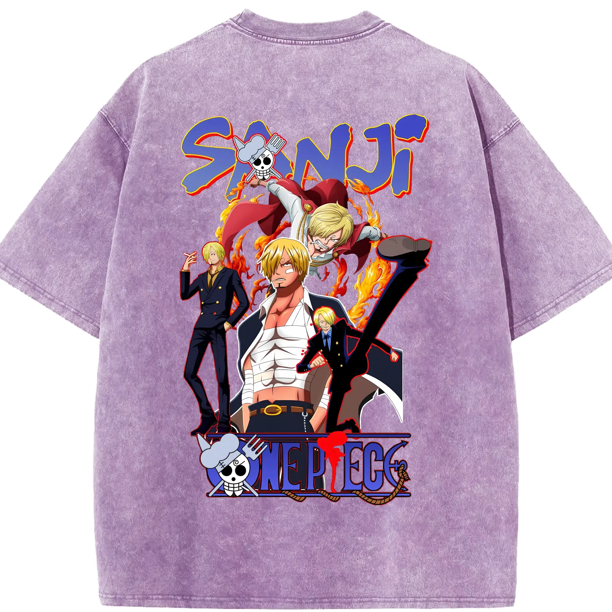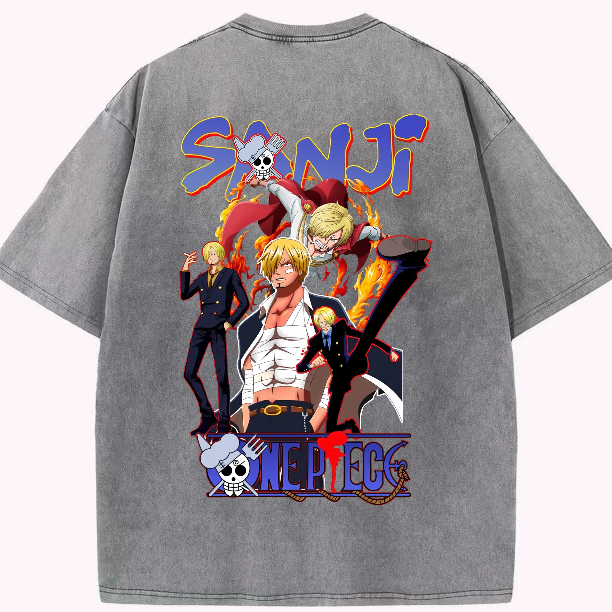 ワンピース グッズ ヴィンスモーク・サンジ - 綿100% ヴィンテージ風 半袖Tシャツ ・ フロントプリント ・ 柔らか肌触り ・ 通気性 快適 ・ スポーツ カジュアル 外出用