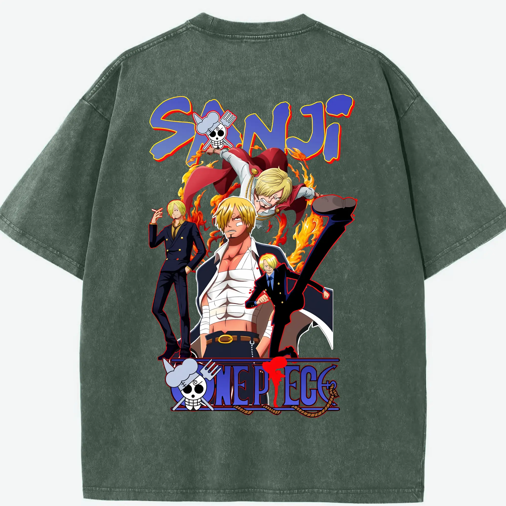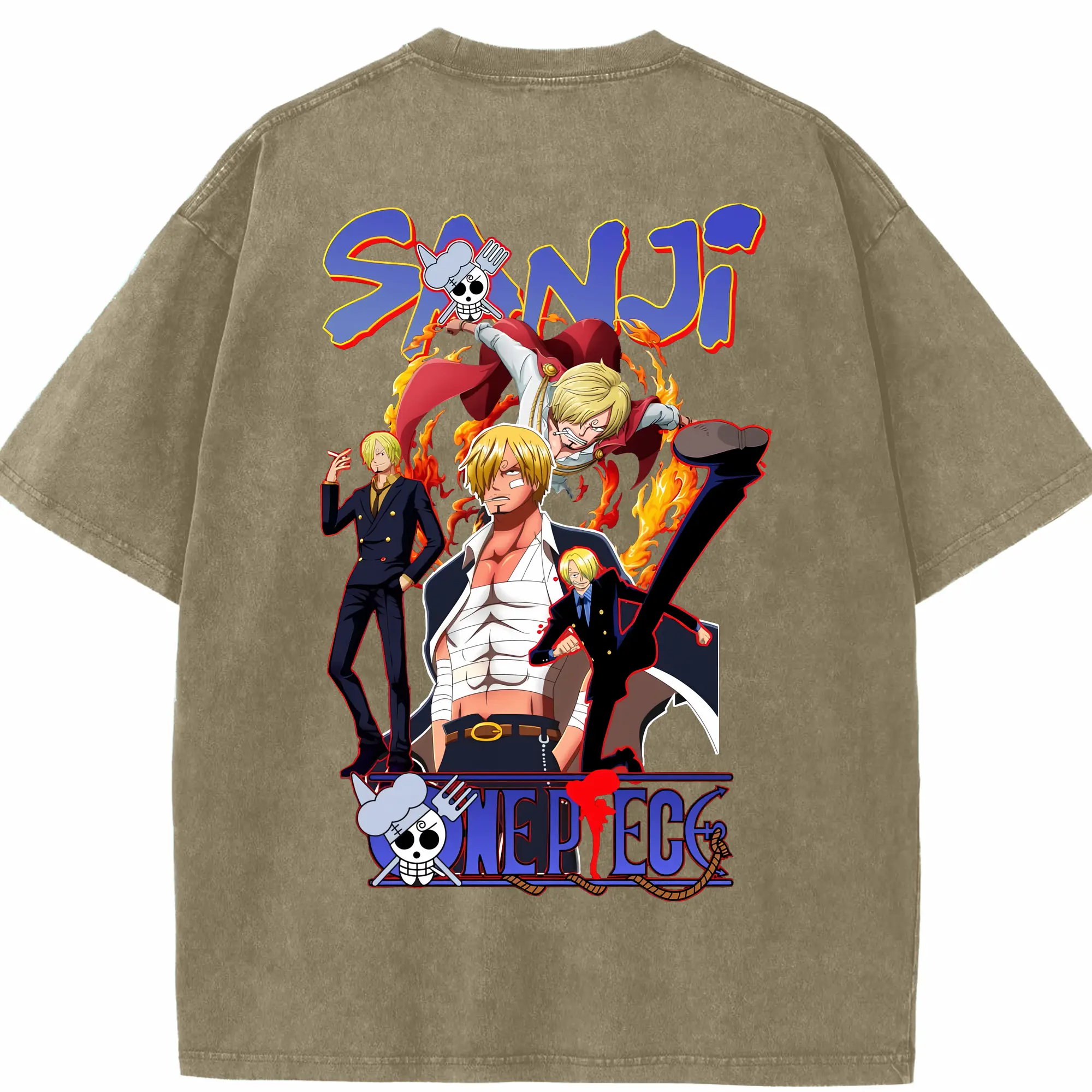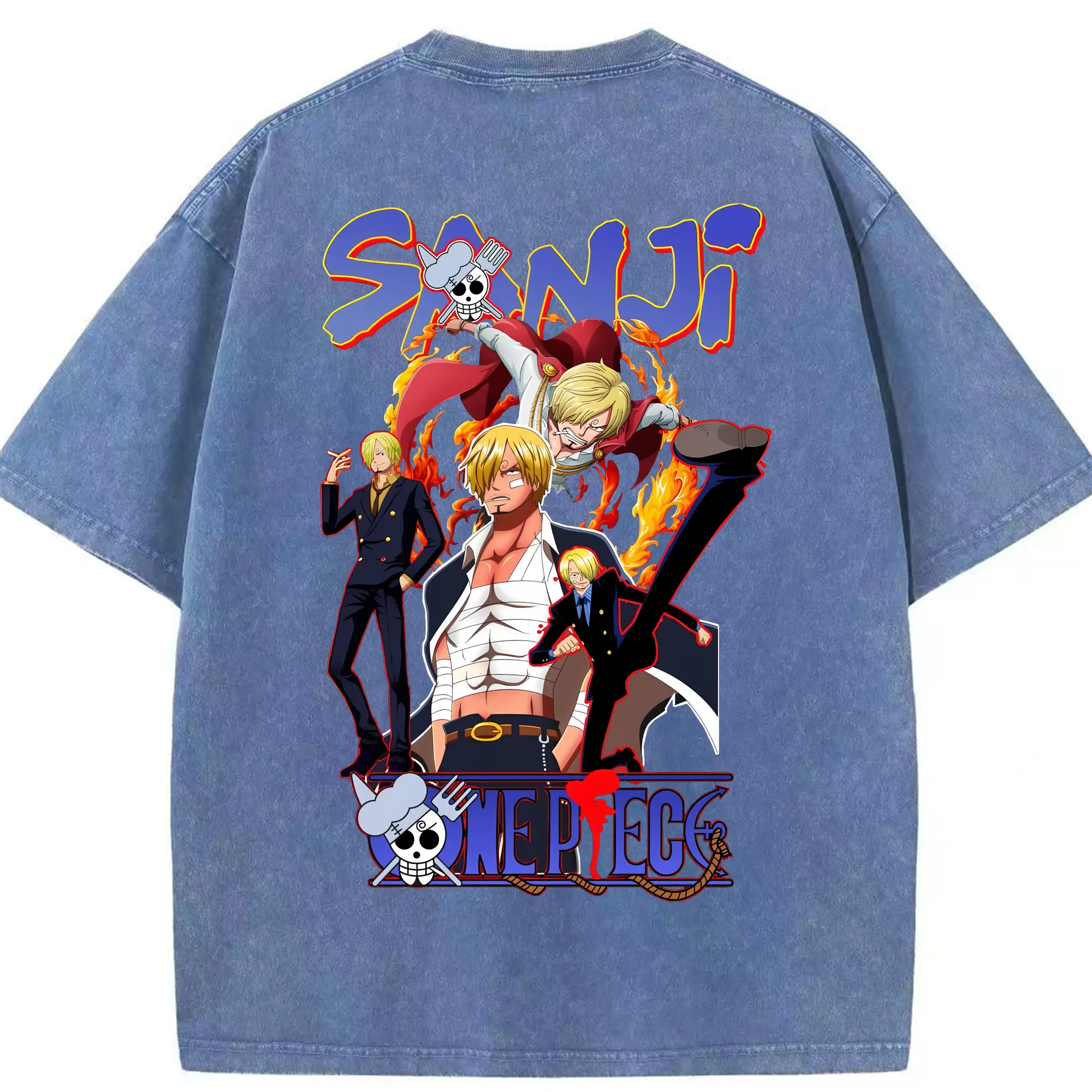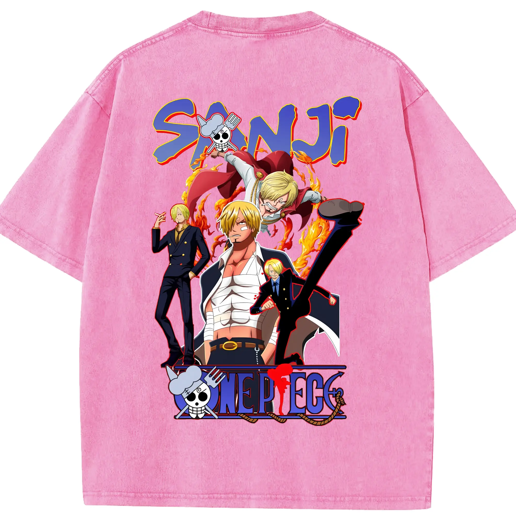 ワンピース グッズ ヴィンスモーク・サンジ - 綿100% ヴィンテージ風 半袖Tシャツ ・ フロントプリント ・ 柔らか肌触り ・ 通気性 快適 ・ スポーツ カジュアル 外出用