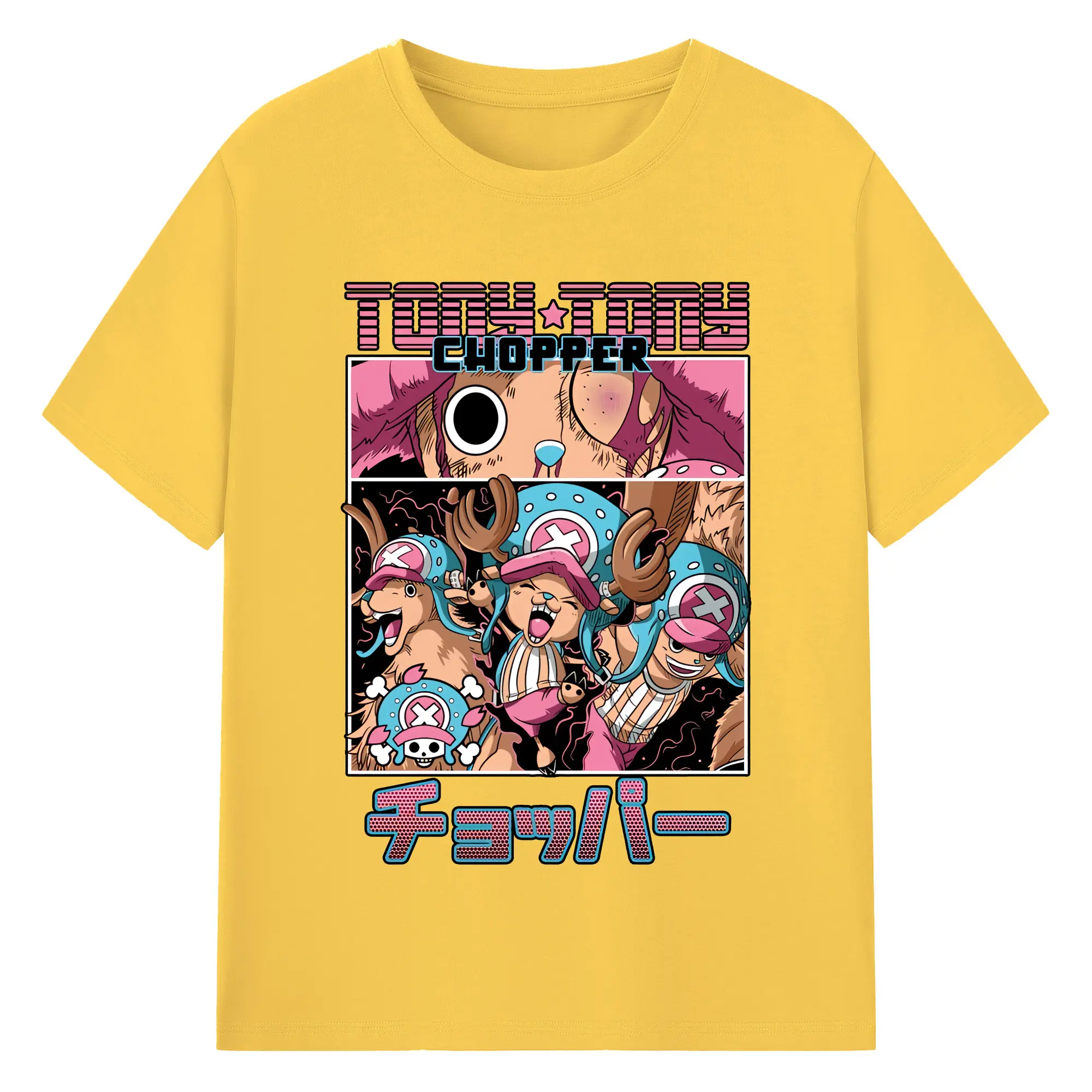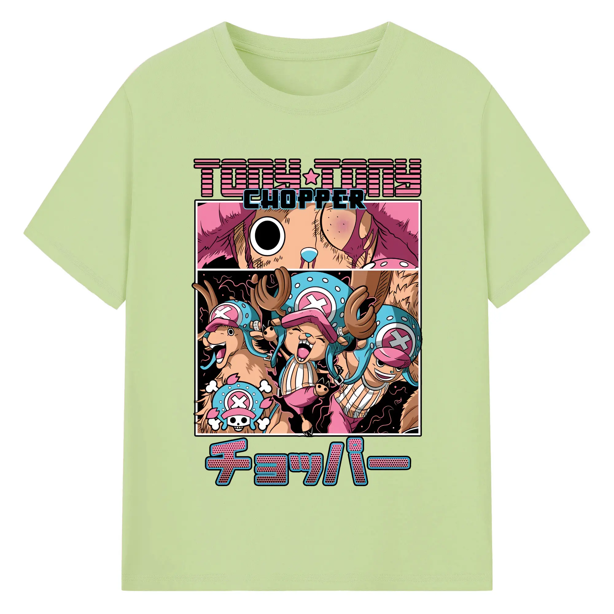 ワンピース グッズ トニートニー・チョッパー - 綿100% ヴィンテージ風 半袖Tシャツ ・ フロントプリント ・ 柔らか肌触り ・ 通気性 快適 ・ スポーツ カジュアル 外出用