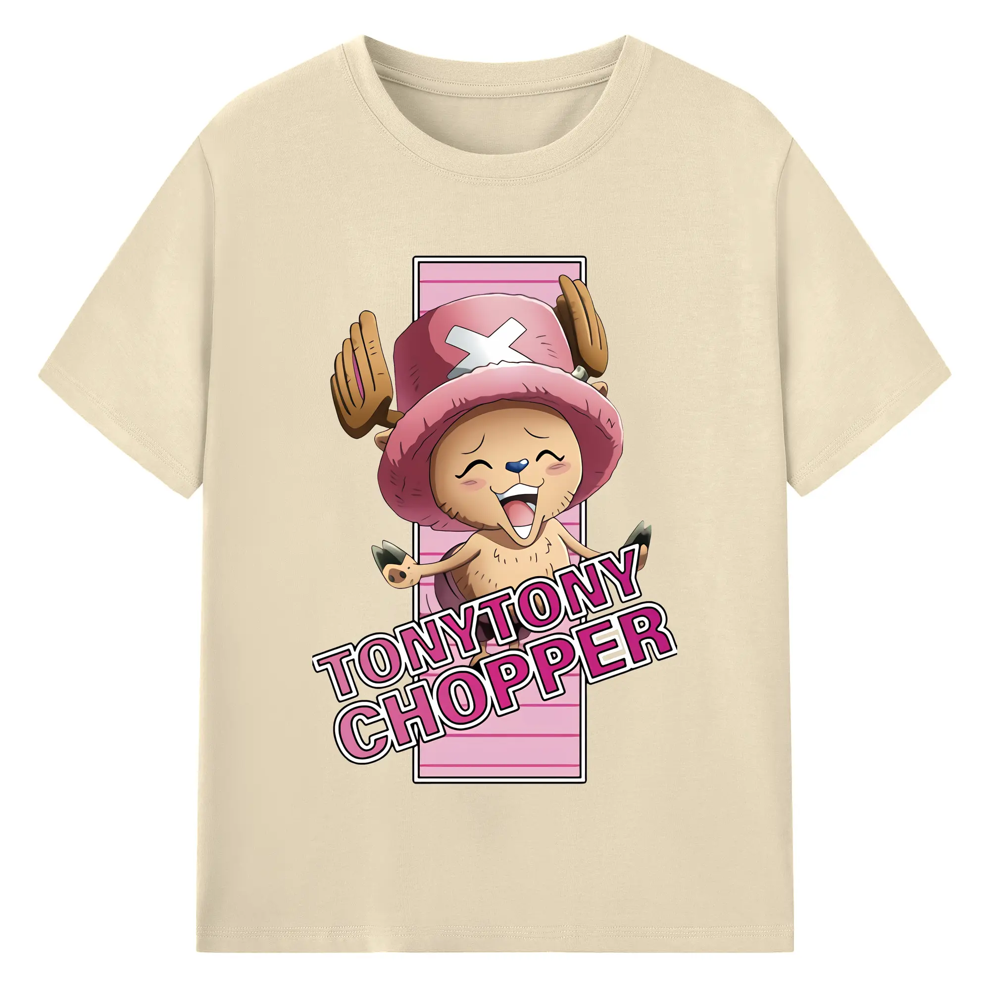 ワンピース グッズ トニートニー・チョッパー - 綿100% ヴィンテージ風 半袖Tシャツ ・ フロントプリント ・ 柔らか肌触り ・ 通気性 快適 ・ スポーツ カジュアル 外出用
