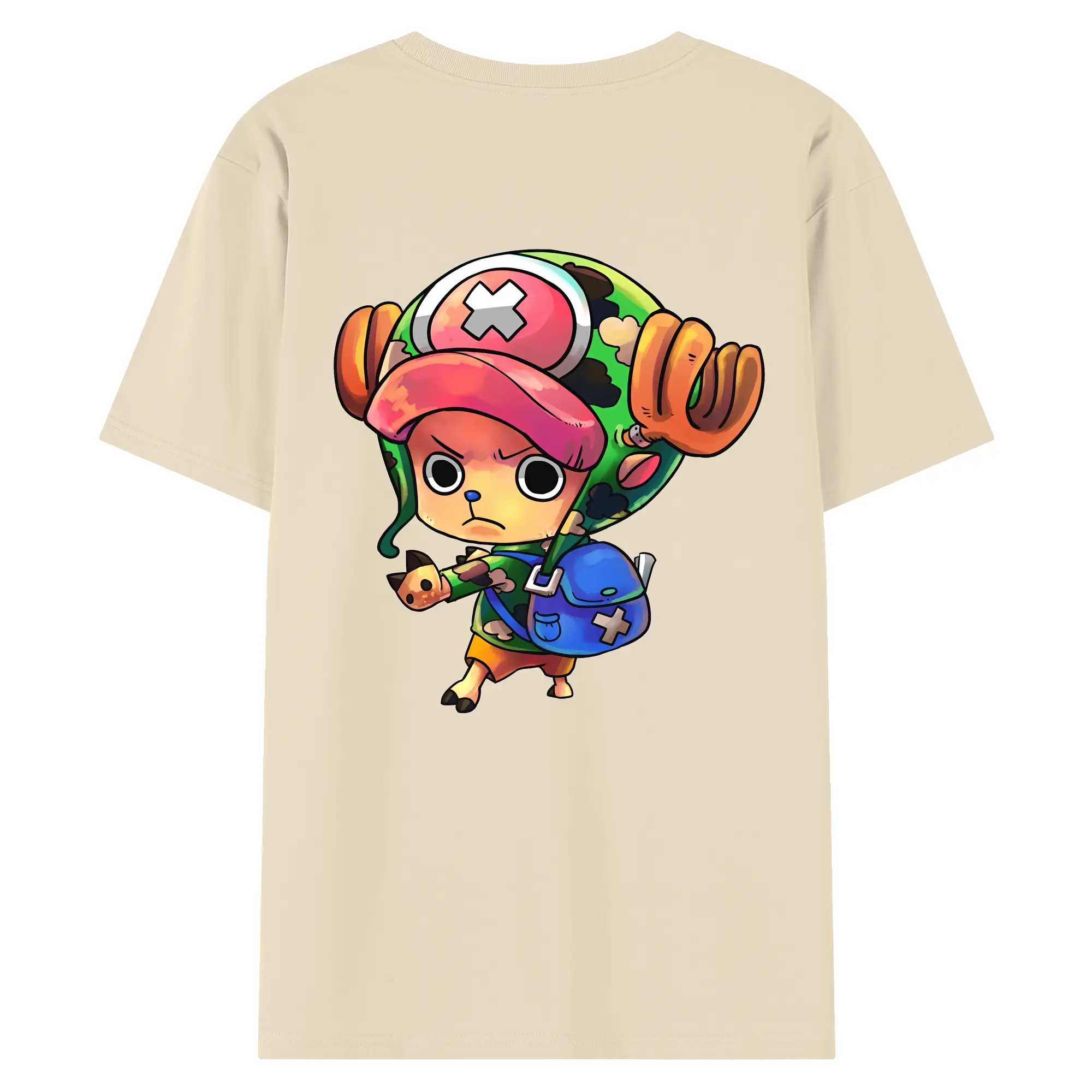ワンピース グッズ トニートニー・チョッパー - 綿100% ヴィンテージ風 半袖Tシャツ ・ 背面プリント ・ 柔らか肌触り ・ 通気性 快適 ・ スポーツ カジュアル 外出用