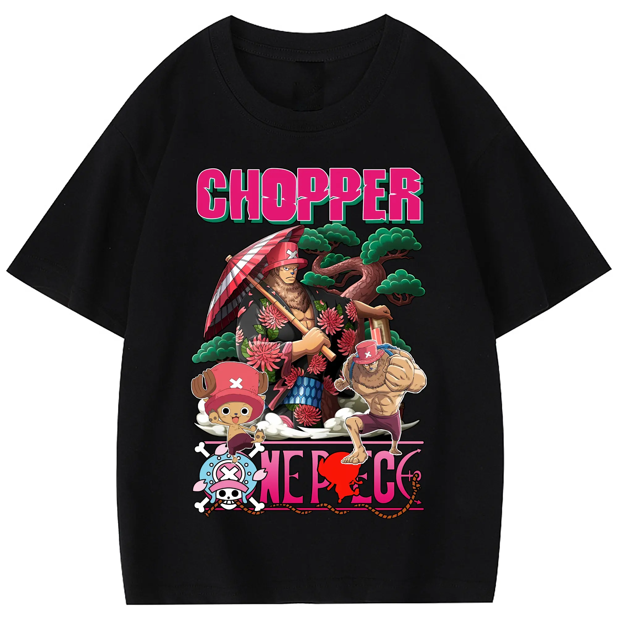 ワンピース グッズ トニートニー・チョッパー - 綿100% 半袖Tシャツ ・ フロントプリント ・ 快適 通気性 ・ 日常使い 散歩 スポーツ用