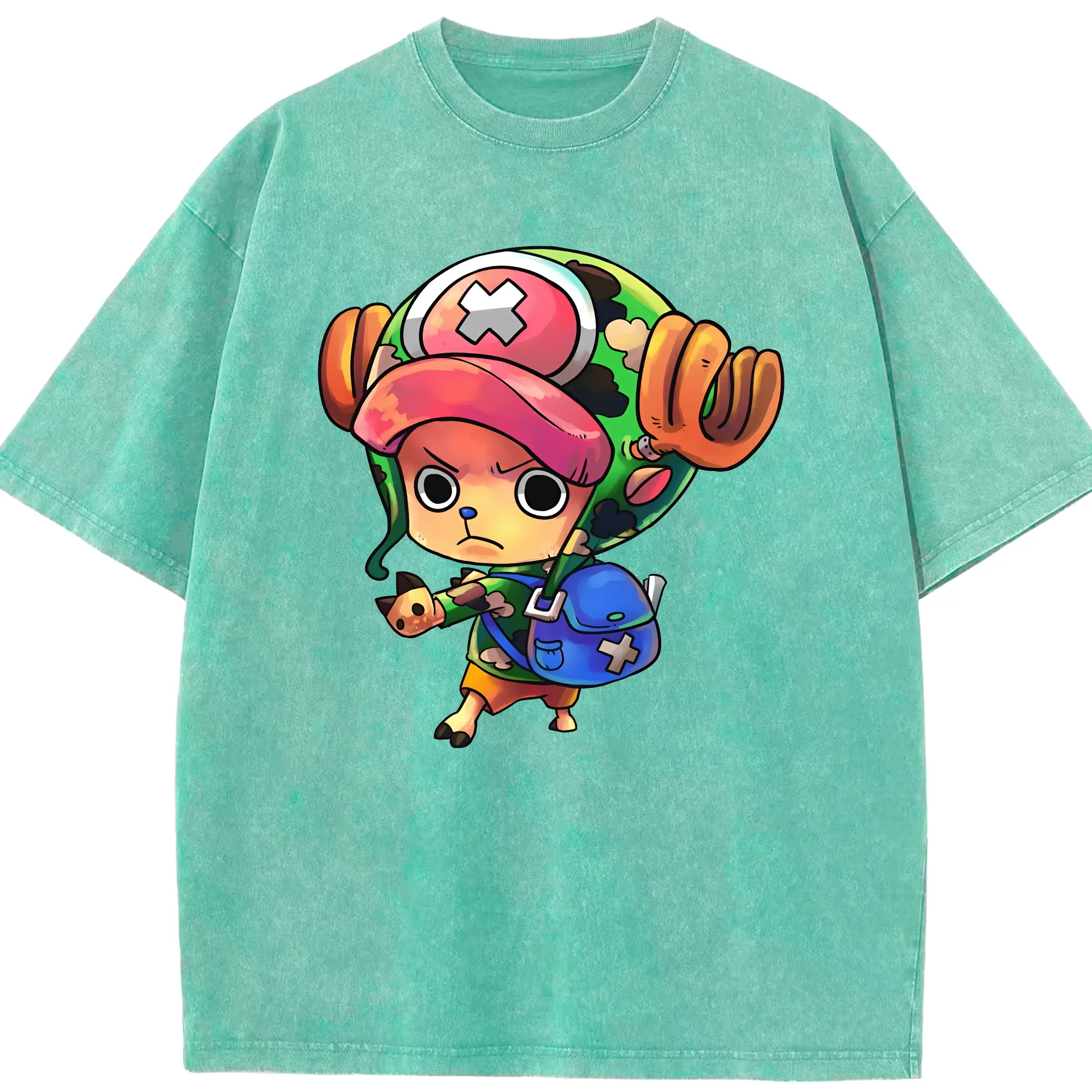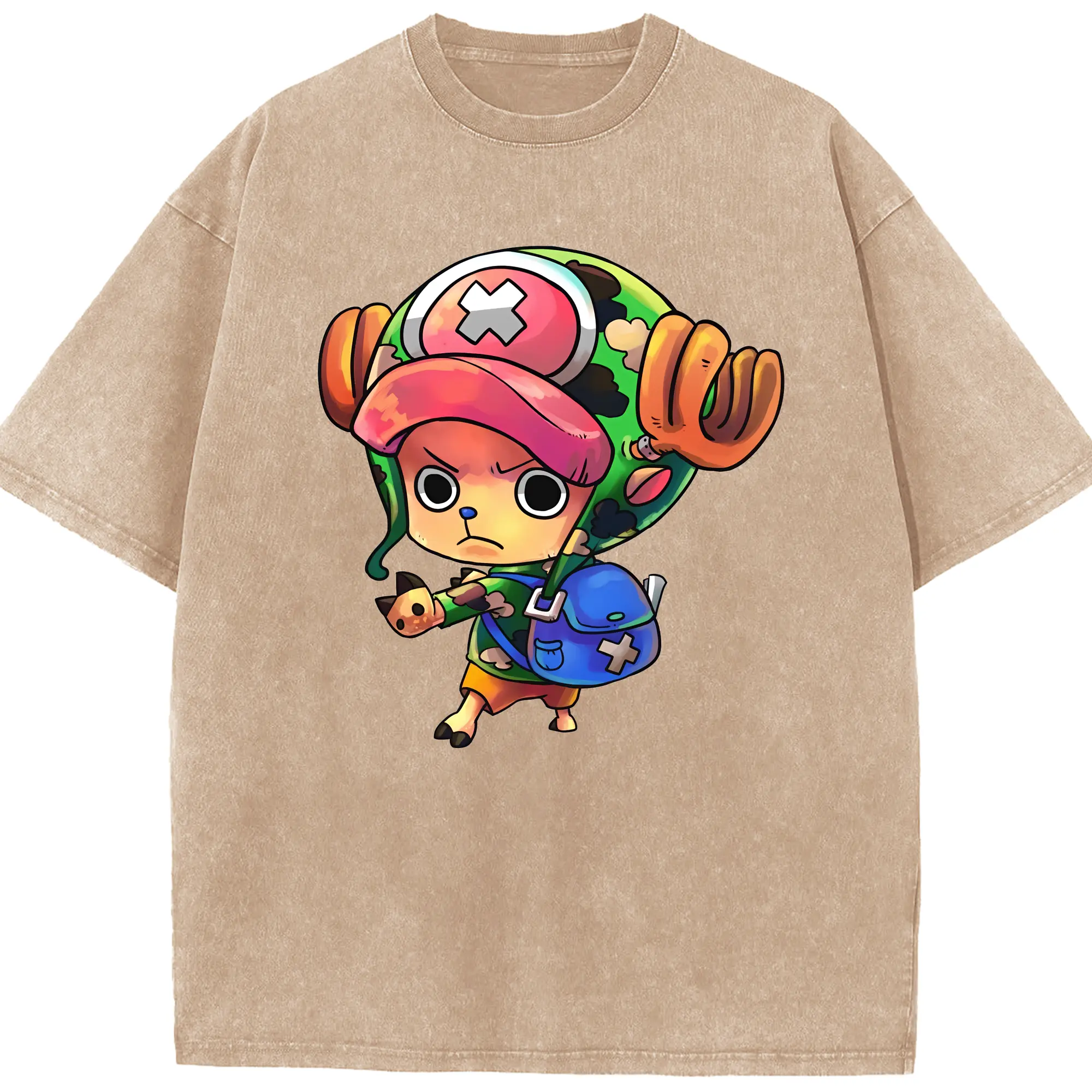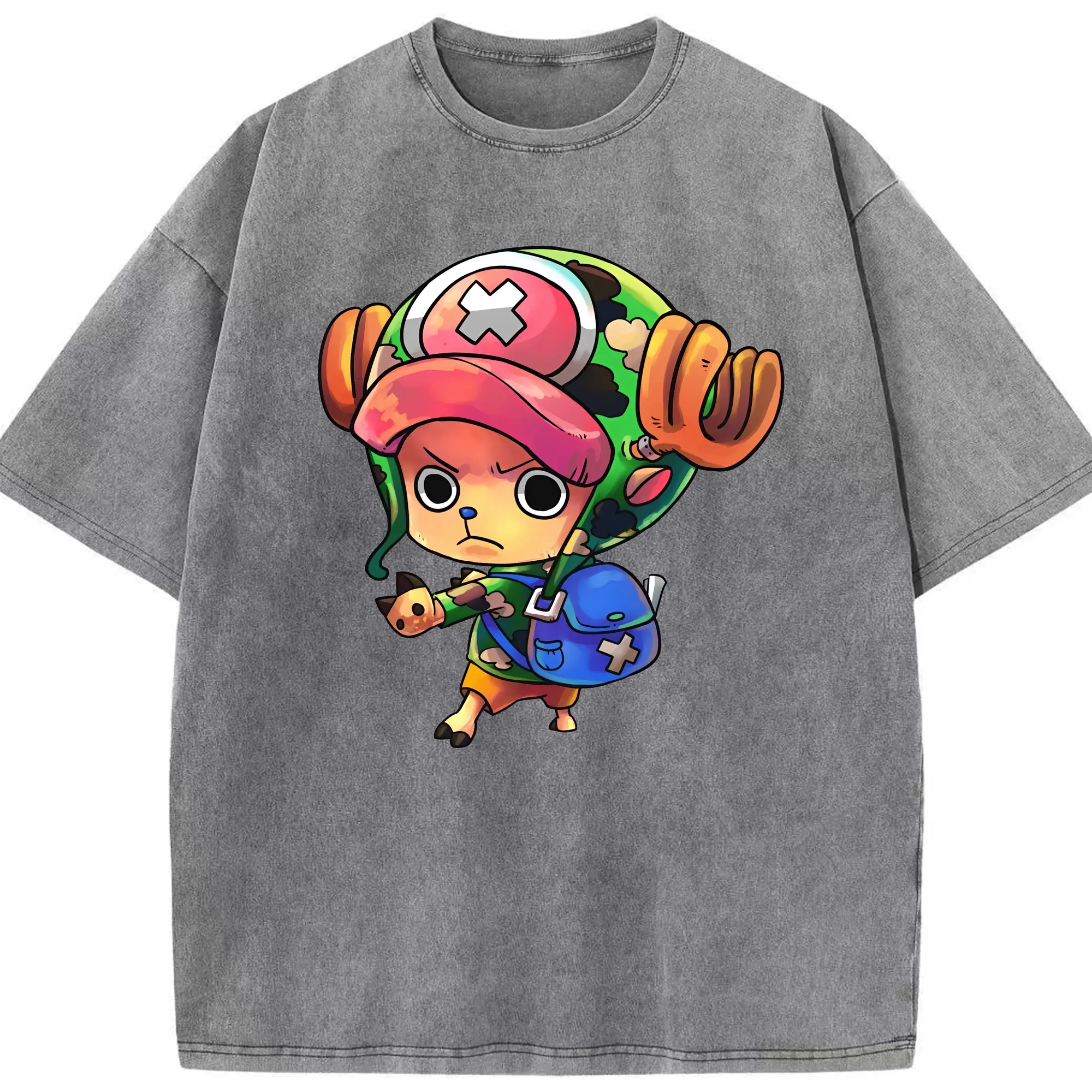 ワンピース グッズ トニートニー・チョッパー - 綿100% ヴィンテージ風 半袖Tシャツ ・ 背面プリント ・ 柔らか肌触り ・ 通気性 快適 ・ スポーツ カジュアル 外出用