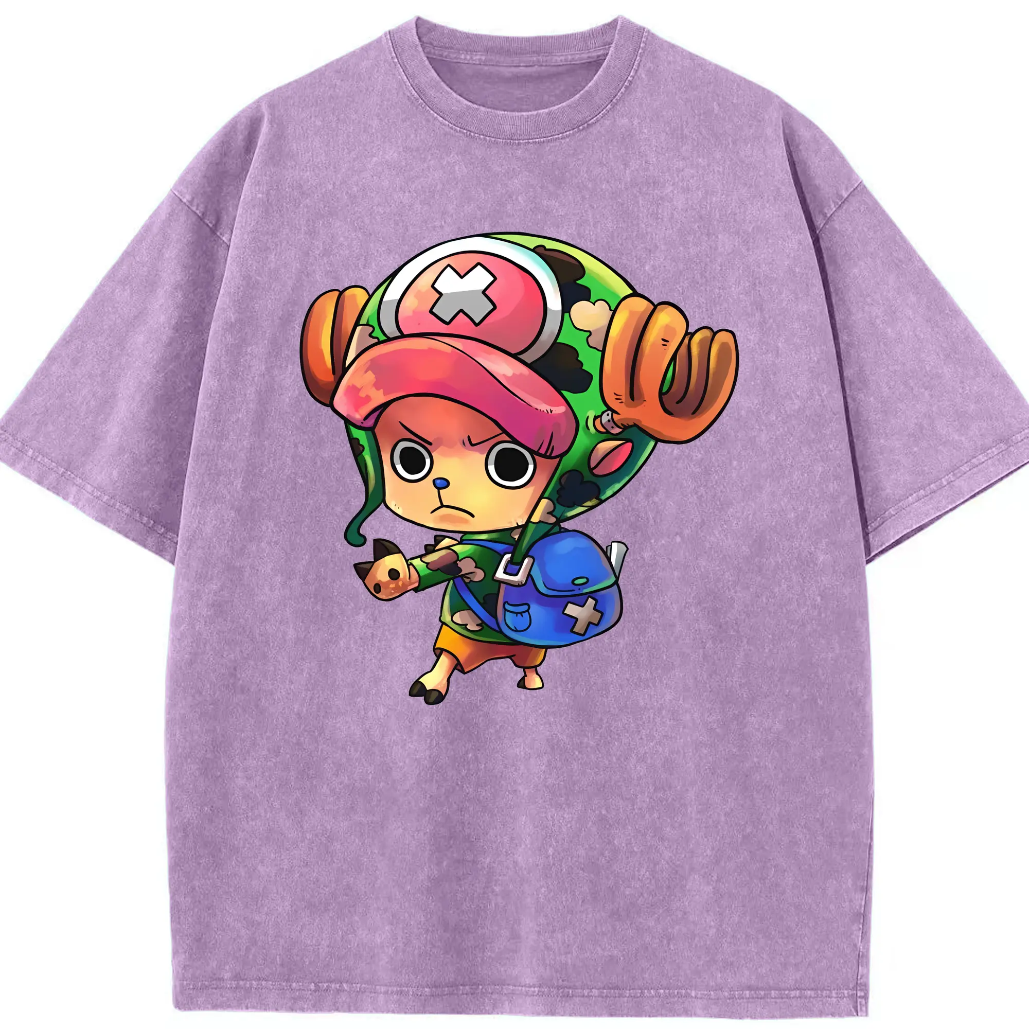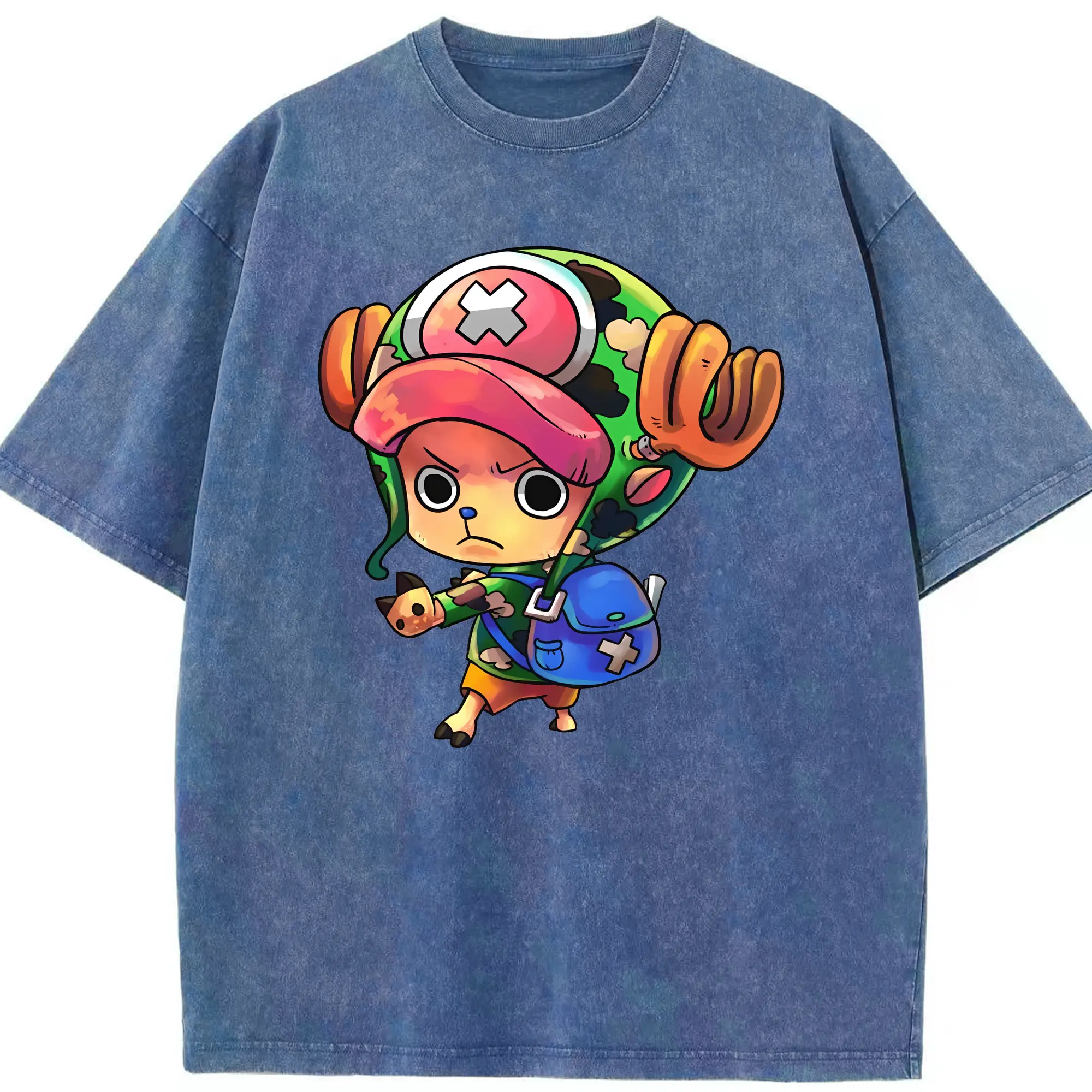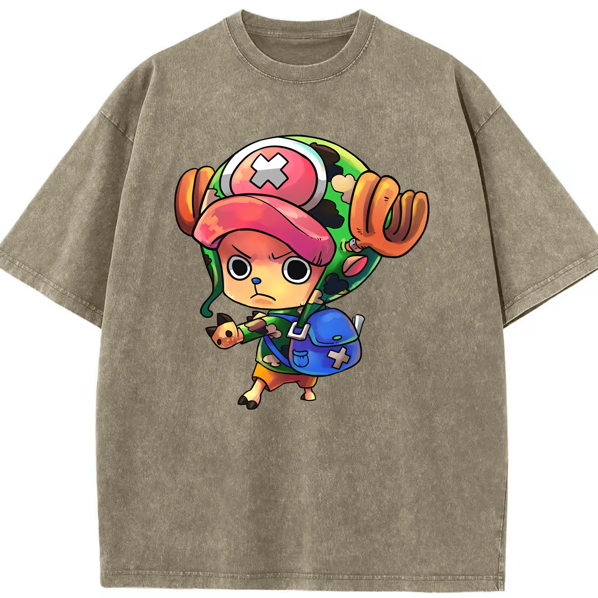 ワンピース グッズ トニートニー・チョッパー - 綿100% ヴィンテージ風 半袖Tシャツ ・ 背面プリント ・ 柔らか肌触り ・ 通気性 快適 ・ スポーツ カジュアル 外出用