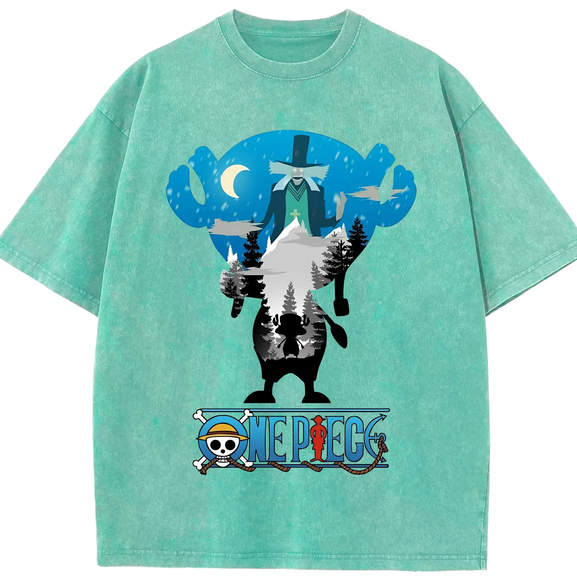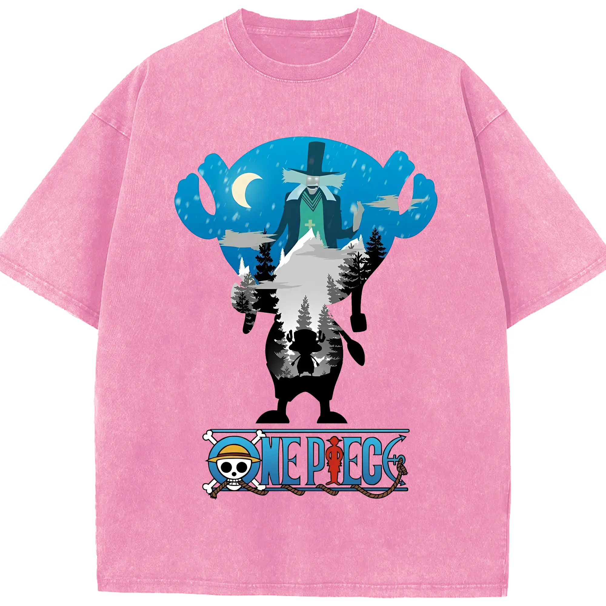 ワンピース グッズ トニートニー・チョッパー - 綿100% ヴィンテージ風 半袖Tシャツ ・ 背面プリント ・ 柔らか肌触り ・ 通気性 快適 ・ スポーツ カジュアル 外出用