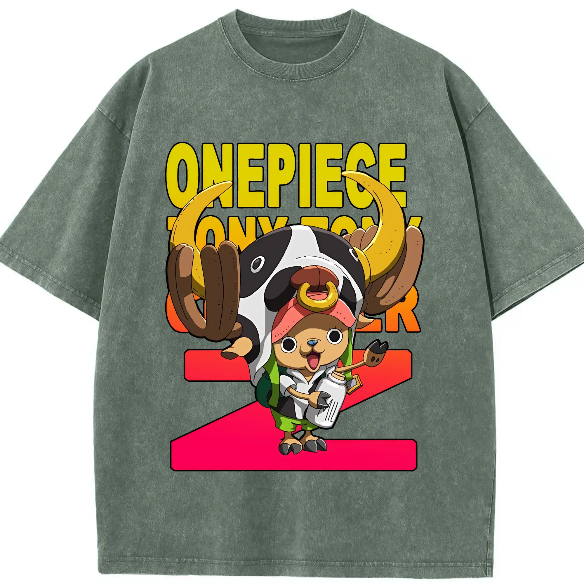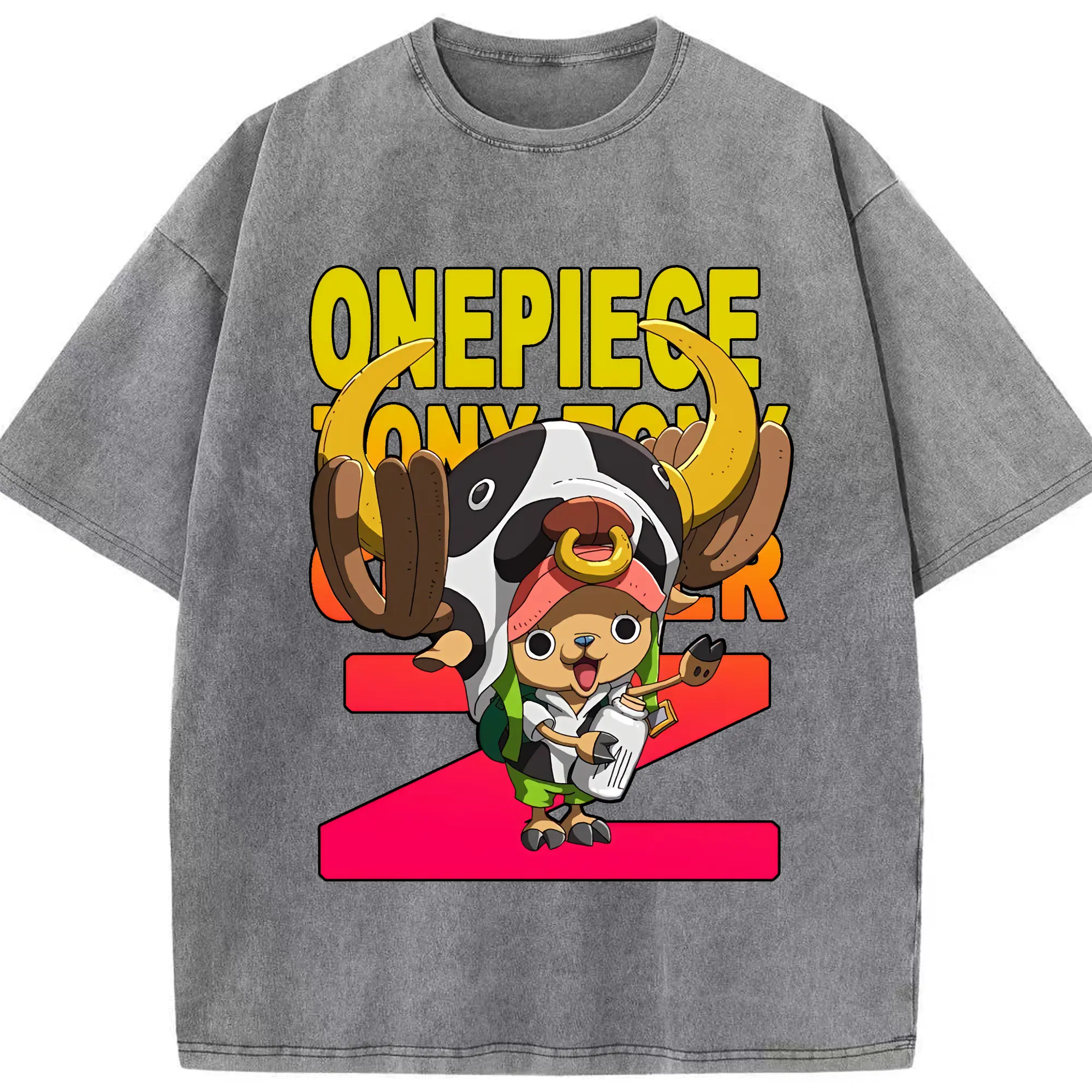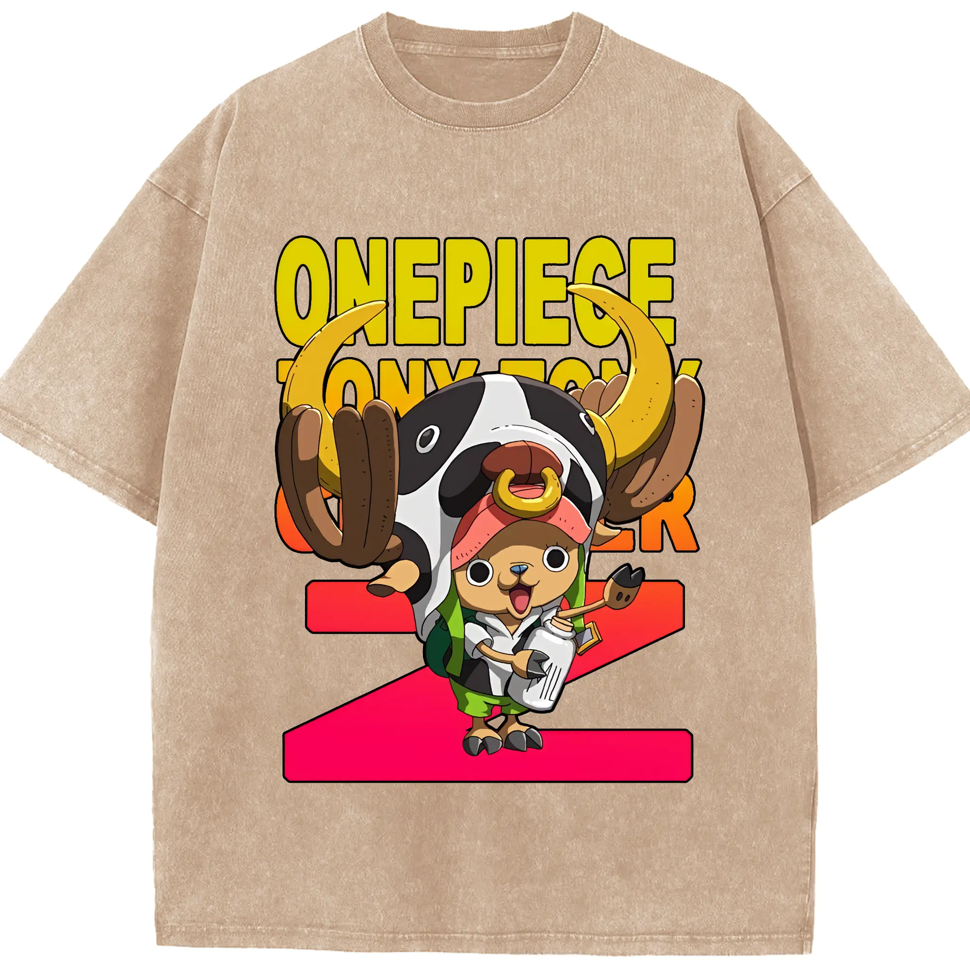ワンピース グッズ トニートニー・チョッパー - 綿100% ヴィンテージ風 半袖Tシャツ ・ 背面プリント ・ 柔らか肌触り ・ 通気性 快適 ・ スポーツ カジュアル 外出用