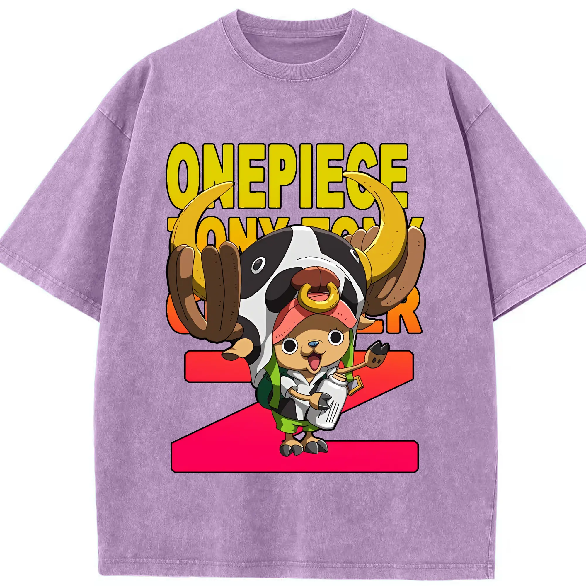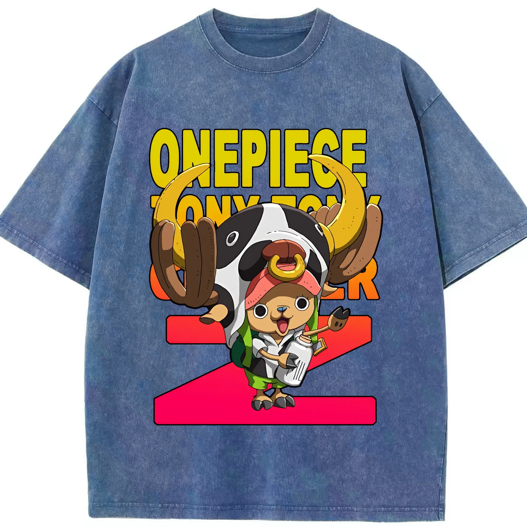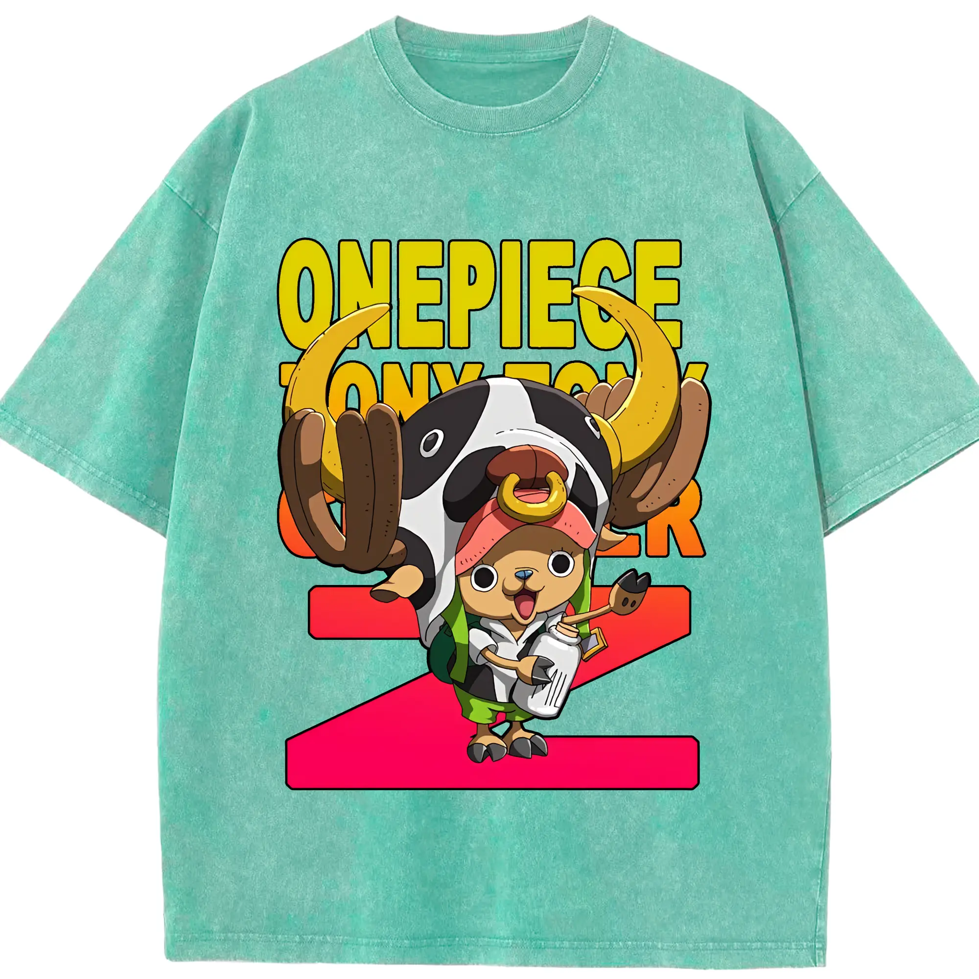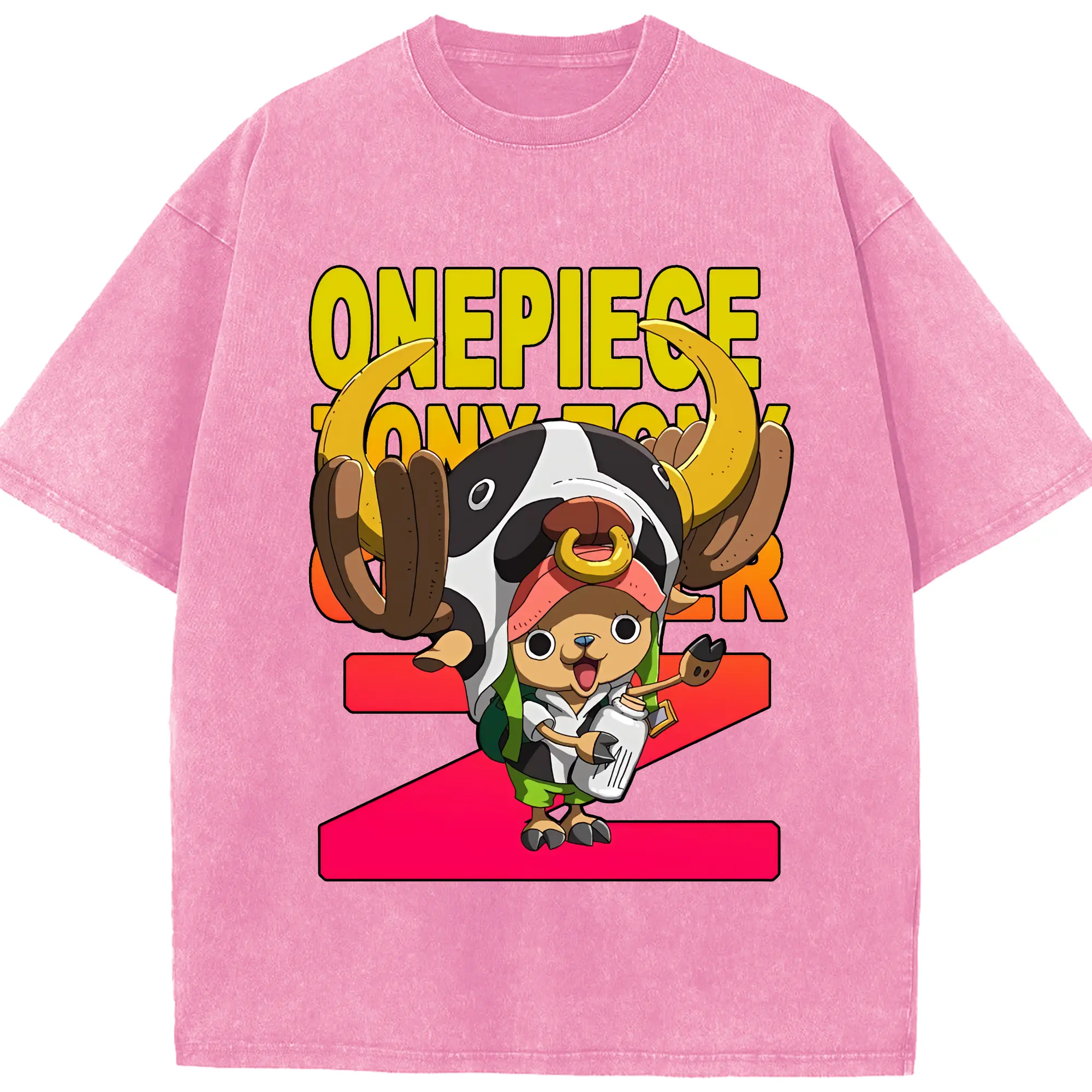 ワンピース グッズ トニートニー・チョッパー - 綿100% ヴィンテージ風 半袖Tシャツ ・ 背面プリント ・ 柔らか肌触り ・ 通気性 快適 ・ スポーツ カジュアル 外出用