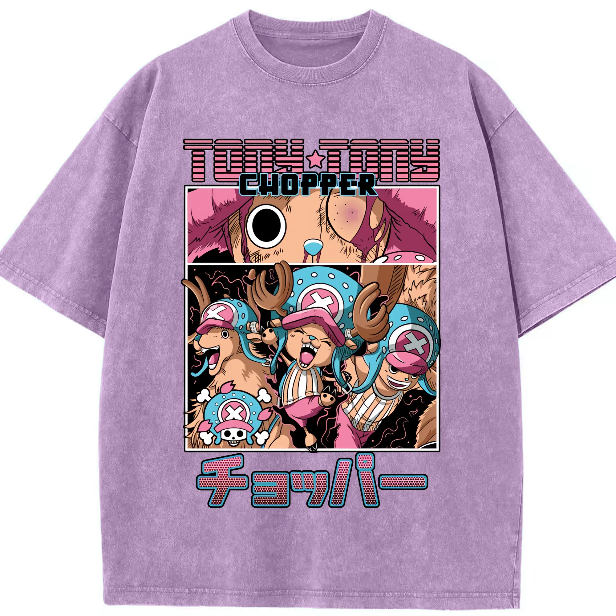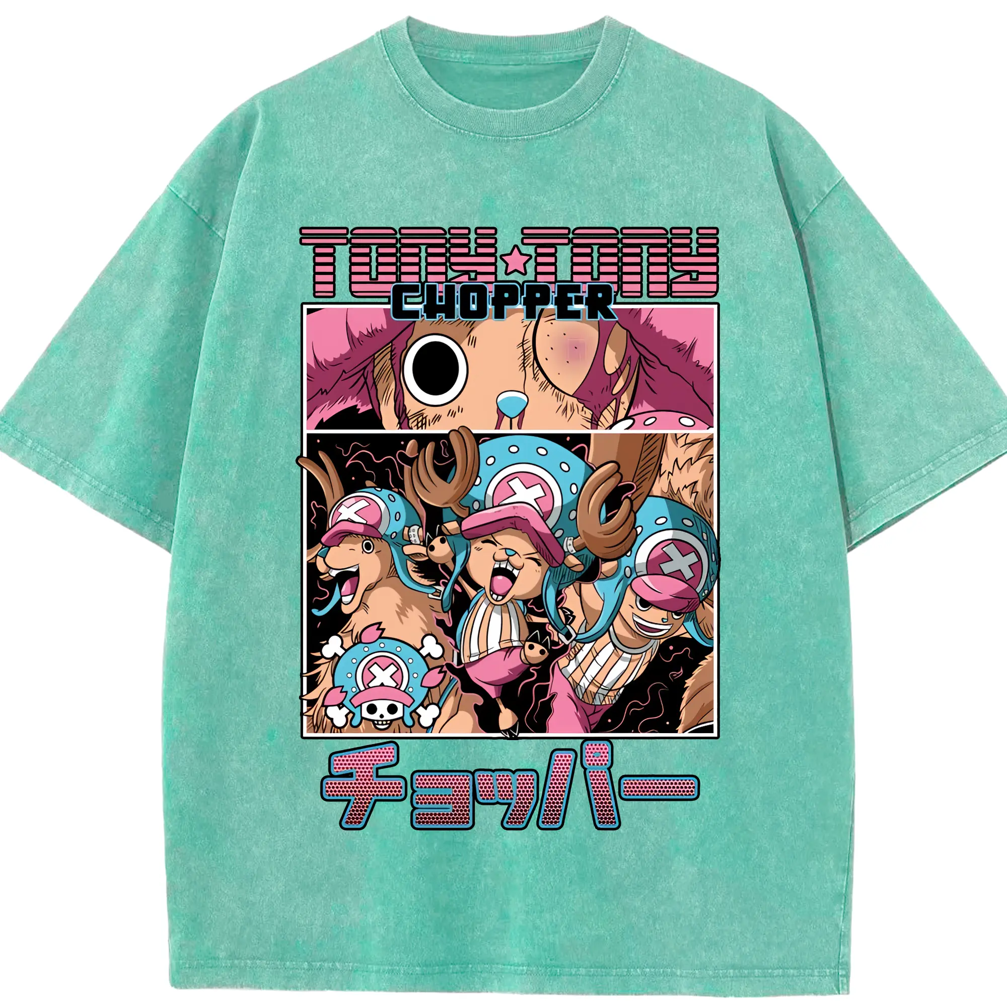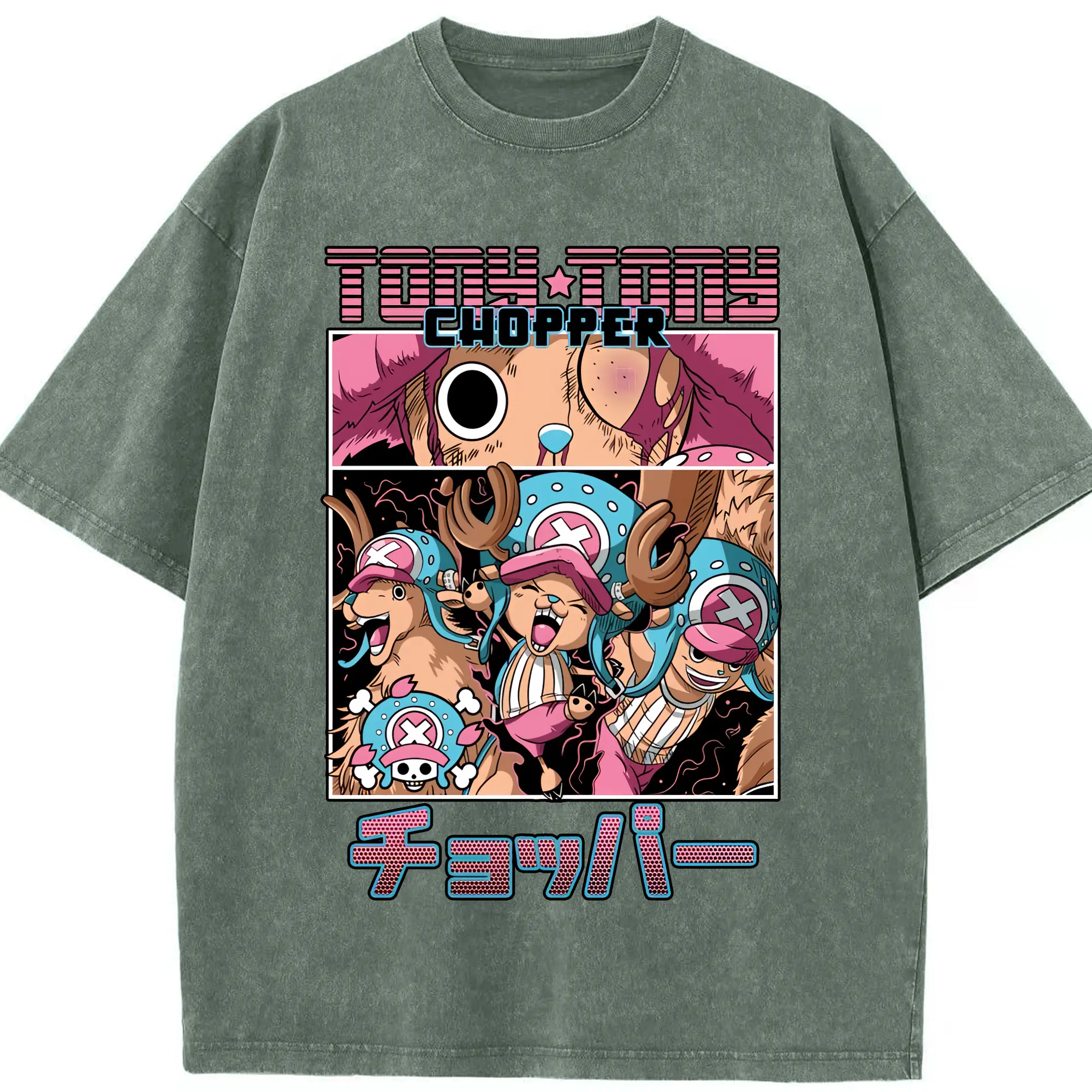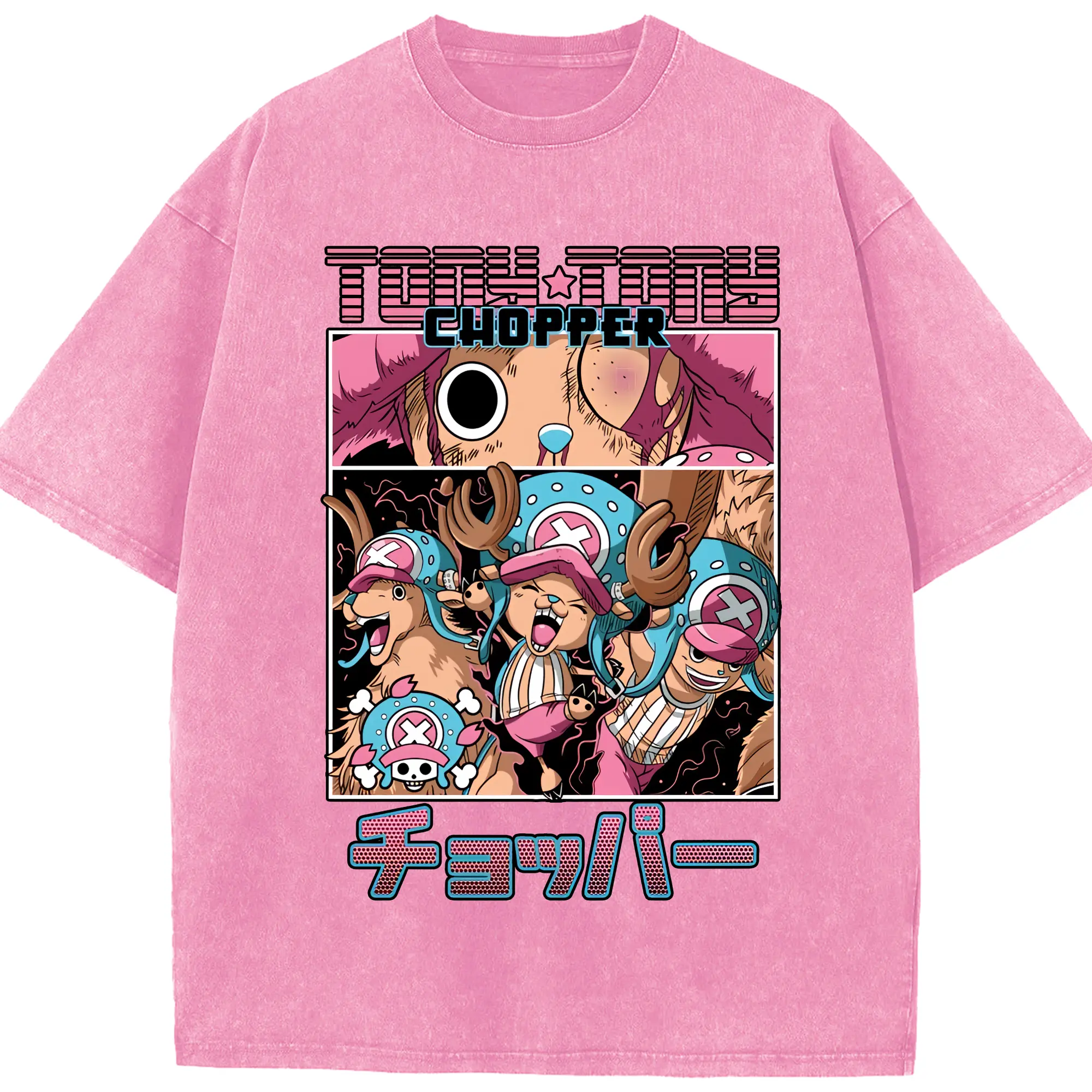 ワンピース グッズ トニートニー・チョッパー - 綿100% ヴィンテージ風 半袖Tシャツ ・ 背面プリント ・ 柔らか肌触り ・ 通気性 快適 ・ スポーツ カジュアル 外出用