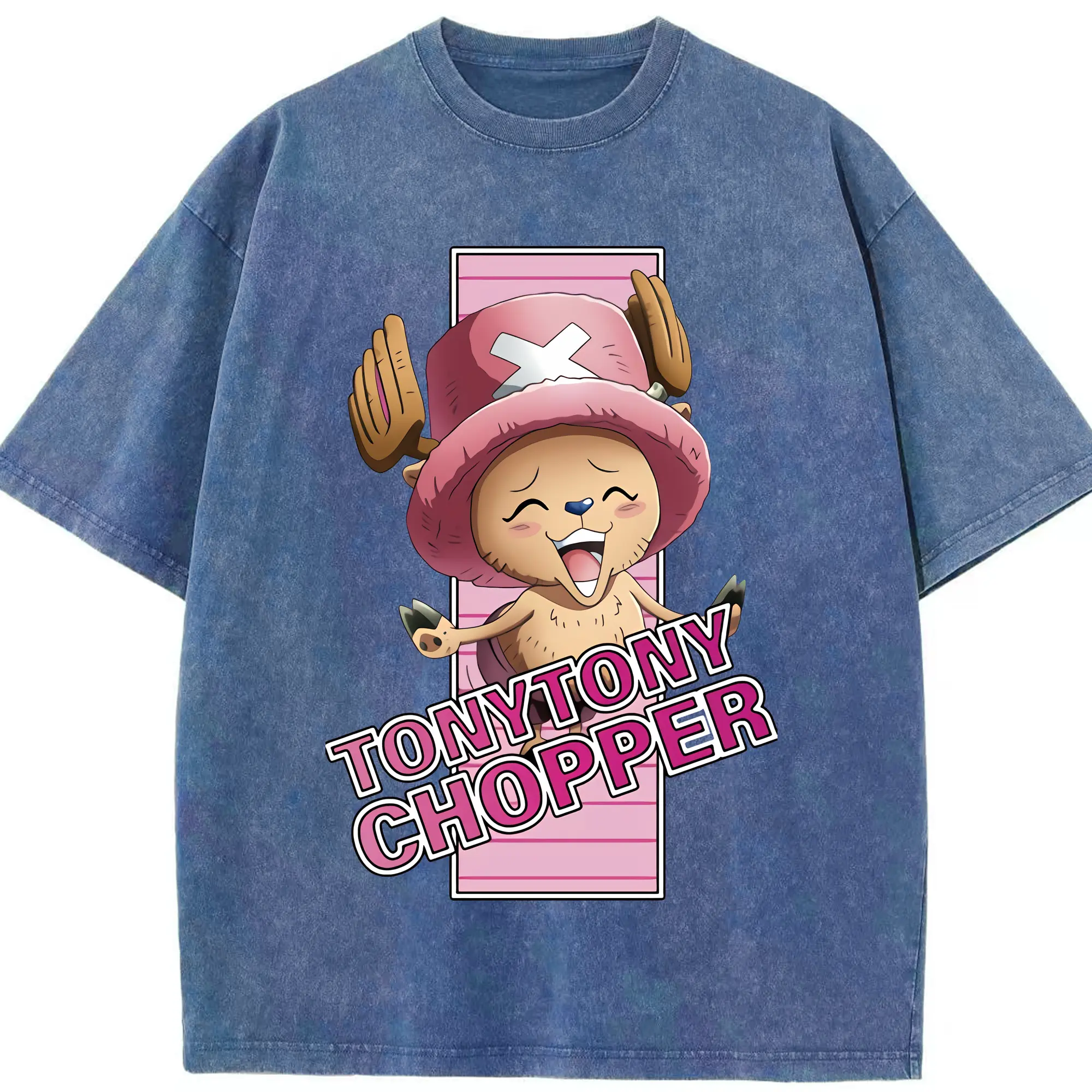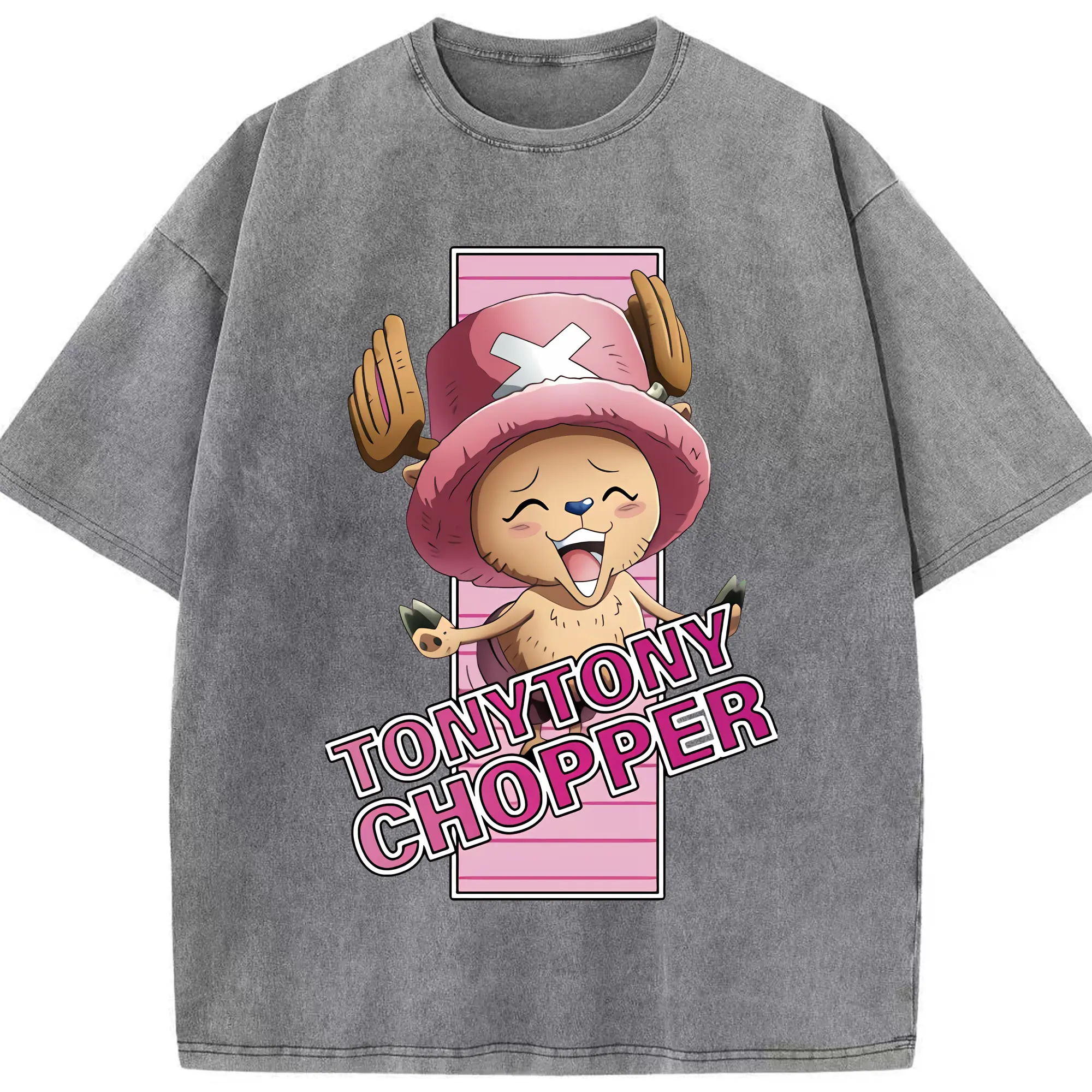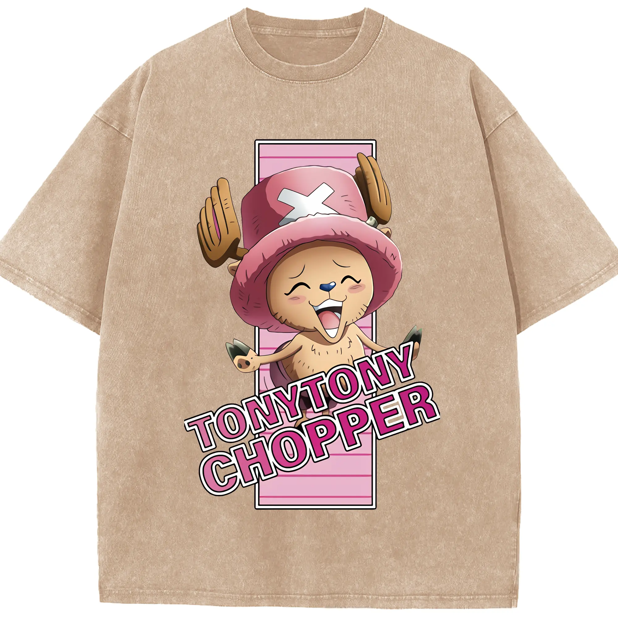 ワンピース グッズ トニートニー・チョッパー - 綿100% ヴィンテージ風 半袖Tシャツ ・ 背面プリント ・ 柔らか肌触り ・ 通気性 快適 ・ スポーツ カジュアル 外出用