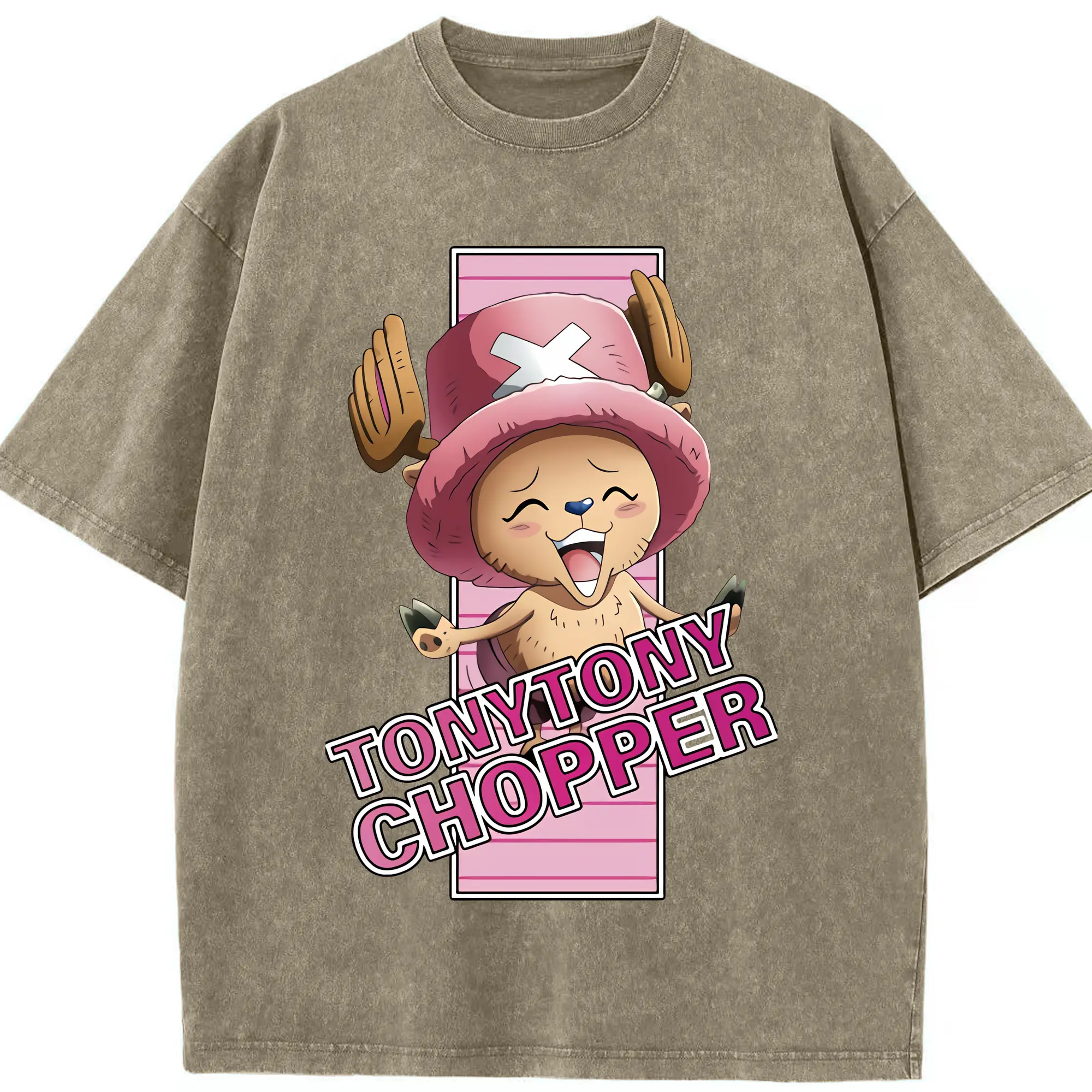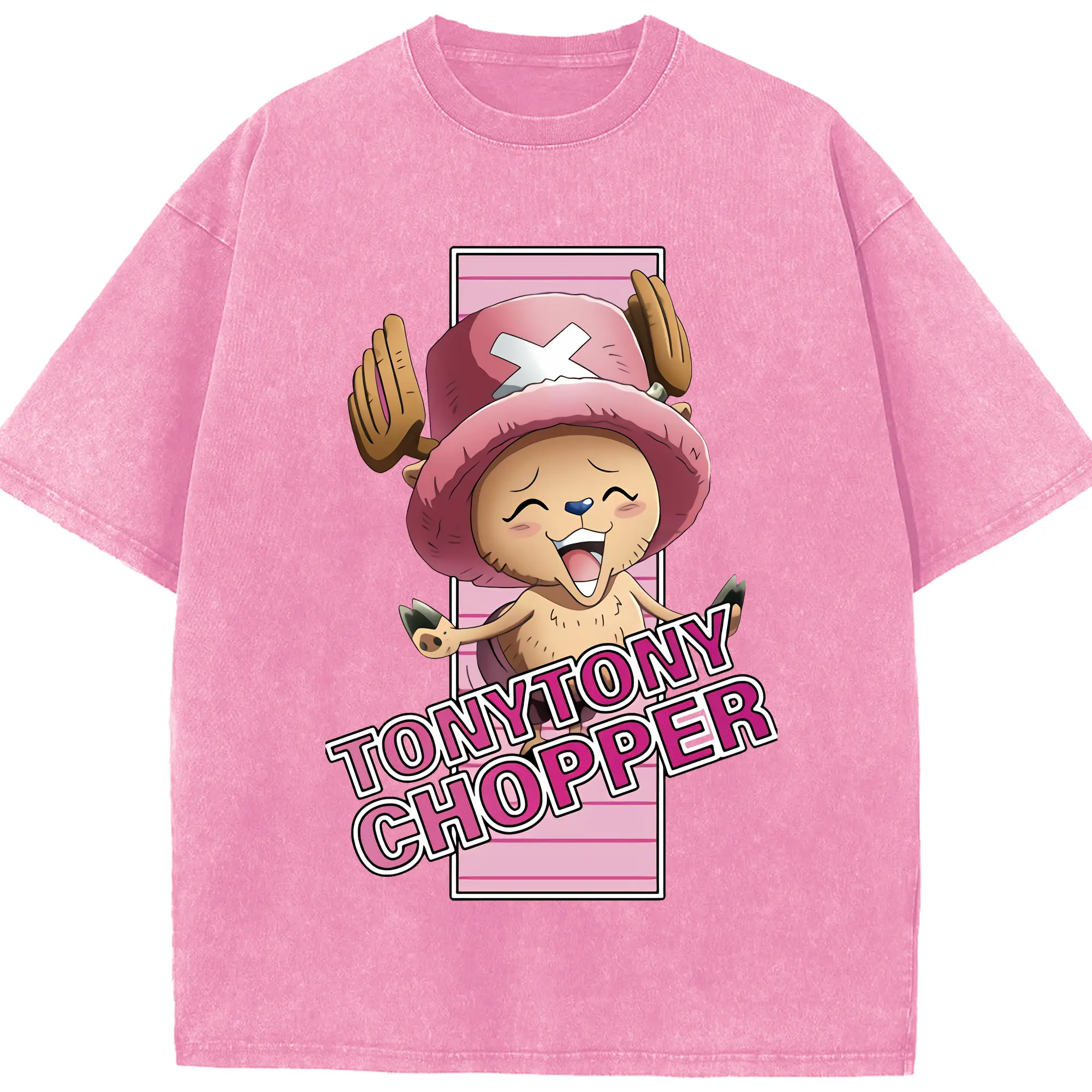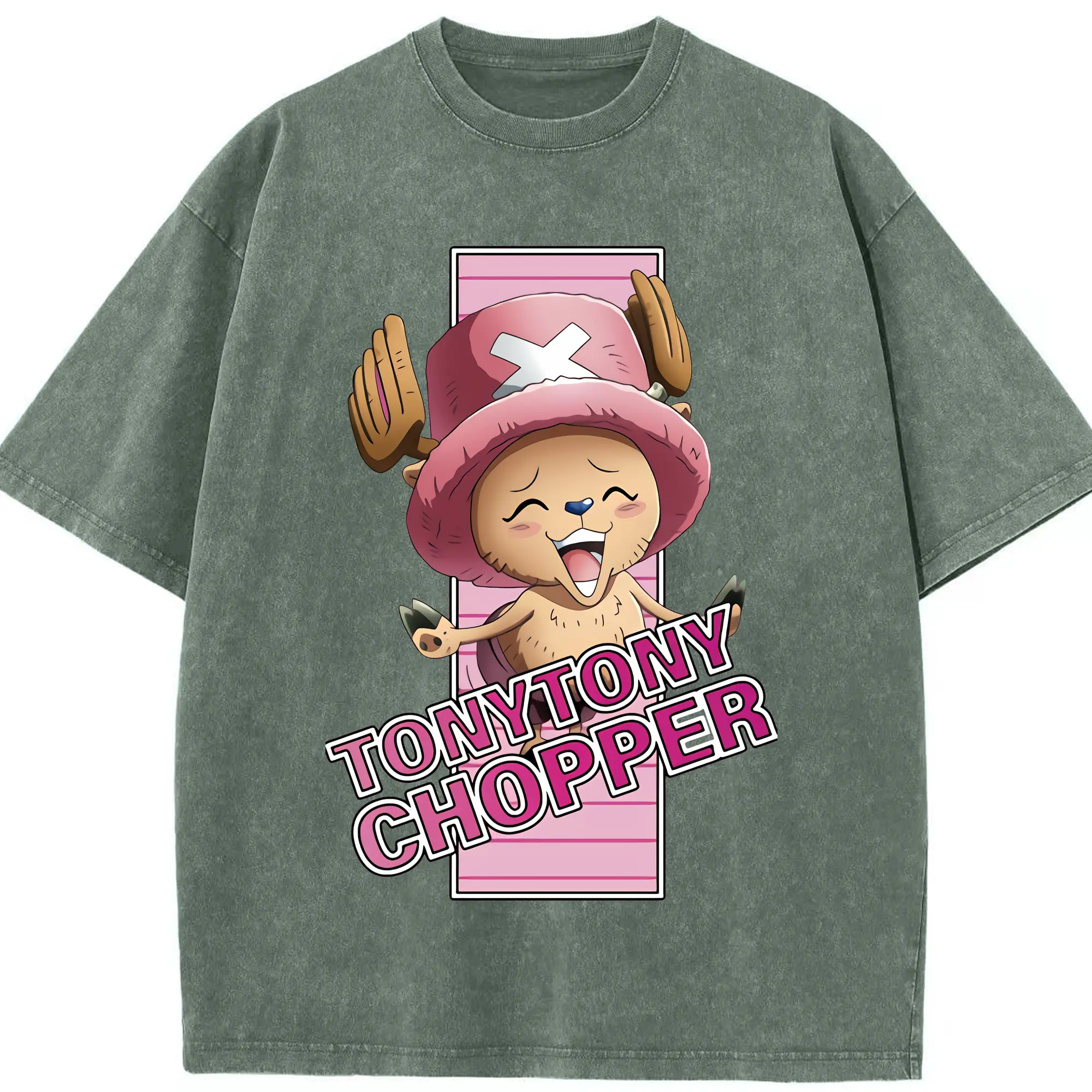 ワンピース グッズ トニートニー・チョッパー - 綿100% ヴィンテージ風 半袖Tシャツ ・ 背面プリント ・ 柔らか肌触り ・ 通気性 快適 ・ スポーツ カジュアル 外出用