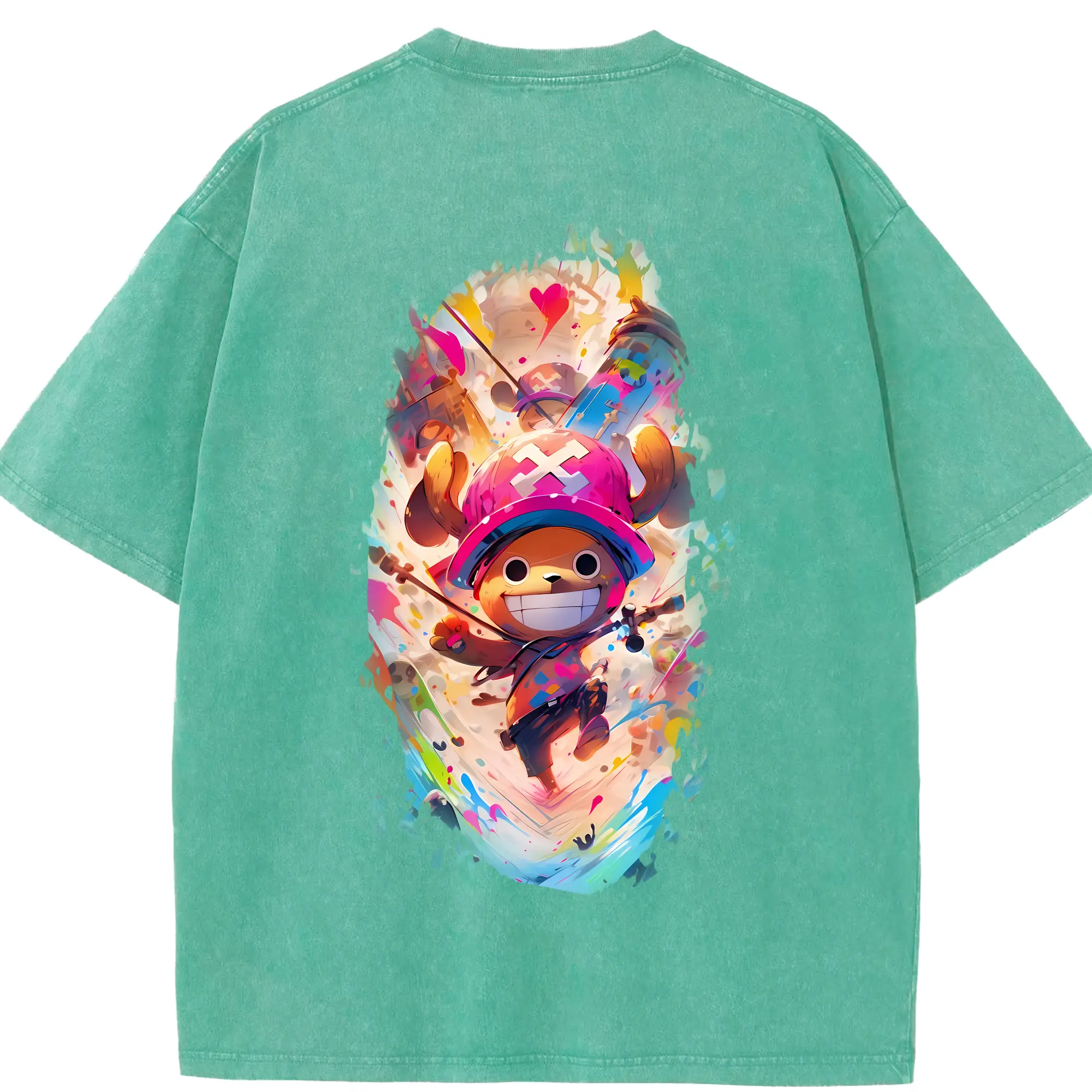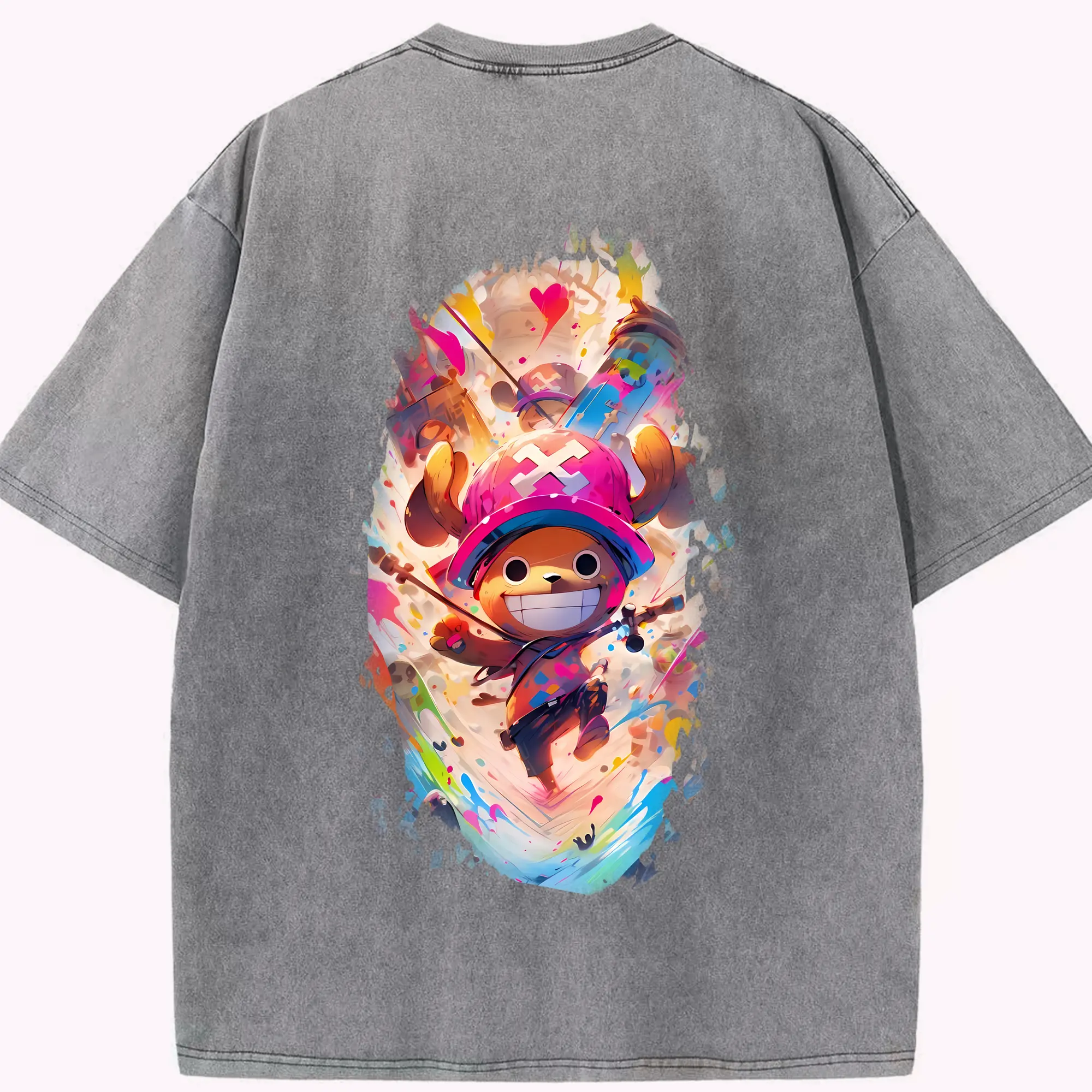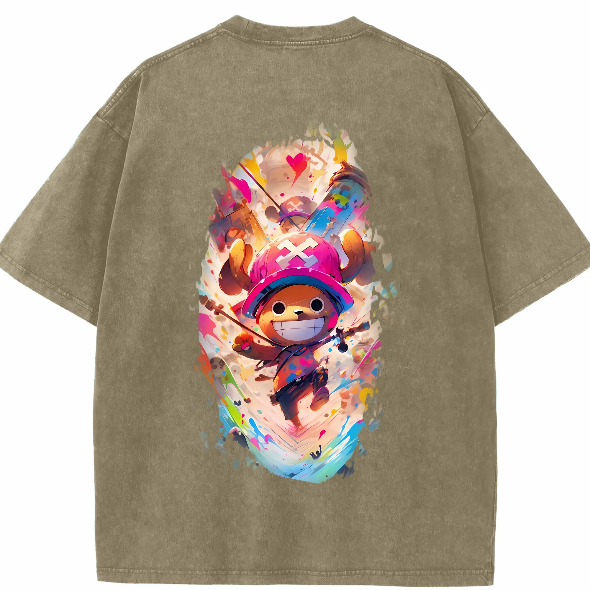 ワンピース グッズ トニートニー・チョッパー - 綿100% ヴィンテージ風 半袖Tシャツ ・ フロントプリント ・ 柔らか肌触り ・ 通気性 快適 ・ スポーツ カジュアル 外出用