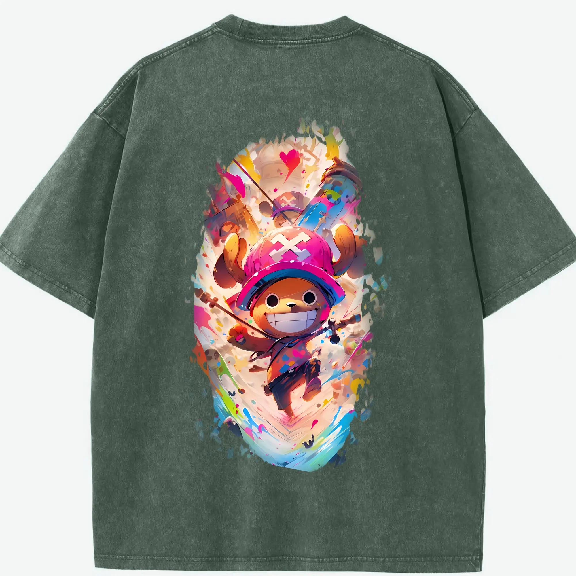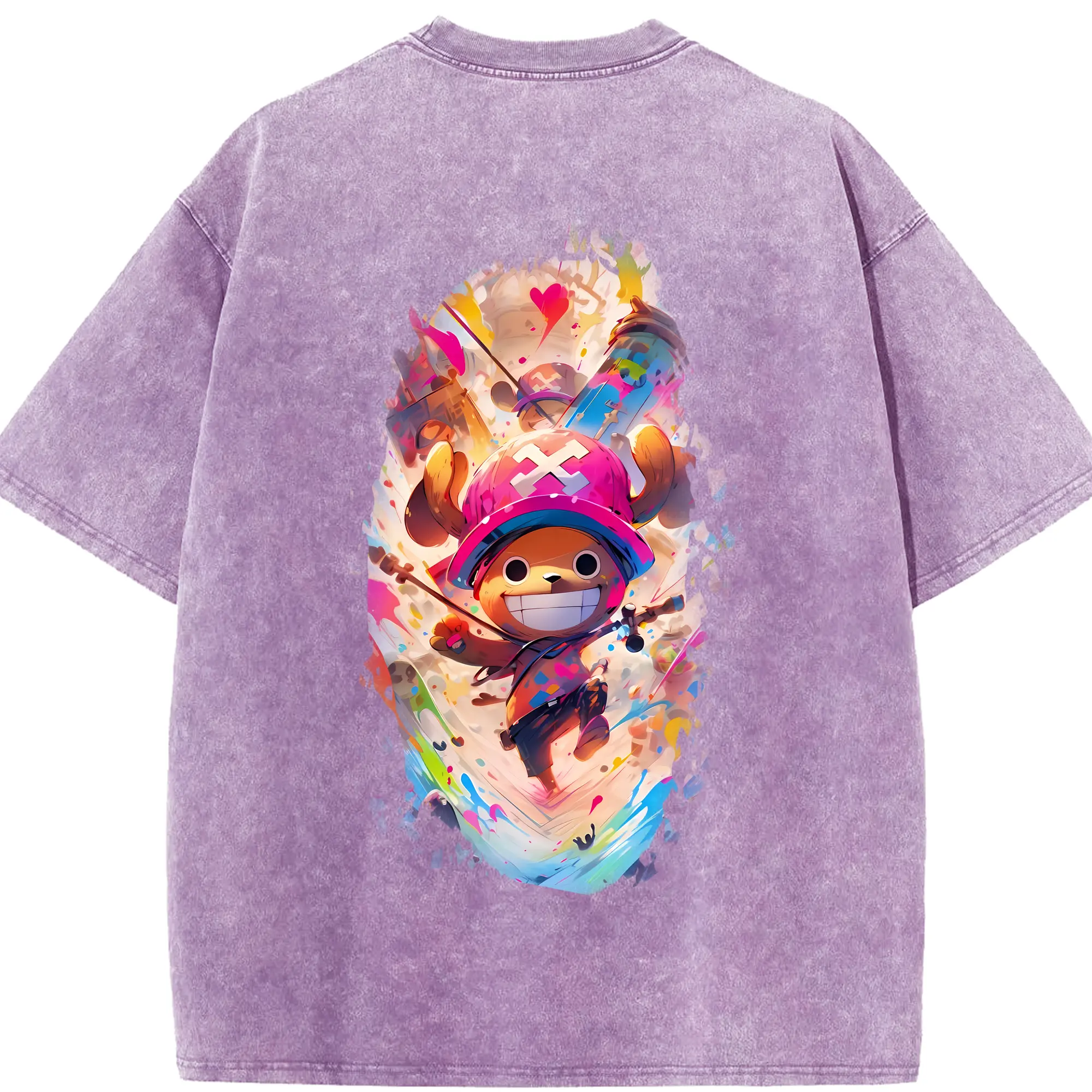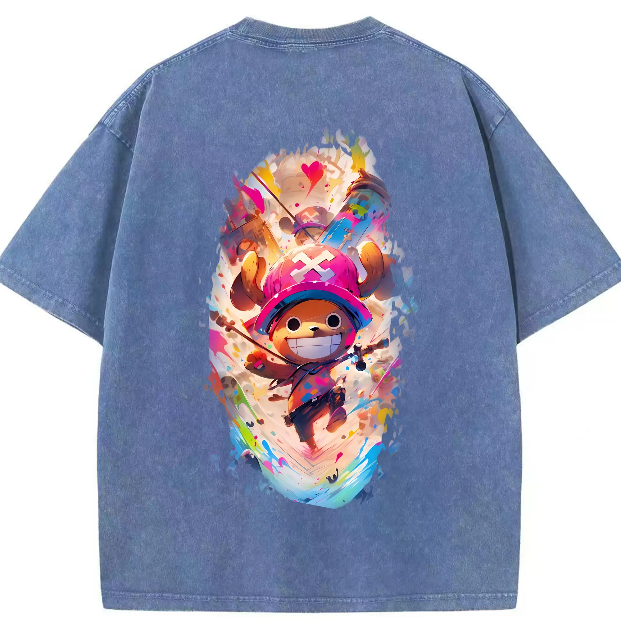 ワンピース グッズ トニートニー・チョッパー - 綿100% ヴィンテージ風 半袖Tシャツ ・ フロントプリント ・ 柔らか肌触り ・ 通気性 快適 ・ スポーツ カジュアル 外出用