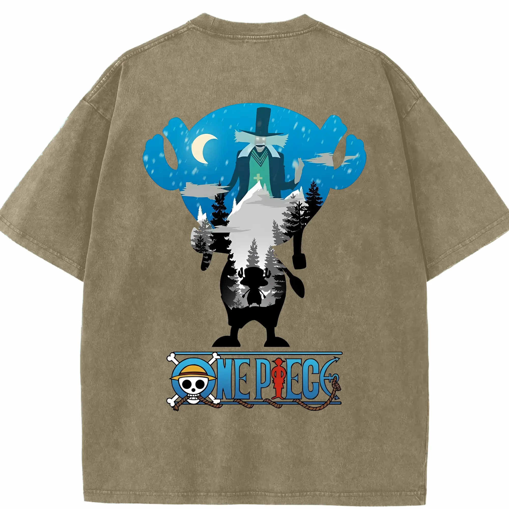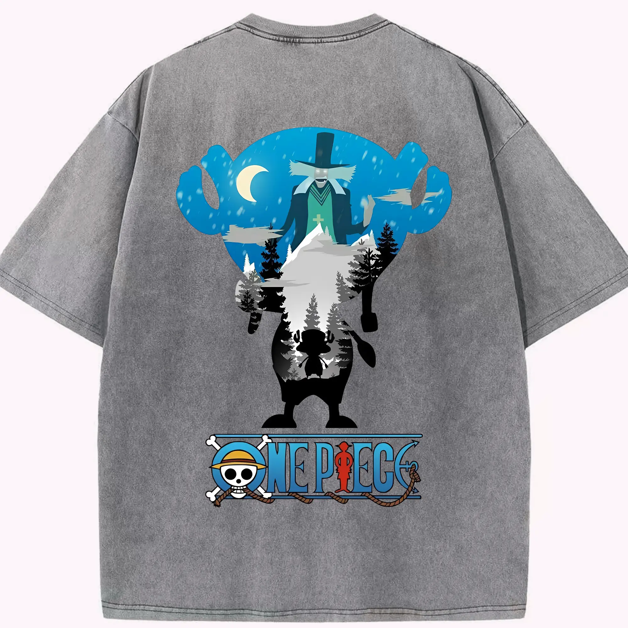 ワンピース グッズ トニートニー・チョッパー - 綿100% ヴィンテージ風 半袖Tシャツ ・ フロントプリント ・ 柔らか肌触り ・ 通気性 快適 ・ スポーツ カジュアル 外出用