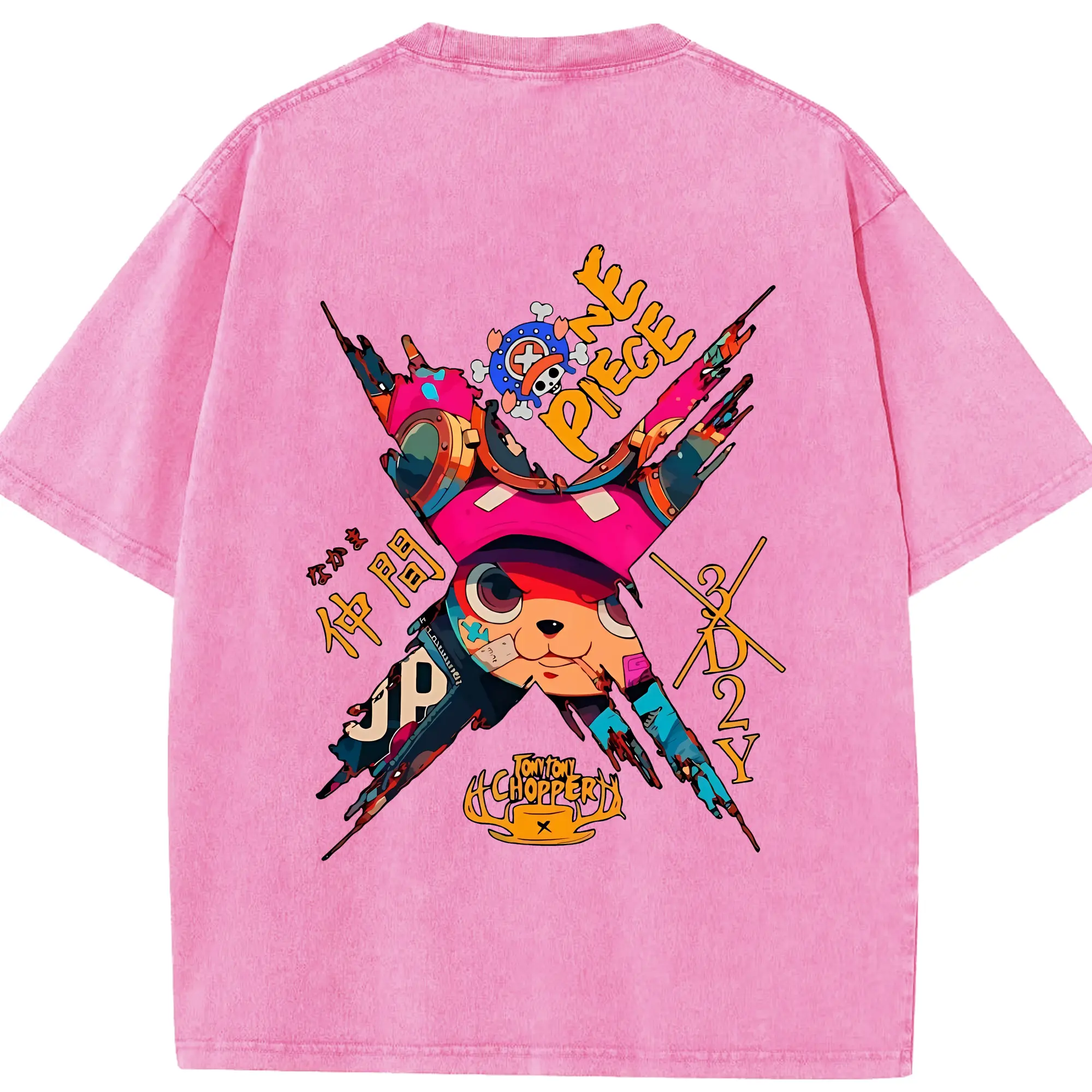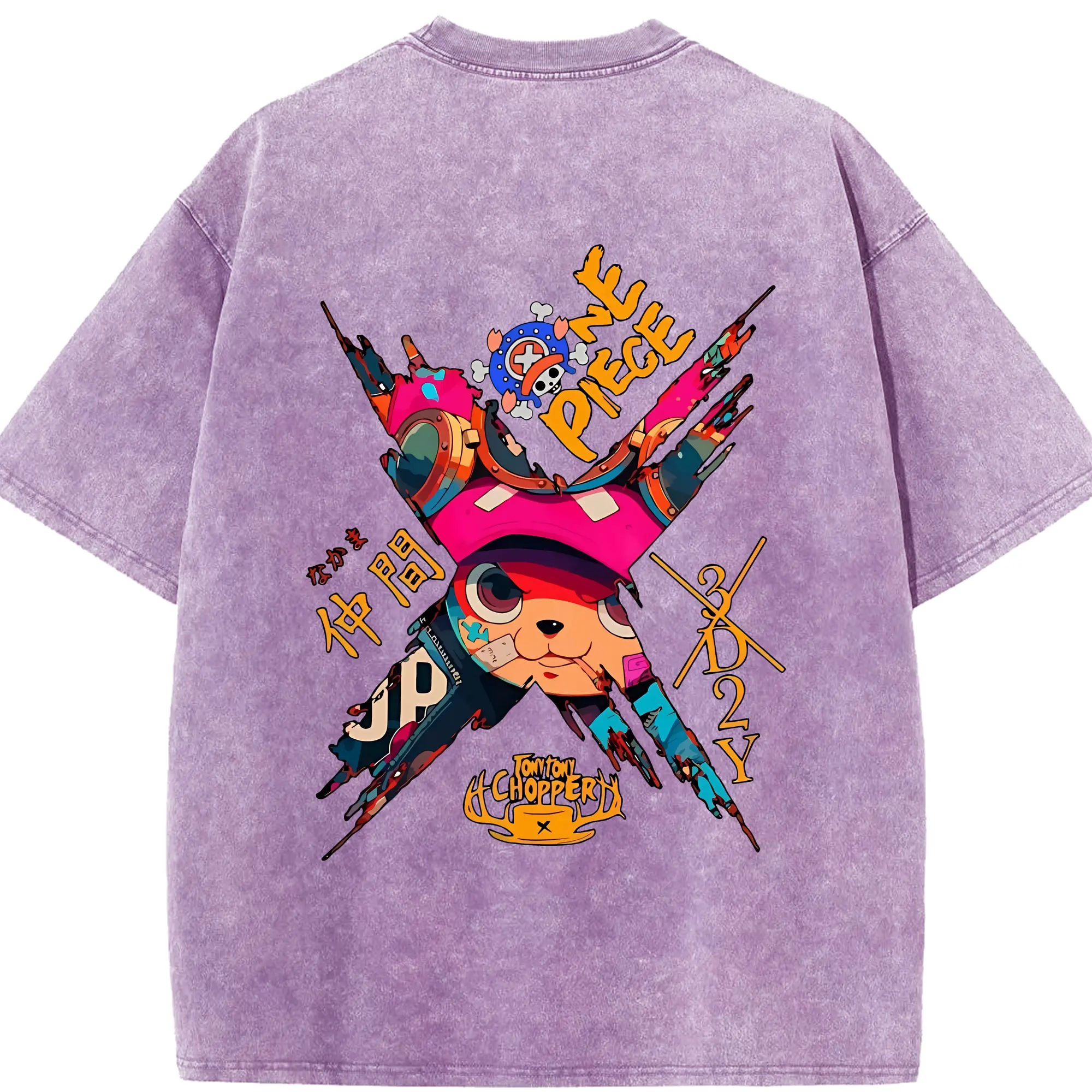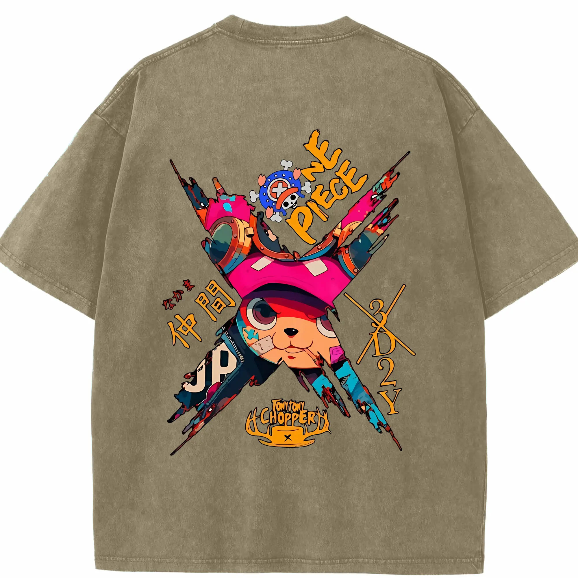 ワンピース グッズ トニートニー・チョッパー - 綿100% ヴィンテージ風 半袖Tシャツ ・ フロントプリント ・ 柔らか肌触り ・ 通気性 快適 ・ スポーツ カジュアル 外出用