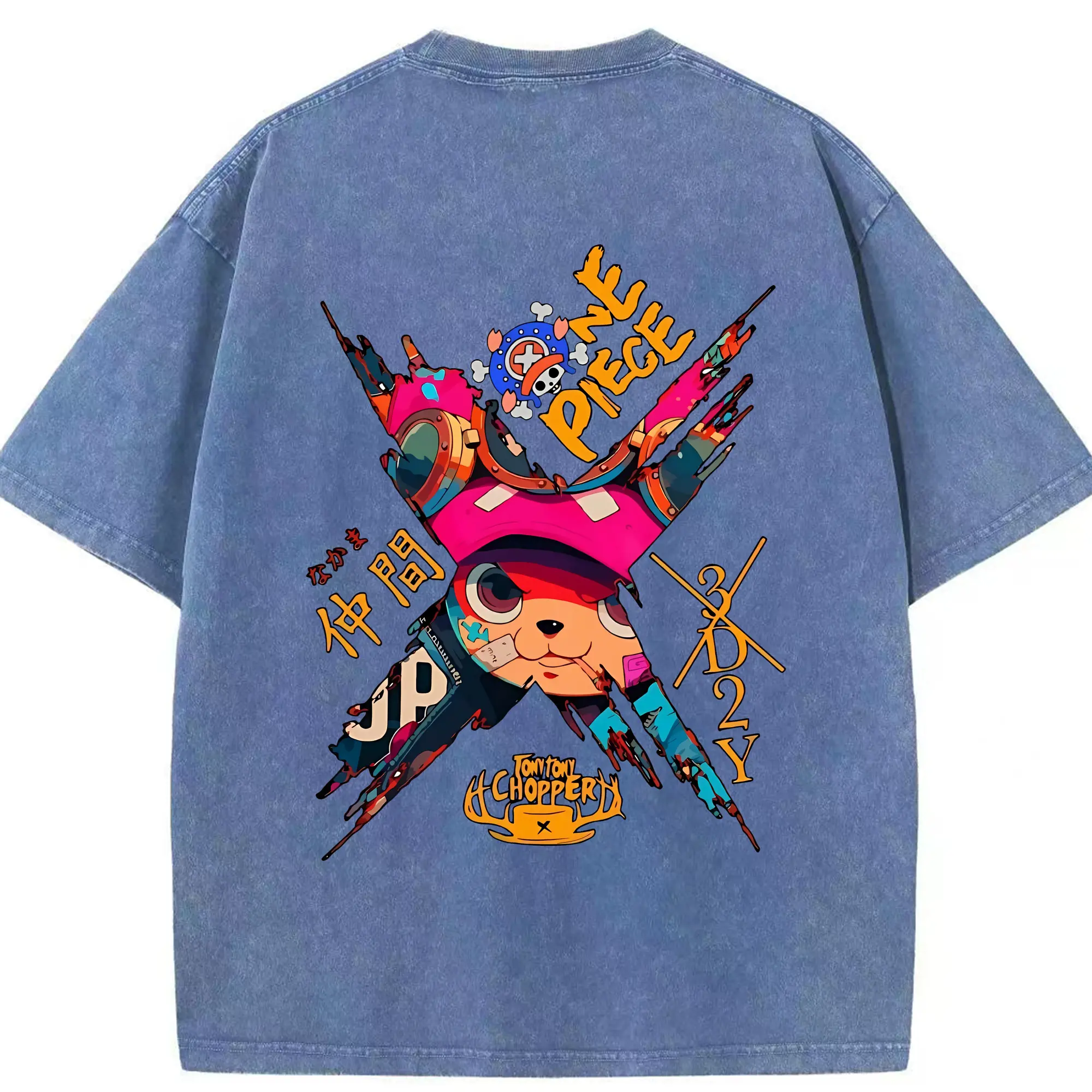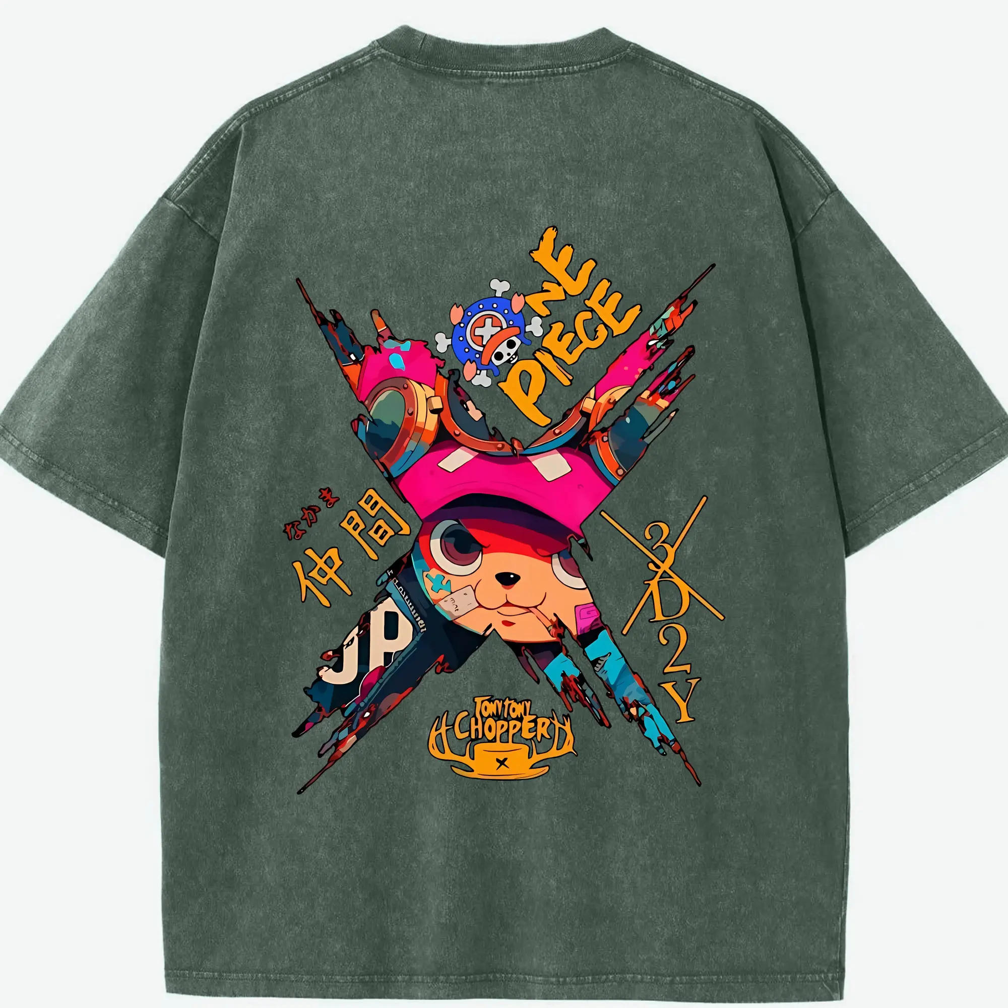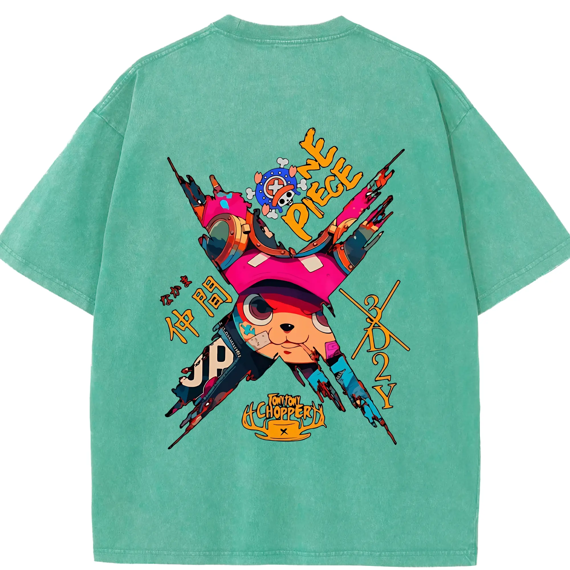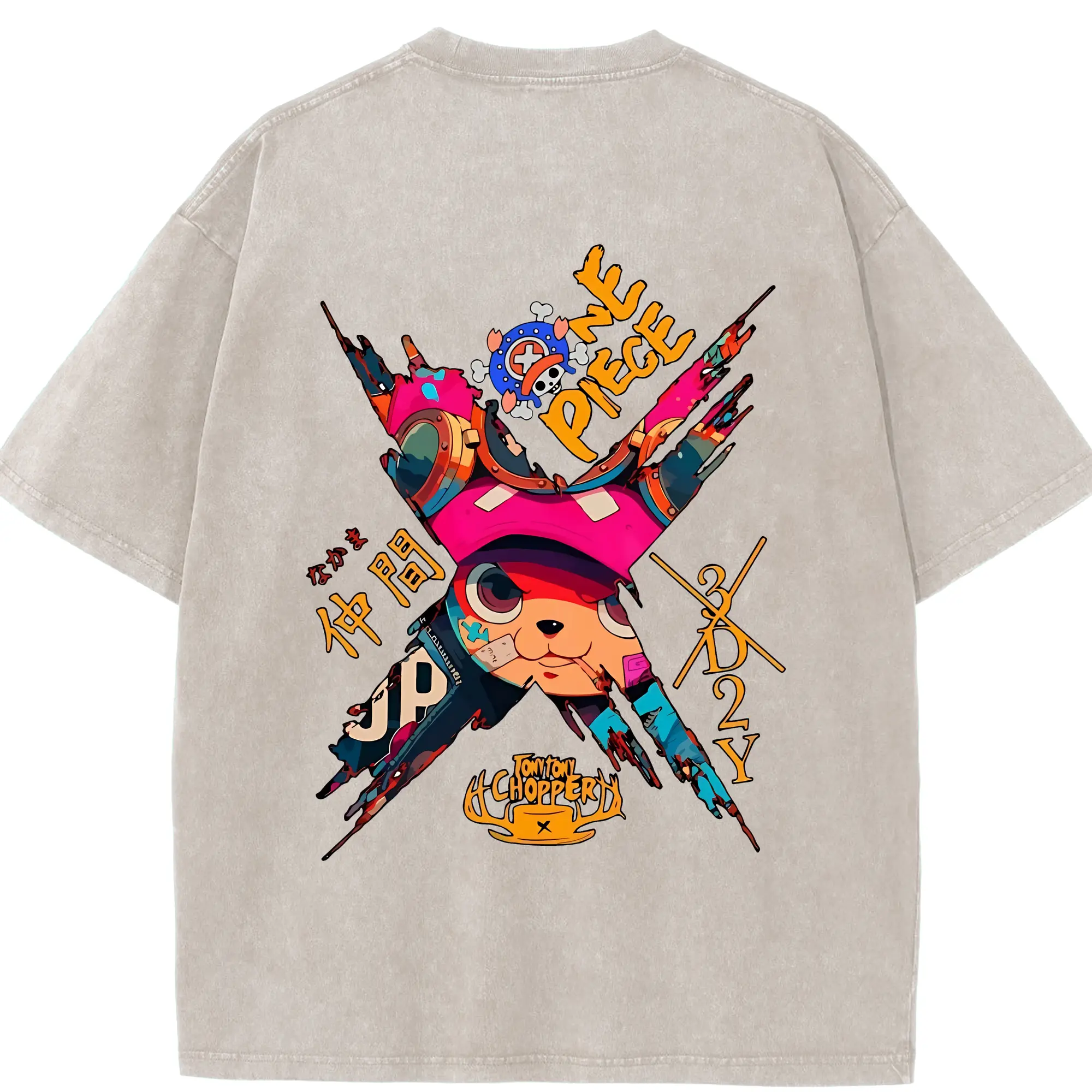 ワンピース グッズ トニートニー・チョッパー - 綿100% ヴィンテージ風 半袖Tシャツ ・ フロントプリント ・ 柔らか肌触り ・ 通気性 快適 ・ スポーツ カジュアル 外出用