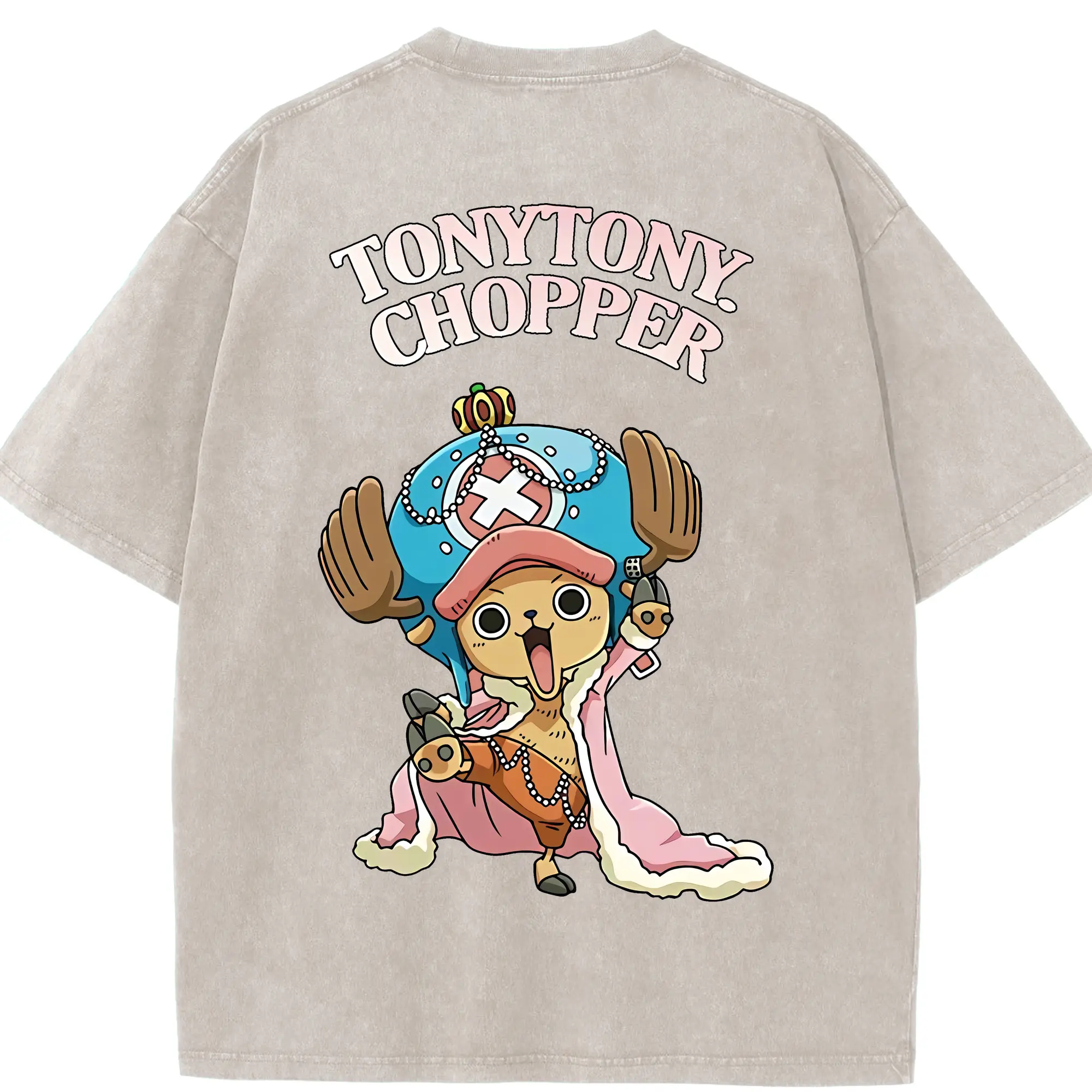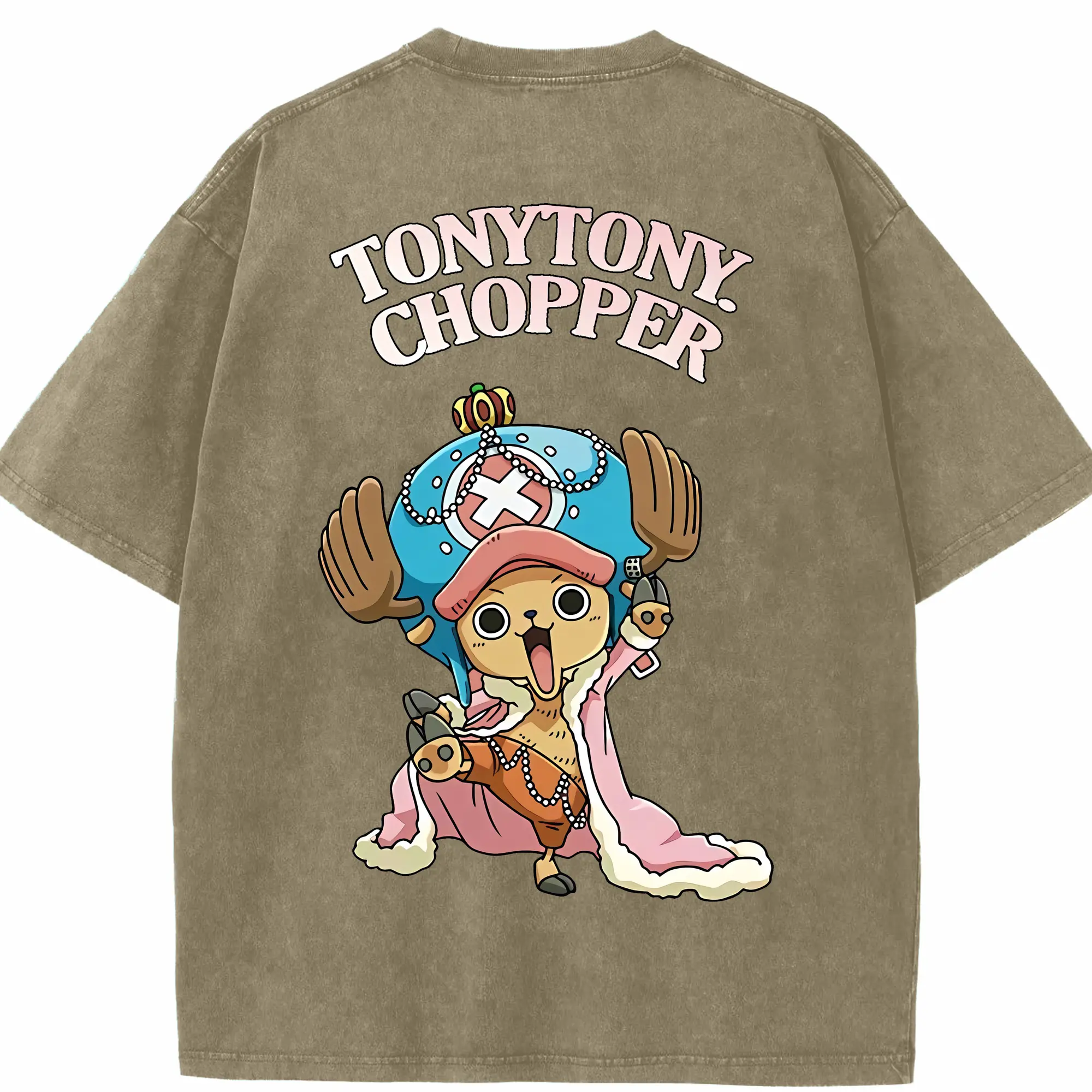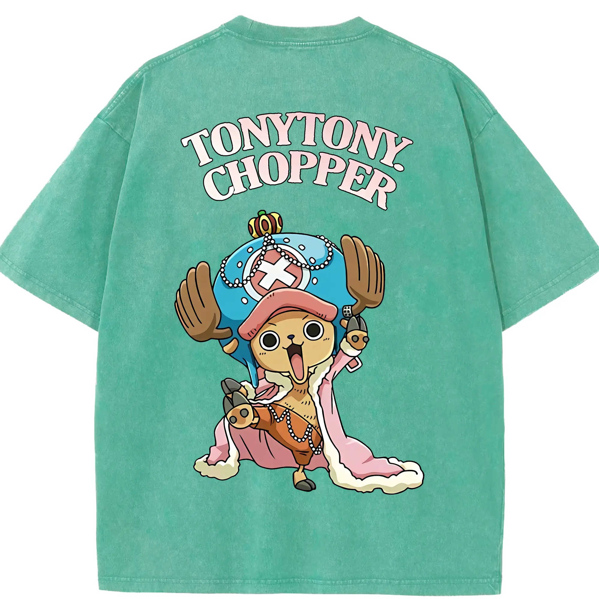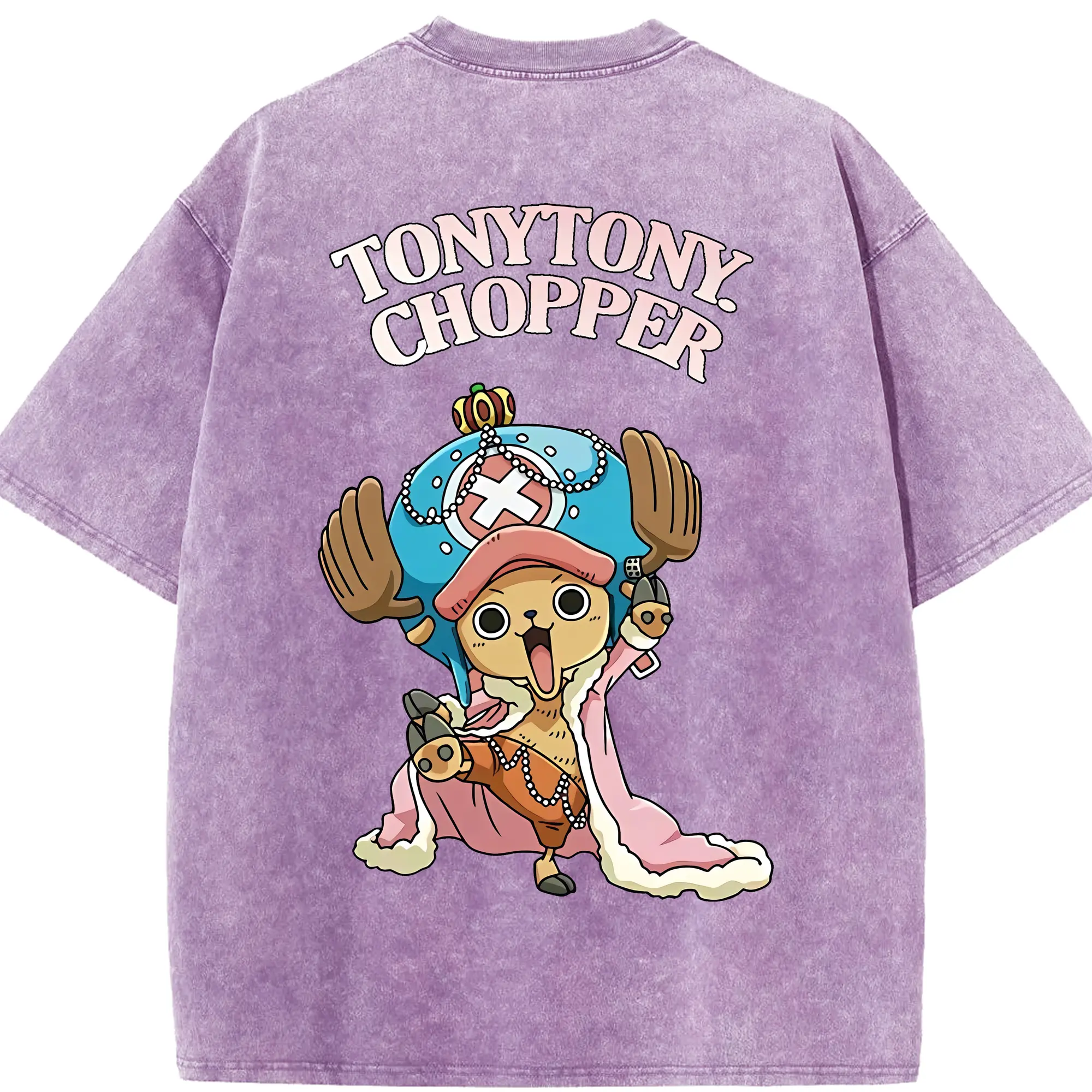 ワンピース グッズ トニートニー・チョッパー - 綿100% ヴィンテージ風 半袖Tシャツ ・ フロントプリント ・ 柔らか肌触り ・ 通気性 快適 ・ スポーツ カジュアル 外出用