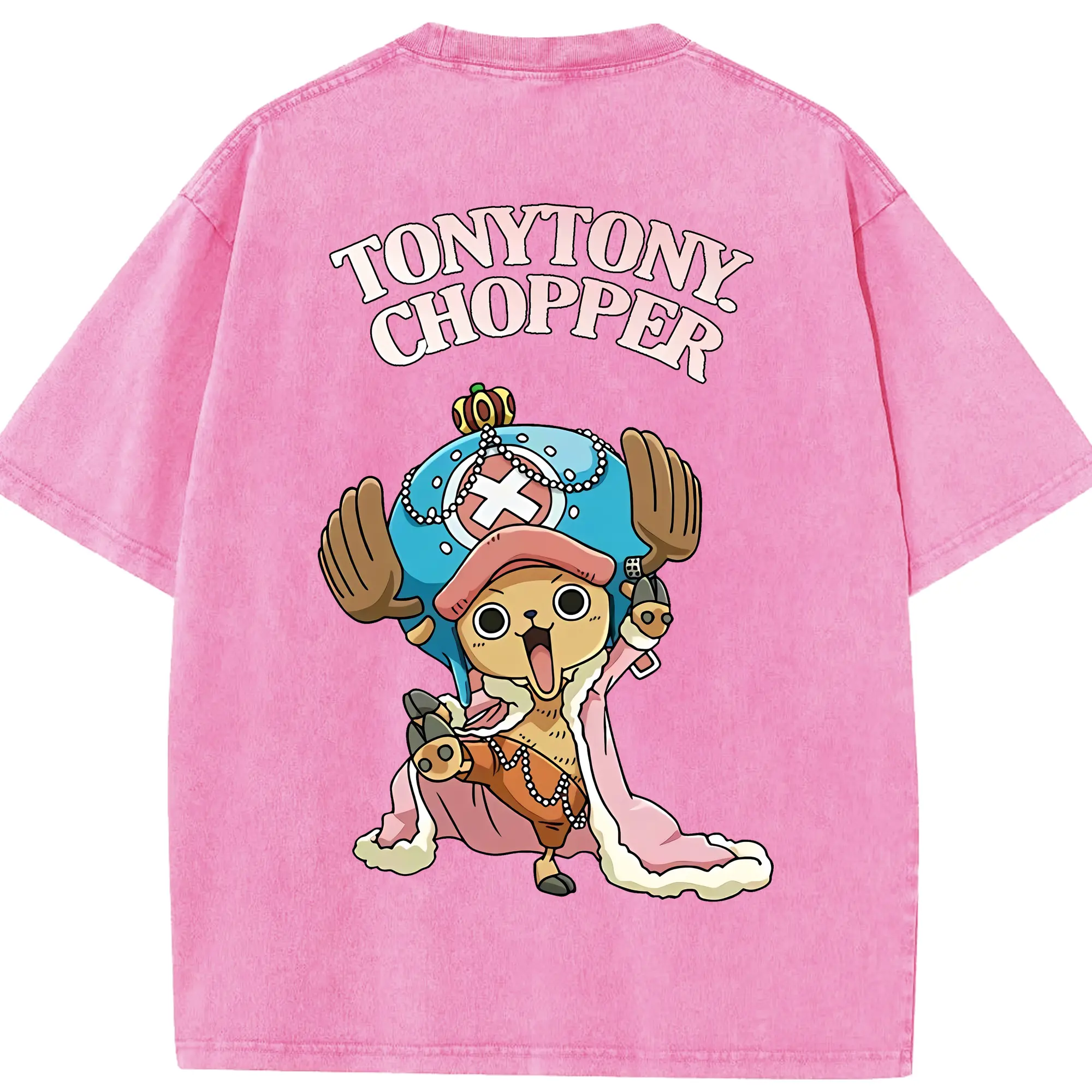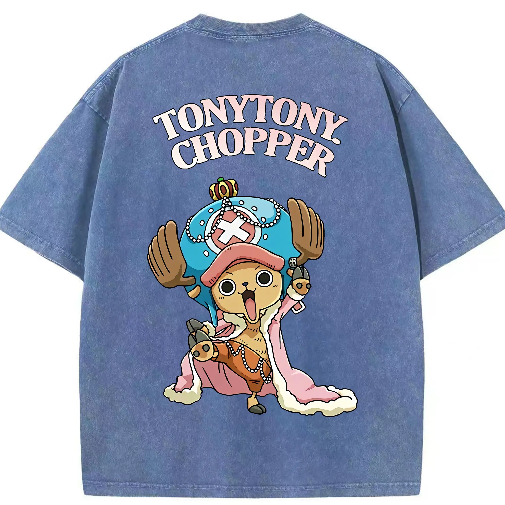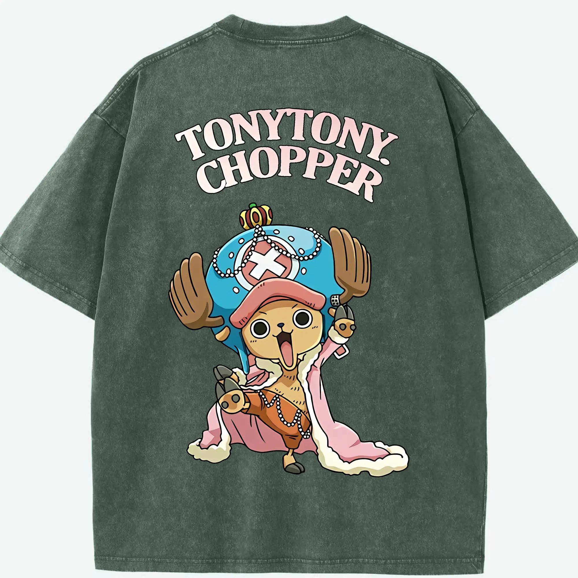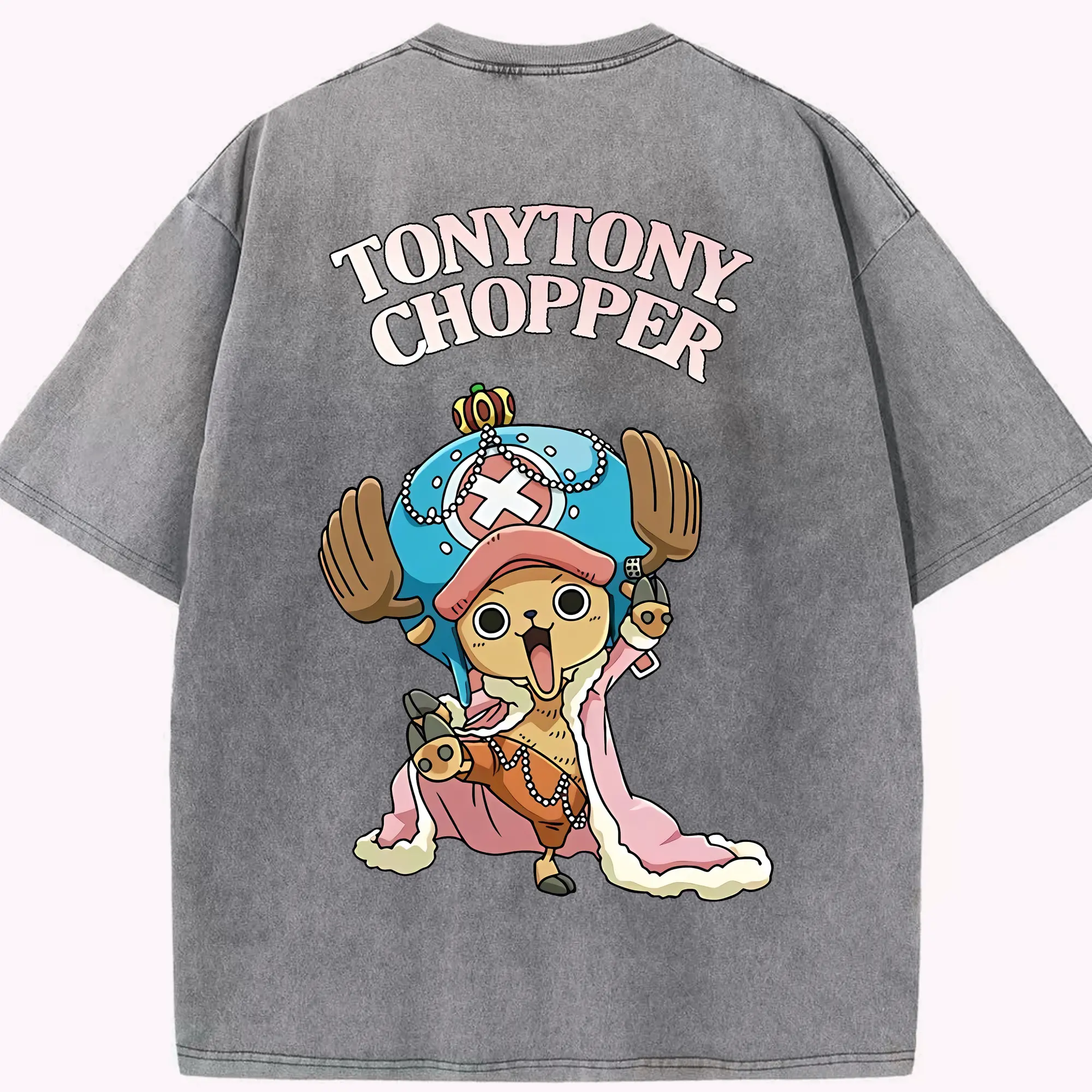 ワンピース グッズ トニートニー・チョッパー - 綿100% ヴィンテージ風 半袖Tシャツ ・ フロントプリント ・ 柔らか肌触り ・ 通気性 快適 ・ スポーツ カジュアル 外出用