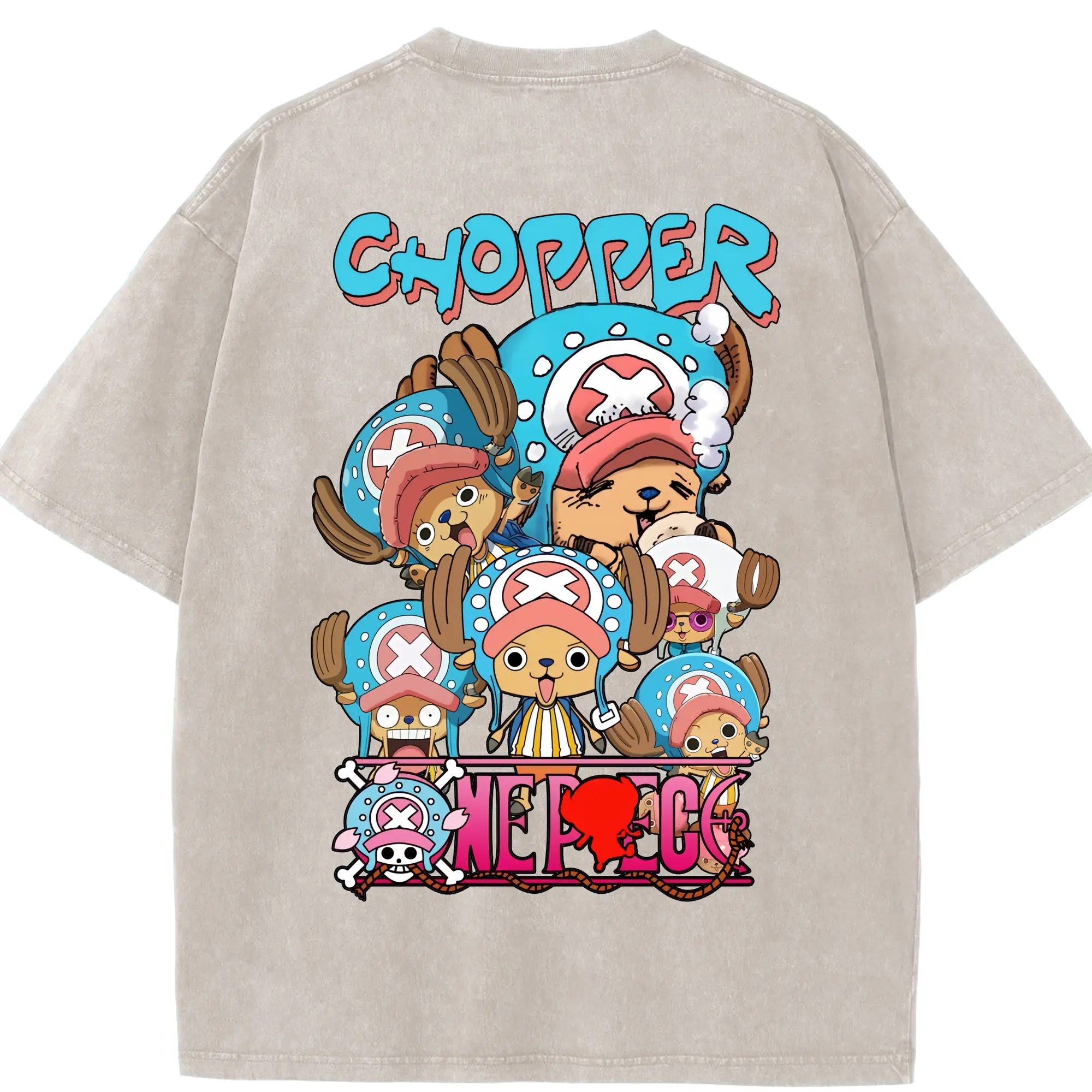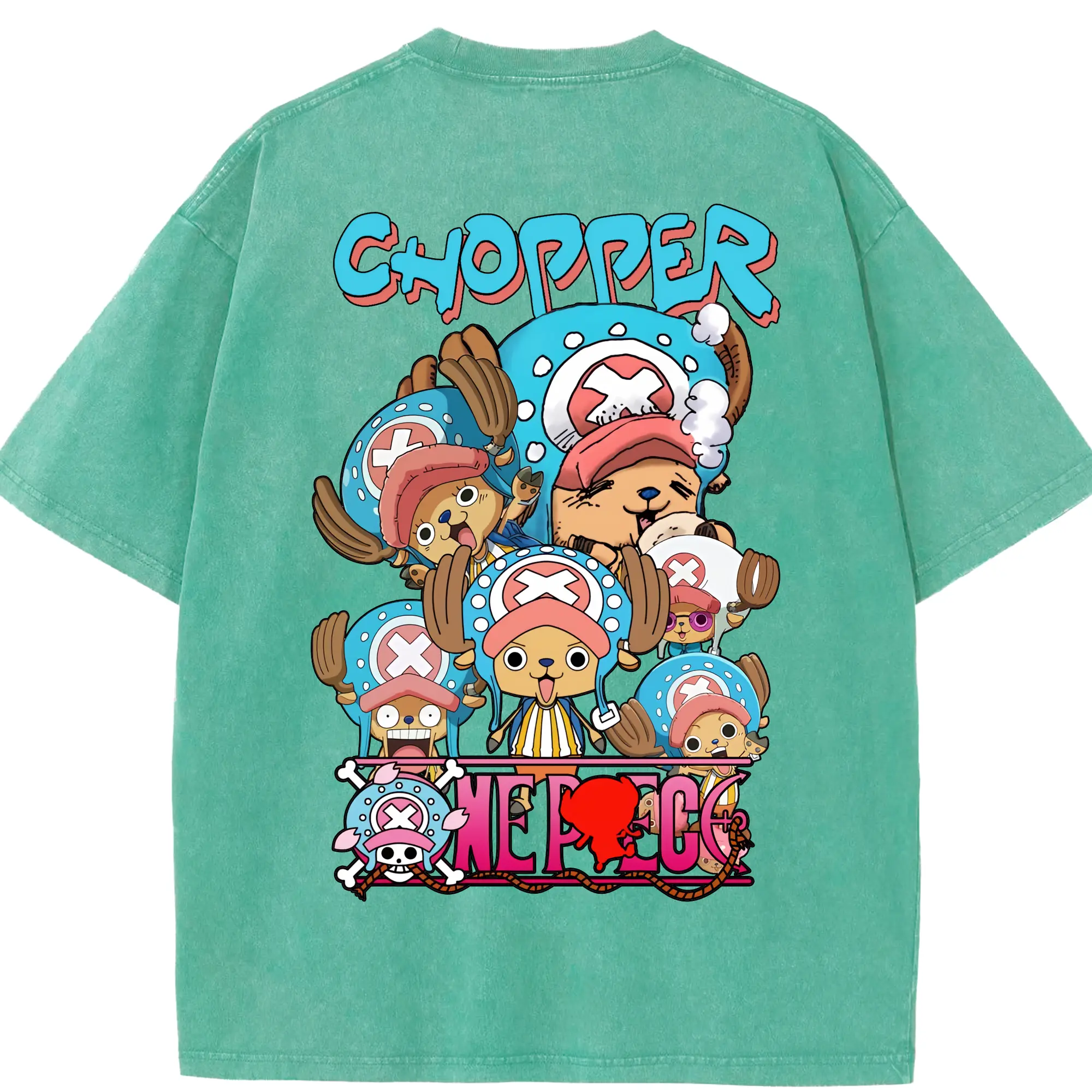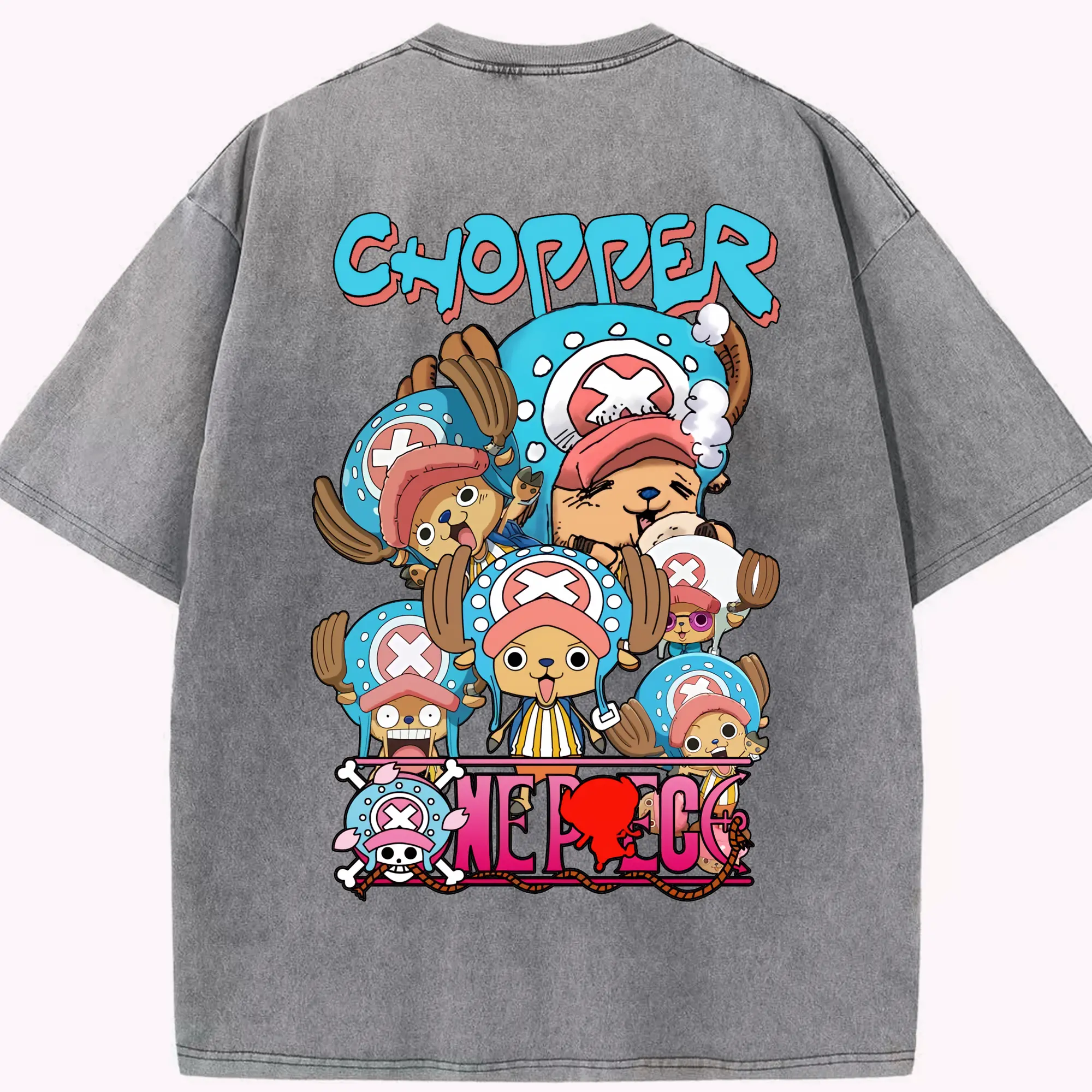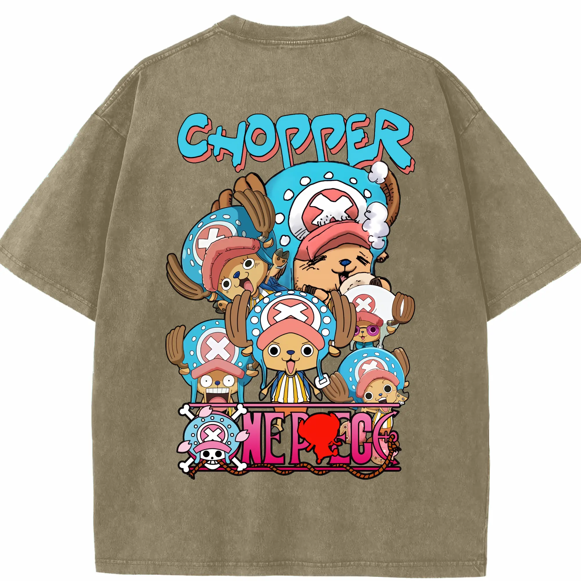 ワンピース グッズ トニートニー・チョッパー - 綿100% ヴィンテージ風 半袖Tシャツ ・ フロントプリント ・ 柔らか肌触り ・ 通気性 快適 ・ スポーツ カジュアル 外出用