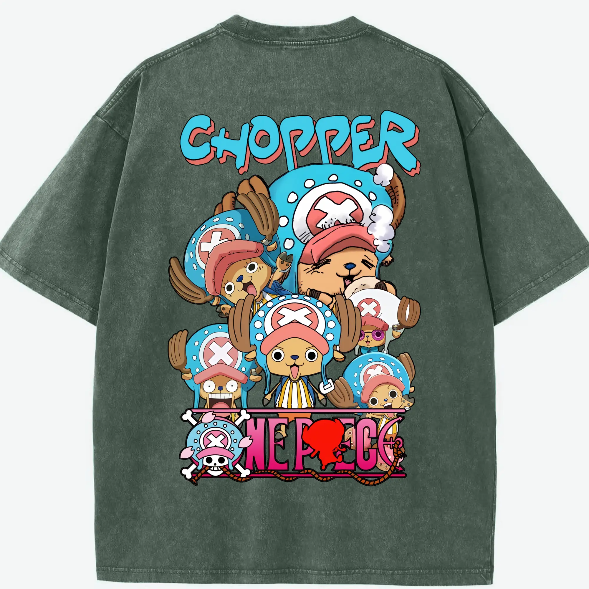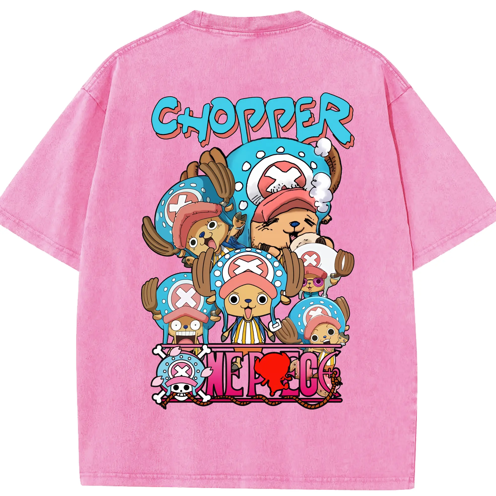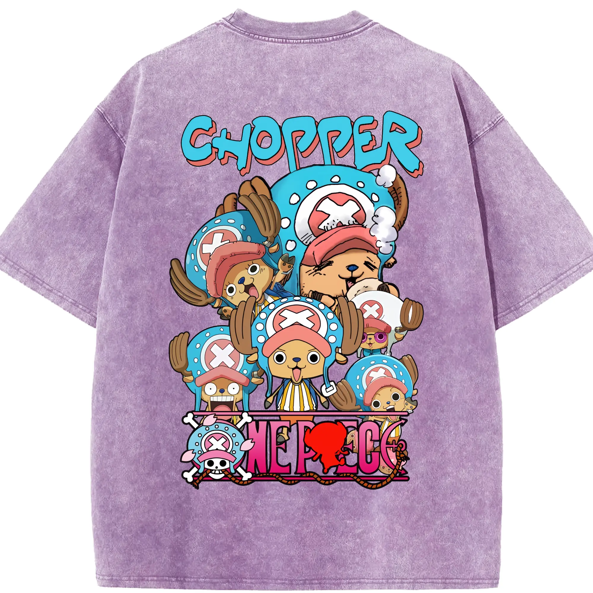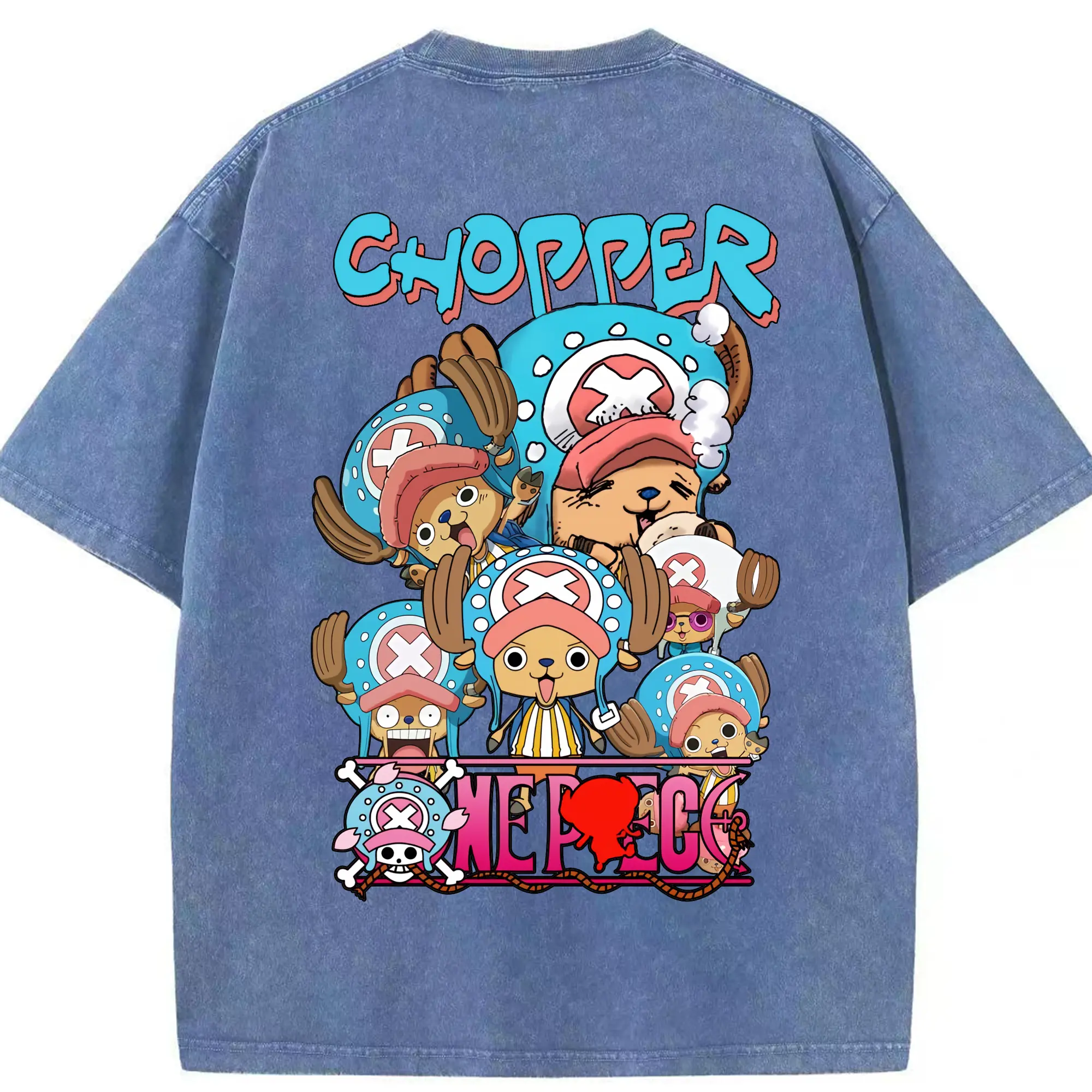 ワンピース グッズ トニートニー・チョッパー - 綿100% ヴィンテージ風 半袖Tシャツ ・ フロントプリント ・ 柔らか肌触り ・ 通気性 快適 ・ スポーツ カジュアル 外出用