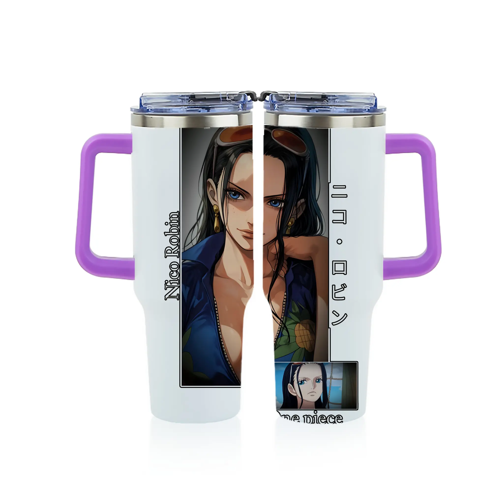 ワンピース グッズ ニコ・ロビン - 1200mL フルプリント車用タンブラー ・ 304ステンレス 内側 ・ 201ステンレス 外側 ・ 保温 保冷 ・ 通勤 ドライブ アウトドア用
