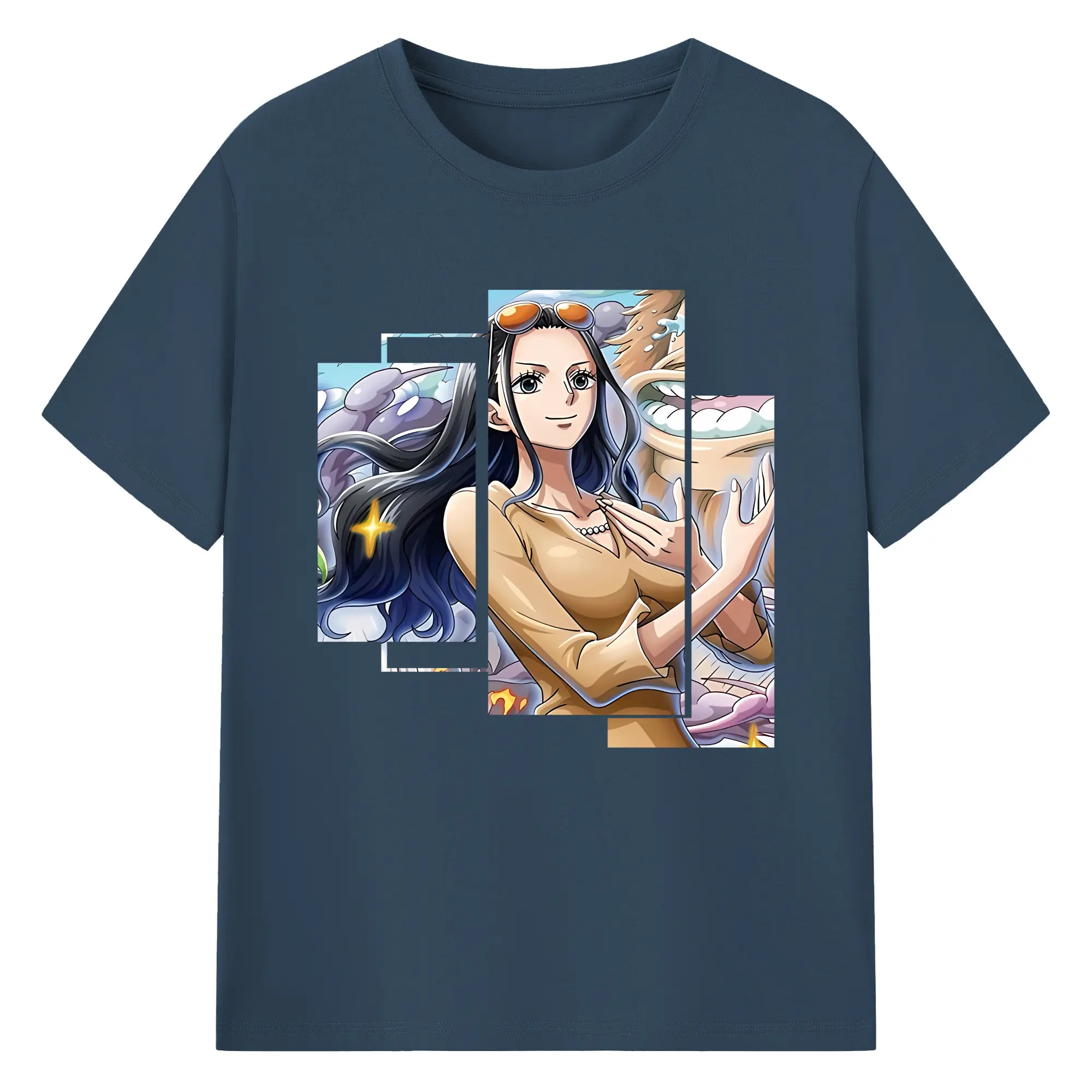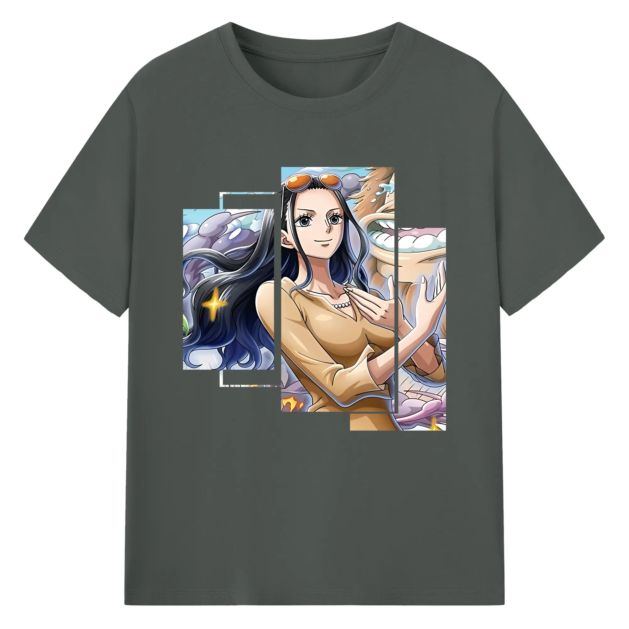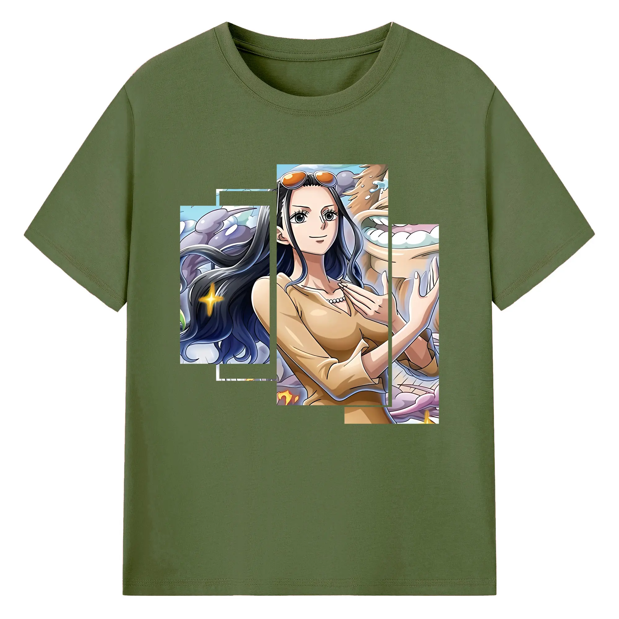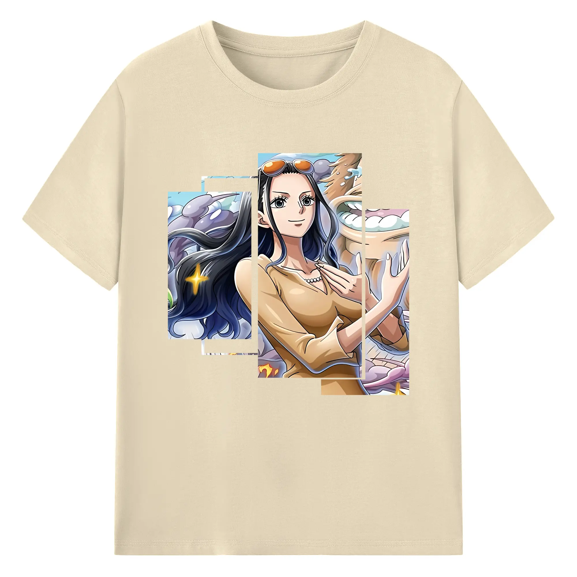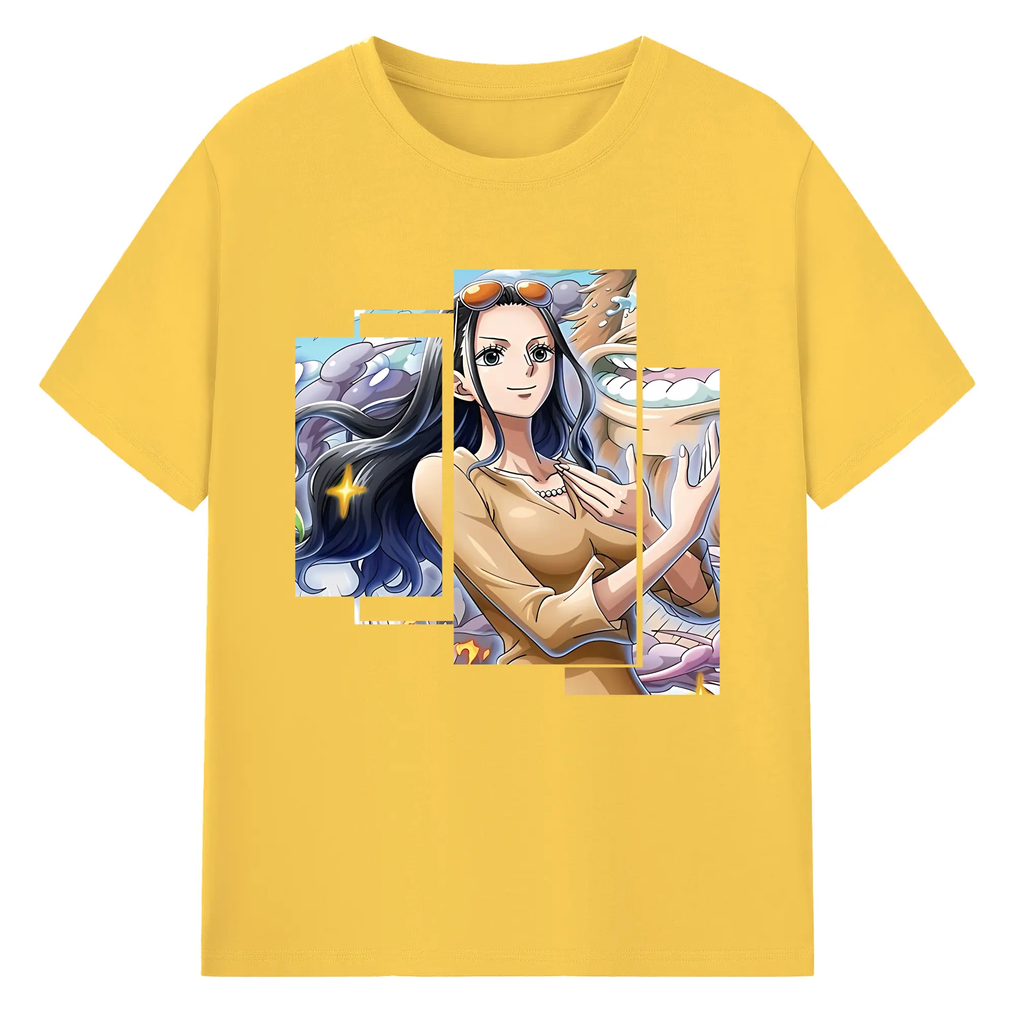 ワンピース グッズ ニコ・ロビン - 綿100% ヴィンテージ風 半袖Tシャツ ・ フロントプリント ・ 柔らか肌触り ・ 通気性 快適 ・ スポーツ カジュアル 外出用