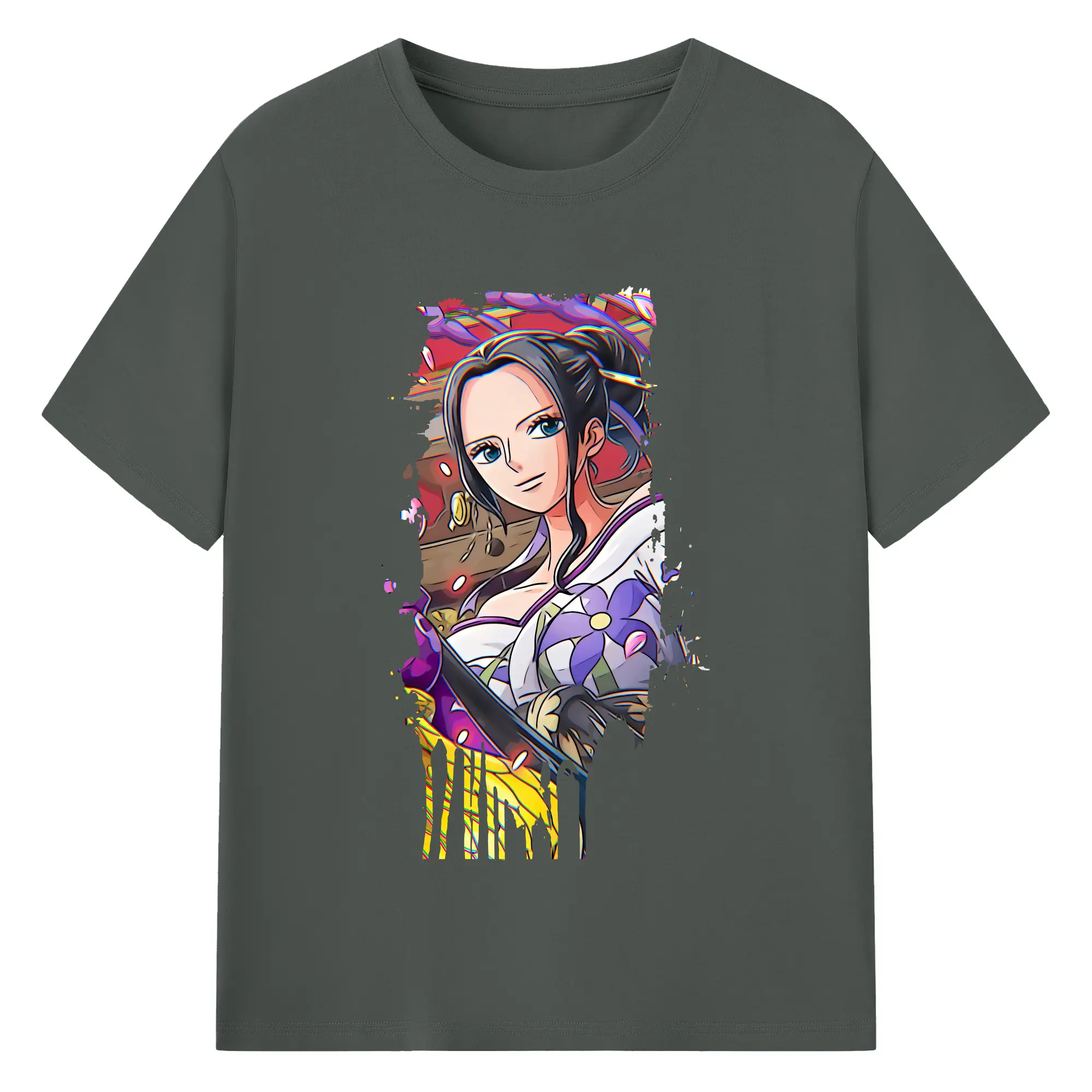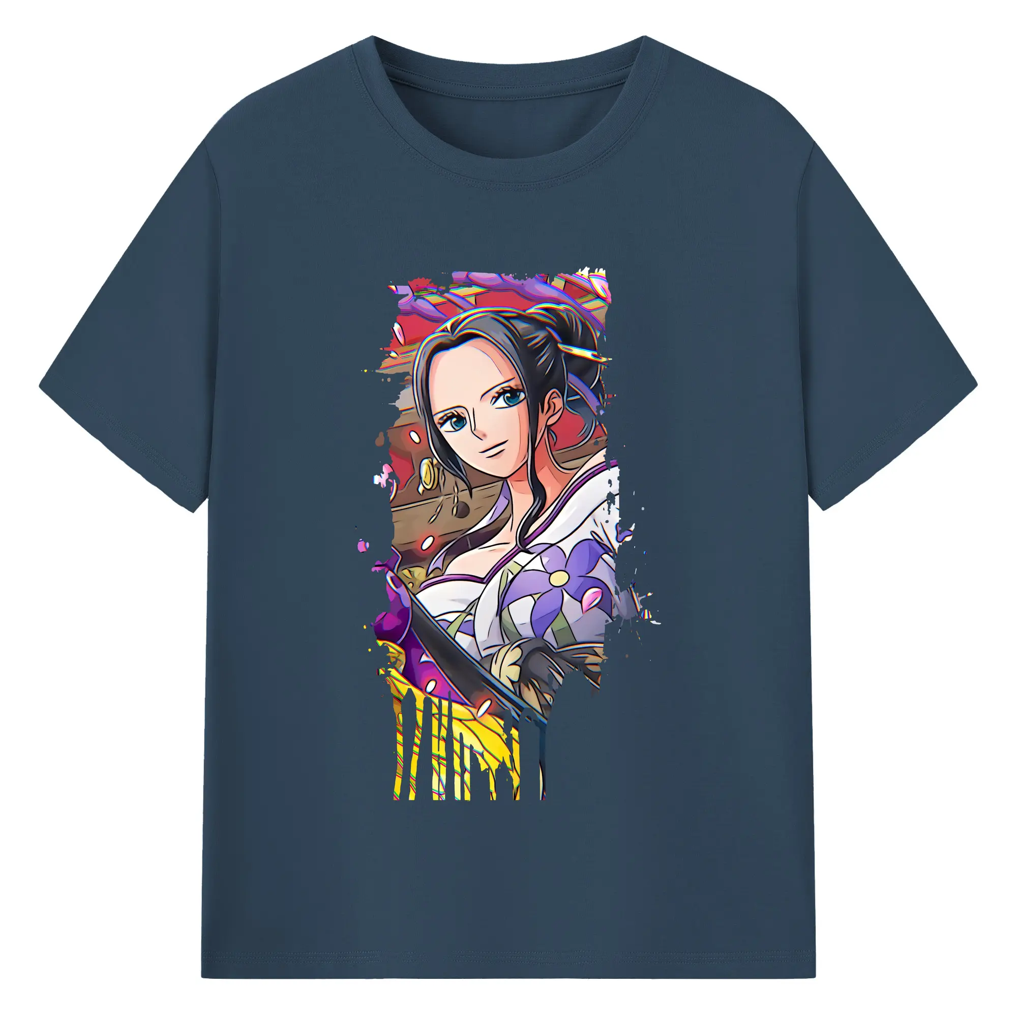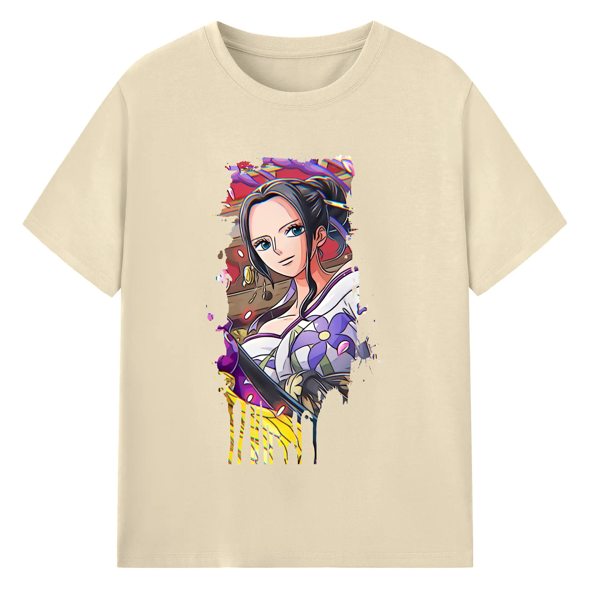 ワンピース グッズ ニコ・ロビン - 綿100% ヴィンテージ風 半袖Tシャツ ・ フロントプリント ・ 柔らか肌触り ・ 通気性 快適 ・ スポーツ カジュアル 外出用
