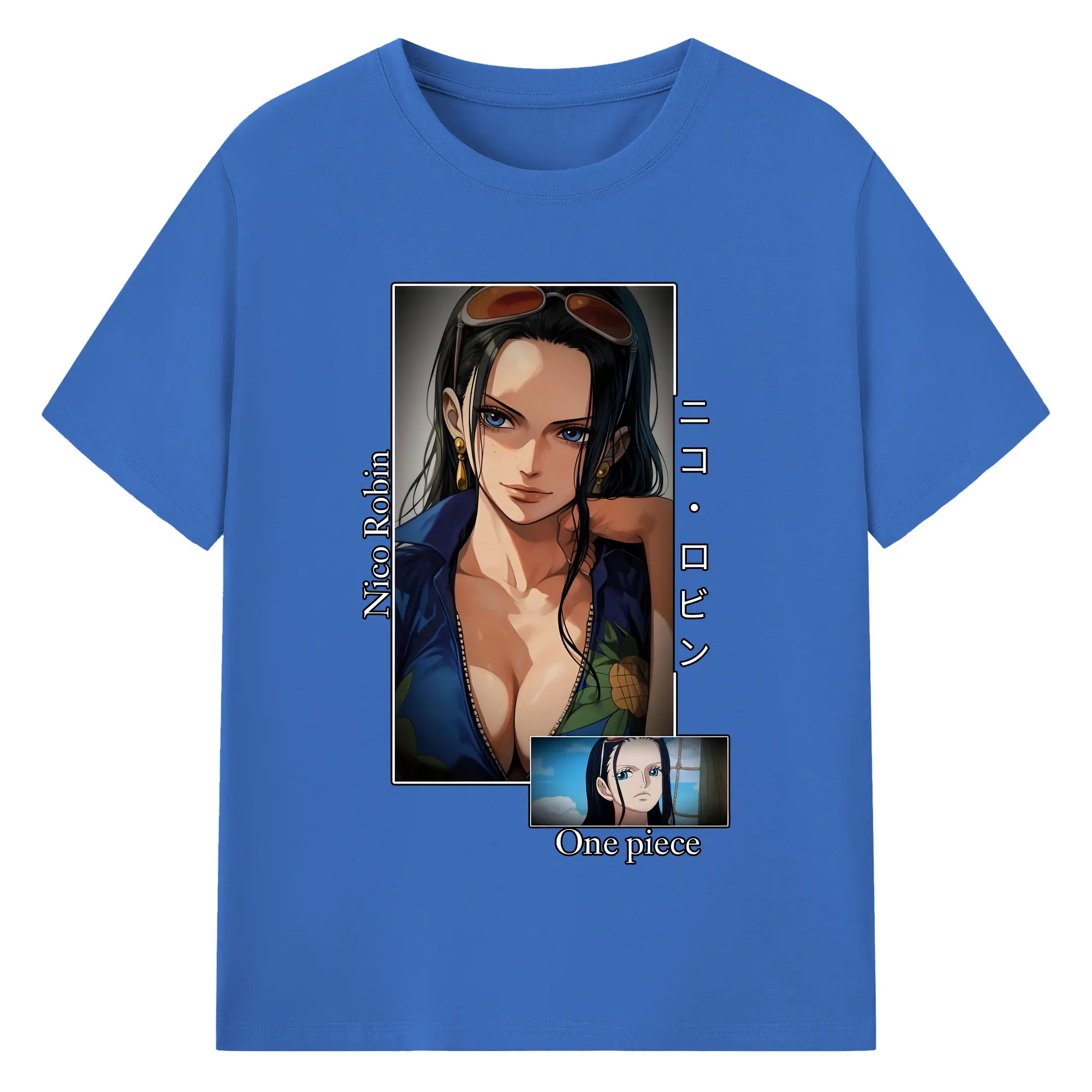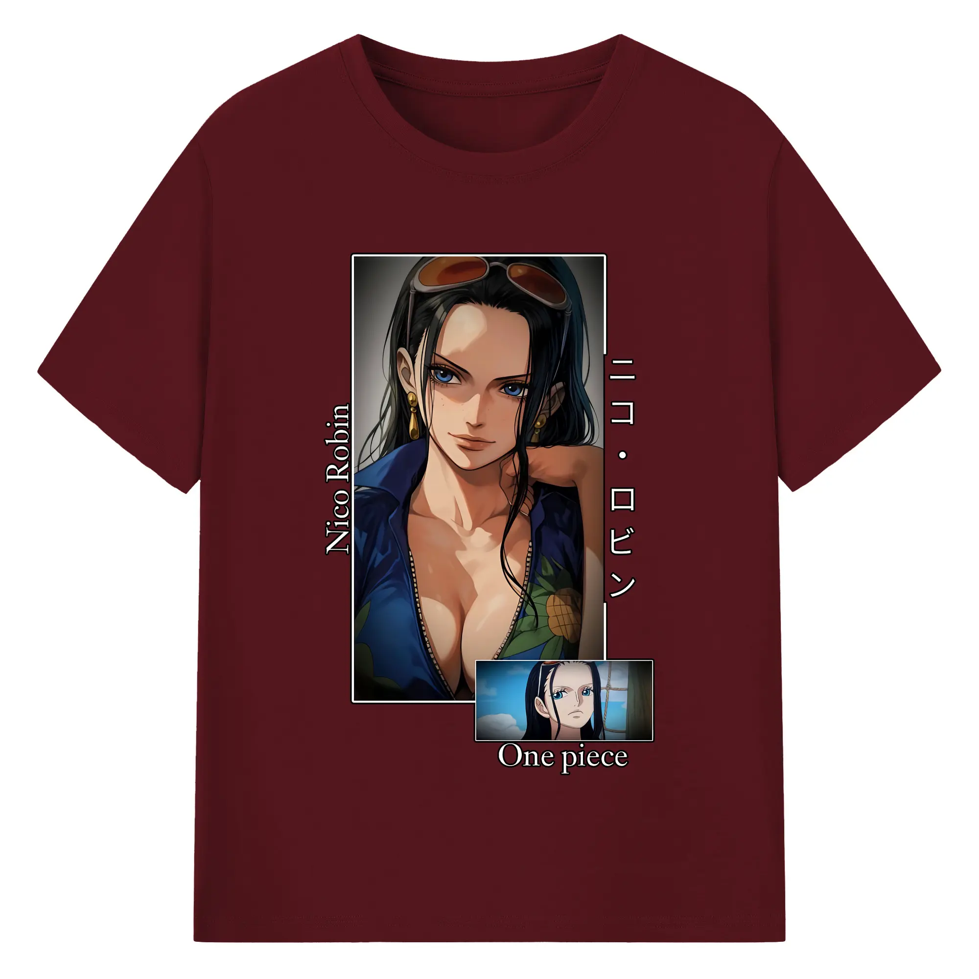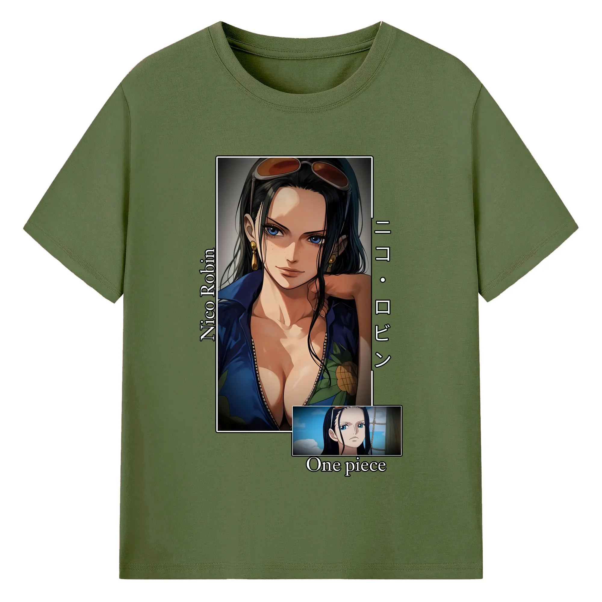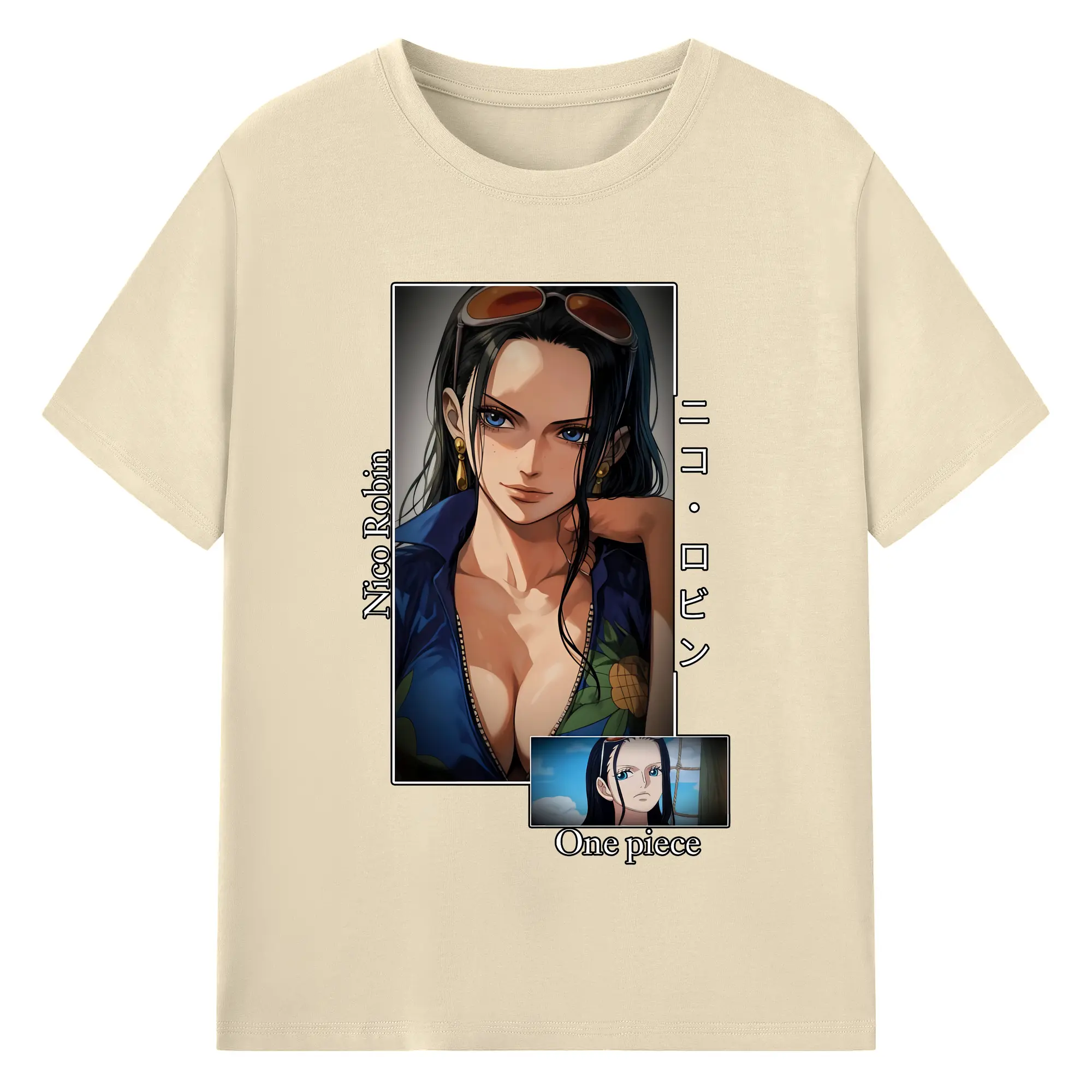 ワンピース グッズ ニコ・ロビン - 綿100% ヴィンテージ風 半袖Tシャツ ・ フロントプリント ・ 柔らか肌触り ・ 通気性 快適 ・ スポーツ カジュアル 外出用