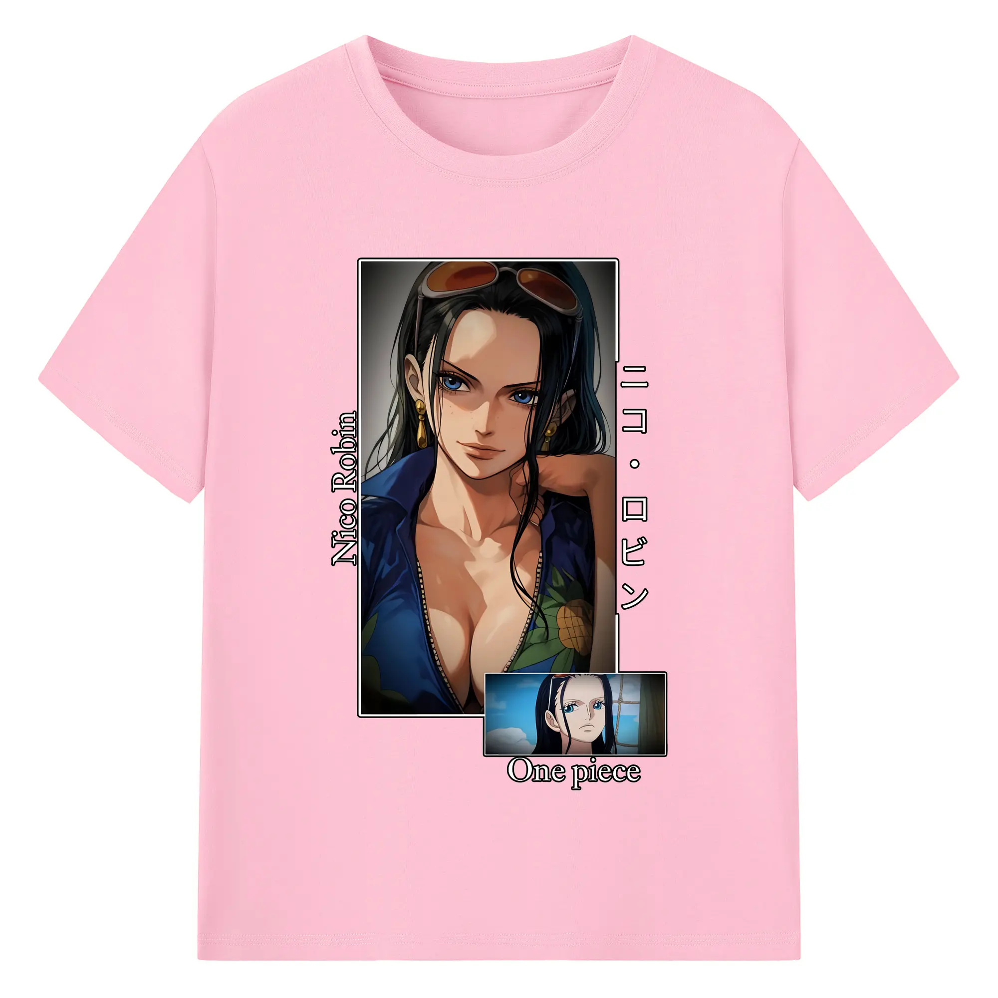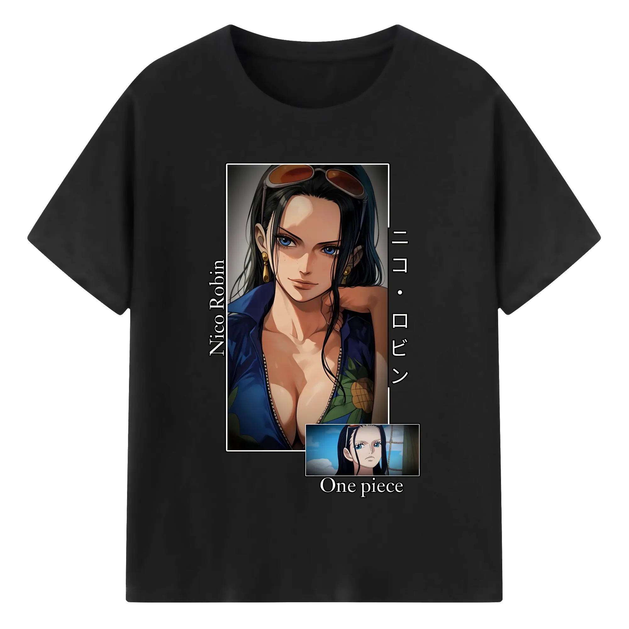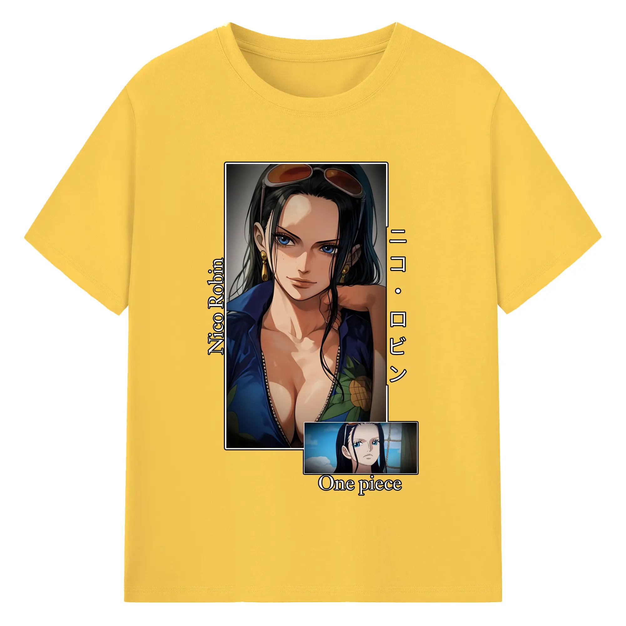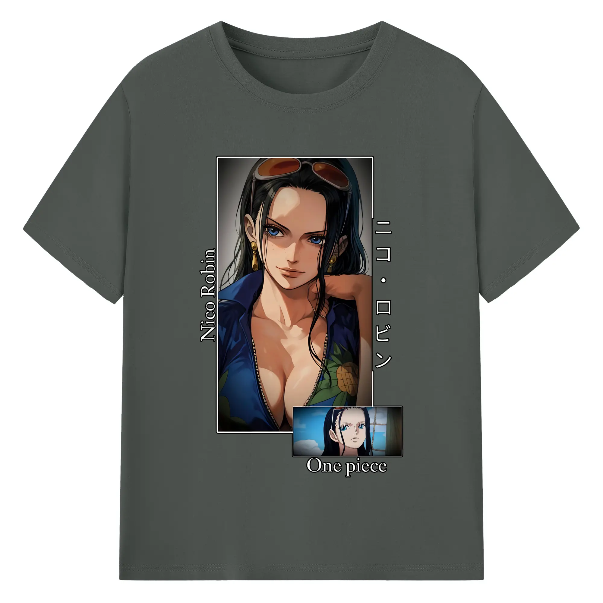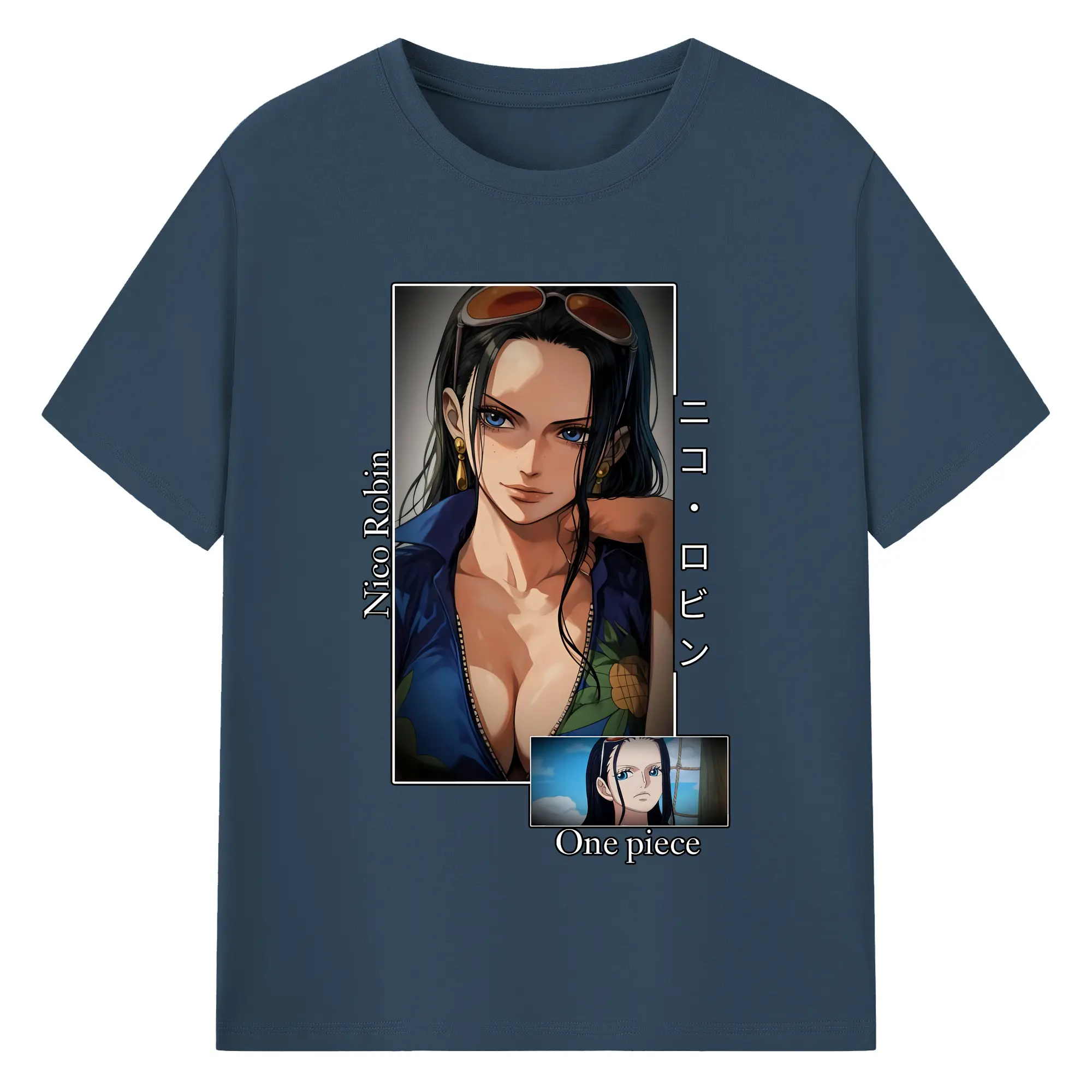 ワンピース グッズ ニコ・ロビン - 綿100% ヴィンテージ風 半袖Tシャツ ・ フロントプリント ・ 柔らか肌触り ・ 通気性 快適 ・ スポーツ カジュアル 外出用