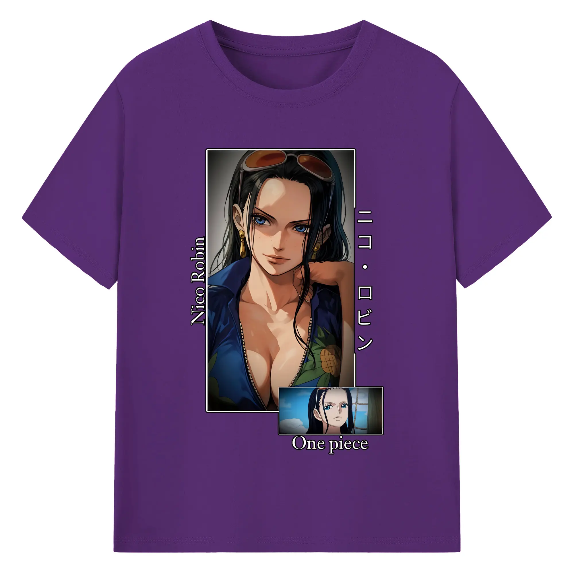 ワンピース グッズ ニコ・ロビン - 綿100% 半袖Tシャツ ・ バックプリント ・ 快適 通気性 ・ 日常使い 散歩 スポーツ用