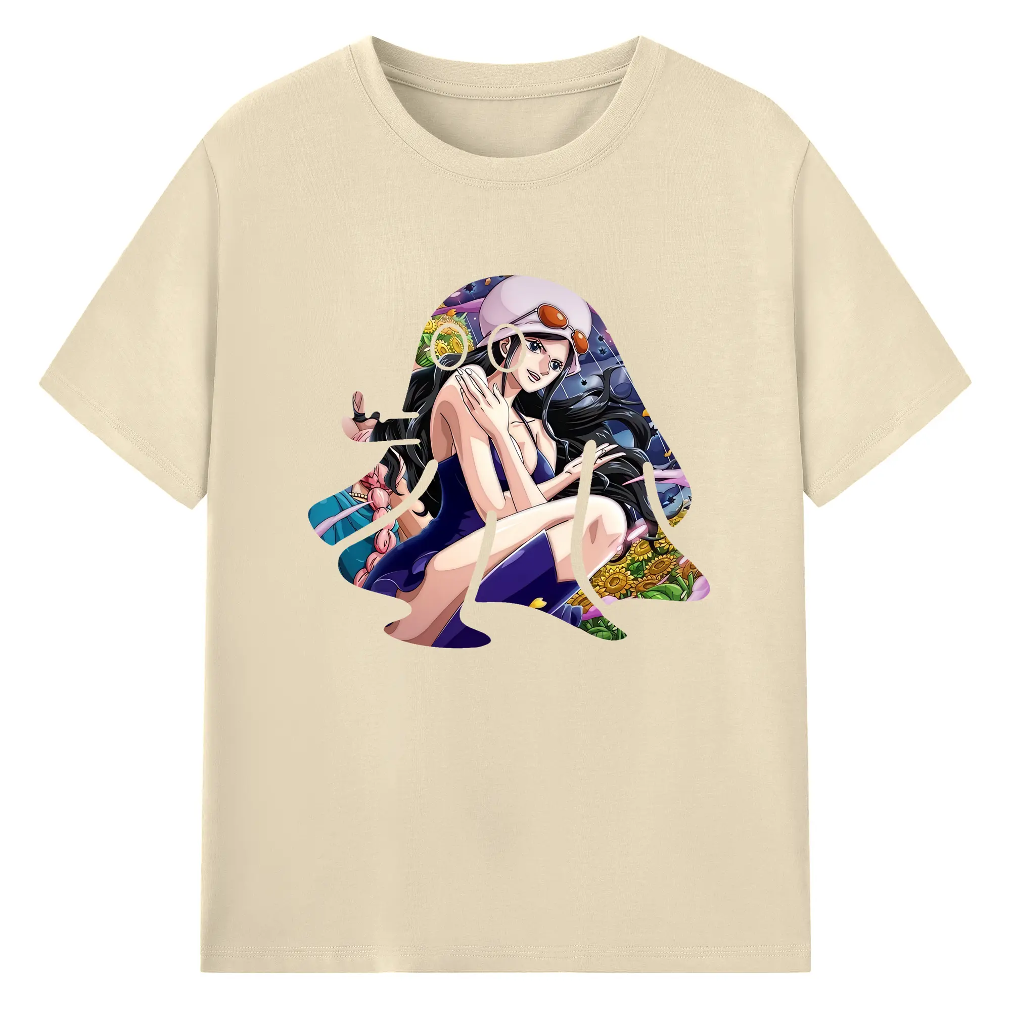 ワンピース グッズ ニコ・ロビン - 綿100% ヴィンテージ風 半袖Tシャツ ・ フロントプリント ・ 柔らか肌触り ・ 通気性 快適 ・ スポーツ カジュアル 外出用