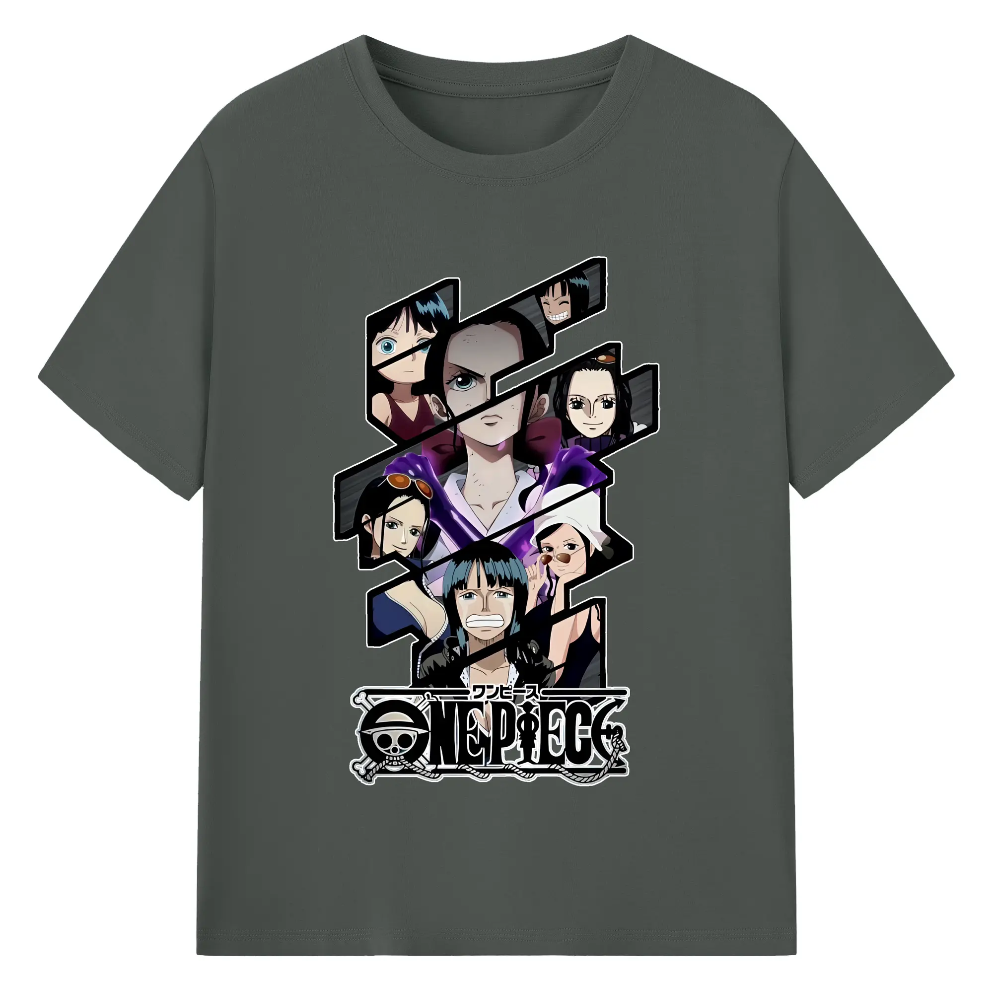ワンピース グッズ ニコ・ロビン - 綿100% ヴィンテージ風 半袖Tシャツ ・ フロントプリント ・ 柔らか肌触り ・ 通気性 快適 ・ スポーツ カジュアル 外出用